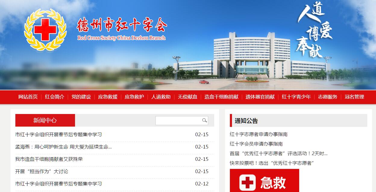 德州市位于山東省西北部。地處黃河(德水,古黃河別名)故道,運河之濱,是一座河流文明造就的古城。德州自古就有“九達天衢”、“神京門戶”之稱,是華東、華北重要的交通樞紐。京滬、德石、濟邯三條鐵路在這里交匯,5條國道、14條省道在境內(nèi)縱橫交錯。京福高速公路貫穿南北,濟聊、青銀高速公路穿境而過。德州市紅十字會是中國紅十字會的地方組織,是從事人道主義工作的社會救助團體。1911年10月山東省紅十字會成立后,1928年夏津縣紅十字分會慈善醫(yī)院成立;1929年1月(民國18年)德州紅十字會成立。原在城東南安莊嗣,因感鄉(xiāng)間不便,遂遷至城內(nèi)淮堤庵內(nèi)(小鍋市),至德州城解放(1946年);1948年2月,在臨邑縣城南鄧井子村成立“洛北紅十字醫(yī)院”;1957年經(jīng)山東省人民委員會批準(zhǔn),德州市紅十字會成立;1984年8月23日德州地區(qū)紅十字會成立。1995年,德州撤地建市,德州地區(qū)紅十字會更名為德州市紅十字會。近年來,在抗洪救災(zāi)、抗擊“非典”等方面共接收發(fā)放救災(zāi)救助物資折合人民幣500余萬元,使80余萬人受益。2008年支援汶川地震募捐工作中,全市紅十字會系統(tǒng)共接收社會各界捐款捐物1341.96萬元。被山東省紅十字會授予“支援四川抗震救災(zāi)突出貢獻獎”,被市委、市政府授予“德州市抗震救災(zāi)工作先進集體”、“德州市對口支援北川災(zāi)后恢復(fù)重建工作先進集體”。2013年、2014年分別開展支援四川雅安、云南魯?shù)榈卣馂?zāi)區(qū)抗震救災(zāi)工作,為災(zāi)區(qū)群眾募集款物合計52.84萬元。在全市紅十字會、衛(wèi)生系統(tǒng)開展的支持“新農(nóng)合”募捐救助活動中,共發(fā)放救助金700余萬元,受益人口6萬余人。積極開展無償獻血、遺體(器官)捐獻、造血干細胞捐獻工作。2000年底全市臨床用血實現(xiàn)了100%來自無償獻血。2014年3月實現(xiàn)我市器官捐獻零的突破,截至2017年7月,共實現(xiàn)器官捐獻3例,遺體捐獻16例,眼角膜捐獻25例。2004年,中國造血干細胞捐獻者資料庫山東省分庫德州市工作站啟動,截止2017年7月,共采集造血干細胞血樣11200余人份,成功實現(xiàn)造血干細胞捐獻28例。