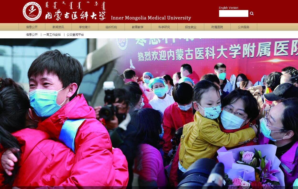內(nèi)蒙古醫(yī)科大學(xué)坐落于內(nèi)蒙古自治區(qū)首府呼和浩特市,是一所以醫(yī)學(xué)為主,集理學(xué)、管理學(xué)、工學(xué)、文學(xué)、法學(xué)于一體的多科性高等醫(yī)藥院校。學(xué)校成立于1956年,是新中國在少數(shù)民族地區(qū)最早建立的高等醫(yī)學(xué)院校之一,當(dāng)時隸屬于國家衛(wèi)生部,1958年劃歸內(nèi)蒙古自治區(qū)管理。前身為內(nèi)蒙古醫(yī)學(xué)院,2012年3月,經(jīng)教育部批準,更名為內(nèi)蒙古醫(yī)科大學(xué)。2017年9月,成為內(nèi)蒙古自治區(qū)人民政府、國家衛(wèi)生計生委、教育部共建高校。2018年5月,經(jīng)國務(wù)院學(xué)位委員會批準成為博士學(xué)位授予單位。經(jīng)過60多年的建設(shè)和發(fā)展,內(nèi)蒙古醫(yī)科大學(xué)為國家培養(yǎng)各級各類人才7萬余名,為自治區(qū)經(jīng)濟發(fā)展、社會進步、科技創(chuàng)新、文化傳承、民族團結(jié)、邊疆穩(wěn)定做出了重要貢獻,已成為一所具有鮮明辦學(xué)特色的地方高等醫(yī)藥院校。2007年,學(xué)校順利通過國家教育部本科教學(xué)工作水平評估,被評為“優(yōu)秀”等次。2017年,學(xué)校接受教育部本科教學(xué)工作審核評估。學(xué)?,F(xiàn)有金山校區(qū)、新華校區(qū)、錫林校區(qū)三個教學(xué)園區(qū),總占地面積1231808平方米,總建筑面積530466平方米。其中,教學(xué)行政用房面積247956平方米。教學(xué)科研儀器設(shè)備總值33941.41萬元,各類圖書文獻112.24萬冊(種)。學(xué)校設(shè)有基礎(chǔ)醫(yī)學(xué)院、藥學(xué)院、中醫(yī)學(xué)院、蒙醫(yī)藥學(xué)院、公共衛(wèi)生學(xué)院、口腔醫(yī)學(xué)院、衛(wèi)生管理學(xué)院(自治區(qū)衛(wèi)生政策研究所)、外國語學(xué)院、計算機信息學(xué)院、護理學(xué)院(衛(wèi)生技術(shù)學(xué)校)、馬克思主義學(xué)院、實踐教學(xué)部、體育教學(xué)部、研究生學(xué)院、繼續(xù)教育學(xué)院等15個教學(xué)單位,有3所直屬附屬醫(yī)院、4所非直屬附屬醫(yī)院,8所臨床醫(yī)學(xué)院。在區(qū)內(nèi)外設(shè)有實踐教學(xué)基地97個。其中,醫(yī)學(xué)類專業(yè)實踐教學(xué)基地66個、非醫(yī)學(xué)類專業(yè)實踐教學(xué)基地31個。學(xué)校自1956年開始招收本科生,1978年開始招收研究生,1981年獲得碩士學(xué)位授權(quán)資格,1999年獲得同等學(xué)力人員申請碩士學(xué)位的授權(quán)資格,2003年成為臨床醫(yī)學(xué)碩士專業(yè)學(xué)位培養(yǎng)單位,2009年成為口腔醫(yī)學(xué)碩士專業(yè)學(xué)位培養(yǎng)單位。2016年中藥學(xué)、口腔醫(yī)學(xué)通過國務(wù)院學(xué)位委員會授權(quán)點專項評估。從2005年起,先后與北京中醫(yī)藥大學(xué)、首都醫(yī)科大學(xué)、天津中醫(yī)藥大學(xué)聯(lián)合培養(yǎng)蒙醫(yī)學(xué)、中西醫(yī)結(jié)合、中醫(yī)內(nèi)科學(xué)、影像醫(yī)學(xué)與核醫(yī)學(xué)、外科學(xué)、細胞生物學(xué)、中藥學(xué)等7個學(xué)科的博士研究生。2009年,學(xué)校被內(nèi)蒙古自治區(qū)人民政府確定為自治區(qū)博士學(xué)位授權(quán)立項建設(shè)單位。建立了能夠同時培養(yǎng)本科生、碩士生、博士生層次齊全的民族醫(yī)學(xué)高等教育體系,形成了現(xiàn)代醫(yī)藥學(xué)、中醫(yī)藥學(xué)、蒙醫(yī)藥學(xué)高等教育“三位一體”的辦學(xué)特色。學(xué)?,F(xiàn)有6個一級學(xué)科、47個二級學(xué)科碩士學(xué)位授權(quán)點、6個專業(yè)學(xué)位類別、31個本科專業(yè)。其中,基礎(chǔ)醫(yī)學(xué)、臨床醫(yī)學(xué)、中醫(yī)學(xué)、藥學(xué)、中藥學(xué)、護理學(xué)6個碩士學(xué)位授權(quán)學(xué)科為一級學(xué)科。本科專業(yè)中,蒙醫(yī)學(xué)、中藥學(xué)和蒙藥學(xué)被教育部評為高等學(xué)校特色專業(yè);蒙醫(yī)學(xué)專業(yè)被教育部批準為“地方高校第一批本科專業(yè)綜合改革試點”項目。臨床醫(yī)學(xué)、中醫(yī)學(xué)、藥學(xué)、蒙醫(yī)學(xué)、中藥學(xué)、護理學(xué)、影像醫(yī)學(xué)與核醫(yī)學(xué)、口腔醫(yī)學(xué)、麻醉學(xué)、藥物制劑技術(shù)等13個專業(yè)為自治區(qū)品牌專業(yè);組織學(xué)和胚胎學(xué)、病理解剖學(xué)、藥用植物學(xué)和生藥學(xué)、藥理學(xué)、病理生理學(xué)、中醫(yī)診斷學(xué)、生物化學(xué)、兒科學(xué)、外科學(xué)、蒙醫(yī)診斷學(xué)、天然藥物化學(xué)、基礎(chǔ)護理學(xué)、診斷學(xué)、醫(yī)學(xué)遺傳學(xué)、蒙醫(yī)療術(shù)學(xué)、藥物分析、護理學(xué)基礎(chǔ)、中醫(yī)內(nèi)科學(xué)、藥物化學(xué)、影像醫(yī)學(xué)與核醫(yī)學(xué)、社區(qū)護理學(xué)、人體解剖學(xué)、口腔頜面外科學(xué)、蒙醫(yī)方劑學(xué)等40門課程為自治區(qū)精品課程。學(xué)校現(xiàn)有全日制在校生15100人。其中,本科生10856人、專科生2269人、研究生1794人、留學(xué)生111人,民族預(yù)科生70人,本科各專業(yè)面向國內(nèi)28個省、市、自治區(qū)招生。學(xué)校現(xiàn)有骨科、神經(jīng)外科和普通外科3個國家臨床重點建設(shè)??疲舍t(yī)脾胃病科1個國家中醫(yī)藥管理局重點建設(shè)???,蒙醫(yī)學(xué)、蒙藥學(xué)、傷寒學(xué)3個國家中醫(y