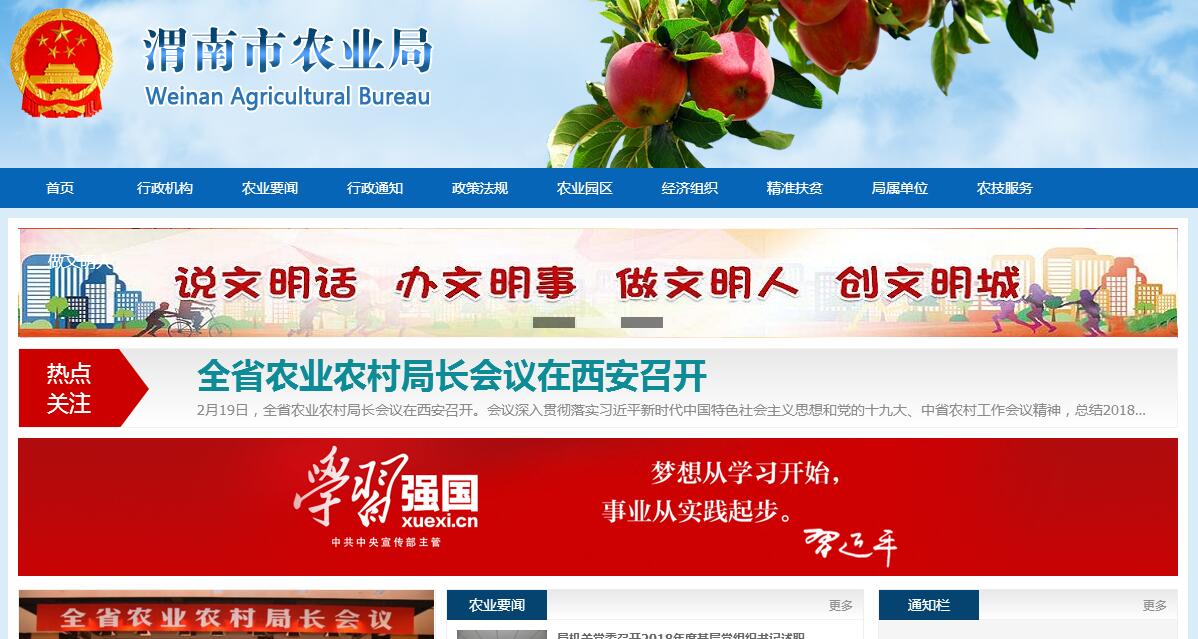 渭南市農(nóng)業(yè)局是主管全市農(nóng)業(yè)與農(nóng)村經(jīng)濟(jì)發(fā)展的市政府組成部門,局機(jī)關(guān)內(nèi)設(shè)辦公室、組織人事科、計劃財務(wù)科(項目辦公室)、市場信息科、監(jiān)察室、農(nóng)業(yè)產(chǎn)業(yè)化科、蔬菜產(chǎn)業(yè)化管理科、種植業(yè)管理科、科技教育科、農(nóng)產(chǎn)品質(zhì)量安全監(jiān)督管理辦公室10個科室。行政編制27名,其中,局長1名、副局長2名,總農(nóng)藝師1名(副縣級);內(nèi)設(shè)機(jī)構(gòu)科級領(lǐng)導(dǎo)職數(shù)11名(正科10名;副科1名)。設(shè)黨組書記1名(由本部門黨員行政主要負(fù)責(zé)人兼任),專職黨組副書記1名(副縣級),紀(jì)檢組長1名(副縣級),監(jiān)察室主任1名(正科級)。現(xiàn)有在職職工29人,離退休職工21人。直接管理的下屬單位8個,即:市果業(yè)管理局、市農(nóng)業(yè)技術(shù)推廣中心、市種子工作管理站、市農(nóng)業(yè)科學(xué)研究所、市農(nóng)村經(jīng)營管理站、陜西省農(nóng)業(yè)廣播電視學(xué)校渭南市分校、市農(nóng)產(chǎn)品質(zhì)量安全檢驗(yàn)檢測中心、市果業(yè)技術(shù)推廣中心。機(jī)關(guān)黨委直屬1個黨委(市農(nóng)科所黨委)、1個黨總支(市農(nóng)技中心黨總支)、5個黨支部(果業(yè)局、種子站、農(nóng)經(jīng)站、農(nóng)廣校、機(jī)關(guān)離退休黨支部)。全系統(tǒng)有在職職工344人,離退休人員173人(離休1人)。共有黨員261人,其中在職黨員180人,離退休黨員81人。