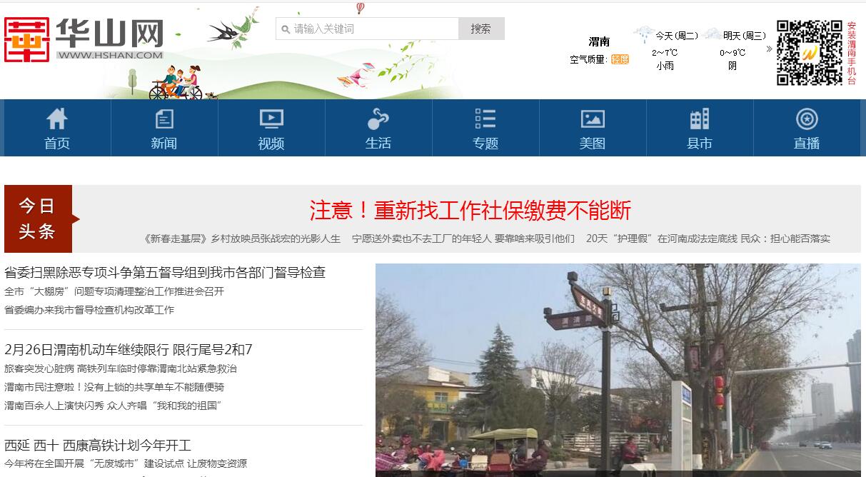 華山網上線于2006年5月1日,是經陜西省新聞辦公室批準,由渭南市委宣傳部主管,渭南電視臺主辦的陜西省重點新聞網站。是我市唯一擁有互聯(lián)網視聽節(jié)目制作、傳播資質和新聞發(fā)布資質的互聯(lián)網媒體。2008年,華山網被渭南市委宣傳部確立為渭南市官方新聞門戶網站,現由渭南電視臺下屬全資公司——渭南華山網絡傳媒有限公司運營。華山網以新聞、視頻業(yè)務為龍頭,多元整合本地媒體,成為渭南市對內和對外宣傳的重要窗口。網站開通以來,緊緊圍繞市委、市政府的中心工作,充分發(fā)揮網絡媒體的喉舌作用,親歷本地重大新聞事件,積極參與宣傳報道,以及時、全面、準確的報道成為本地網民首看、必看的網站。在做強新聞的同時,華山網積極關注民生,充分發(fā)揮網絡媒體的互動優(yōu)勢,搭建相關機構與網民以及網民之間的信息交流平臺,助力推進智慧城市的建設與發(fā)展。