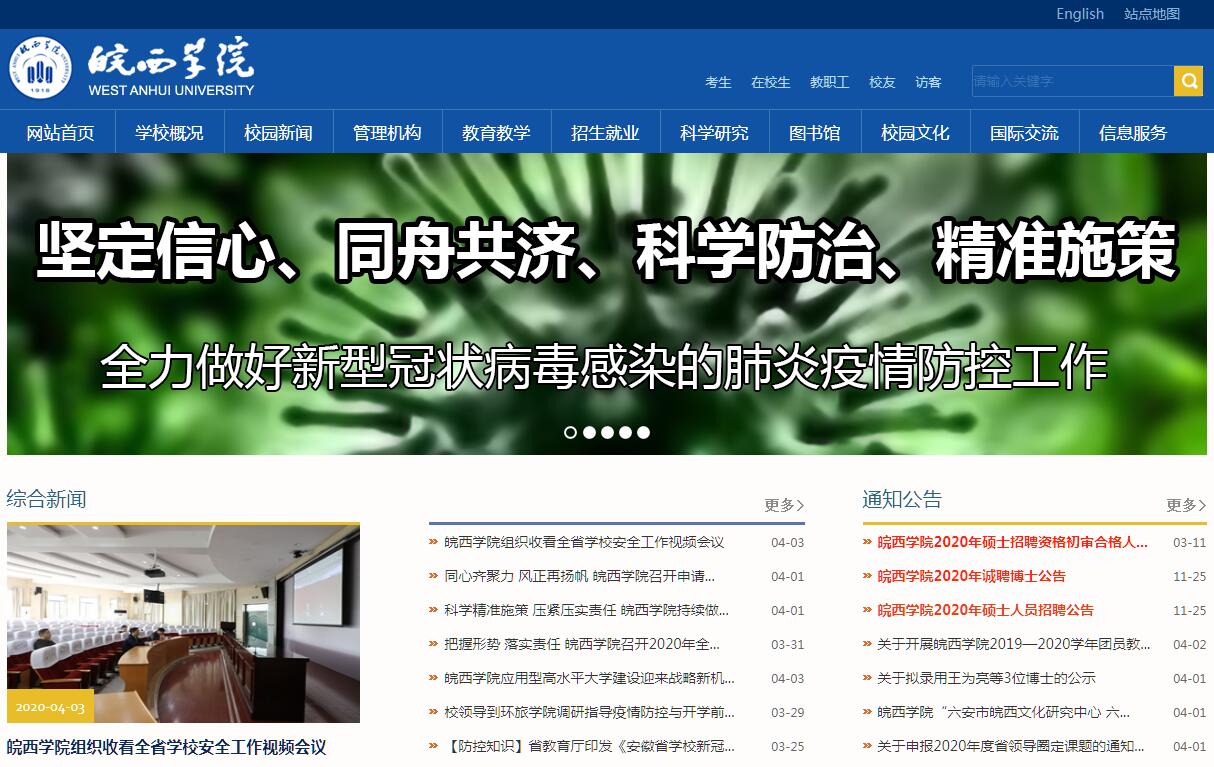 皖西學(xué)院坐落在榮膺有“國家級園林城市”、“國家級生態(tài)示范區(qū)”、“中國水環(huán)境治理優(yōu)秀城市”、“中國人居環(huán)境范例獎”、“中國特色魅力城市200強(qiáng)”等稱號的安徽省歷史文化名城-六安市。六安市是國家級交通樞紐城市,東距省會合肥僅60公里,距新橋國際機(jī)場30公里。多條高速鐵路和公路穿境而過,目前動車組(含高速動車)直達(dá)列車從六安到合肥需40分鐘,到南京、武漢需1個多小時,到長沙、濟(jì)南、上海、杭州需3個多小時,到北京需5個多小時、青島需6個小時,交通十分便捷。學(xué)校主校區(qū)位于四面環(huán)水、風(fēng)景秀麗的月亮島上,校園內(nèi)建筑設(shè)施、自然景觀、人文氣息相映成趣,構(gòu)成了全國高校中獨(dú)具特色的“湖中學(xué)府”、“島上高校”的濱水生態(tài)校園。學(xué)校現(xiàn)設(shè)有15個二級學(xué)院,64個本科專業(yè),校園占地1581畝,總建筑面積逾46萬平方米。圖書館總藏量170多萬冊,教學(xué)科研儀器設(shè)備總值2.64億元。學(xué)校現(xiàn)有全日制在校生20159人,教職工1217人,專任教師974人,其中專、兼職教授94人,副高職稱人員223人,碩、博士教師680人,省級高層次人才27人。皖西學(xué)院成立后,加快改革發(fā)展步伐,2009年被確定為省級碩士學(xué)位授權(quán)規(guī)劃立項建設(shè)單位和安徽省示范應(yīng)用型本科高校立項建設(shè)單位,進(jìn)入全省首批重點建設(shè)的高校行列;2011年榮獲“安徽省普通高等學(xué)校畢業(yè)生就業(yè)工作標(biāo)兵單位”稱號;2012年獲批為“安徽省普通高校大學(xué)生創(chuàng)新創(chuàng)業(yè)教育示范?!?;2013年4月首批通過教育部本科教學(xué)審核評估(試點);2014年7月獲批安徽省地方應(yīng)用型高水平大學(xué)立項建設(shè)單位,同年獲國家科技進(jìn)步二等獎、國家教學(xué)成果二等獎;2017年,中藥學(xué)學(xué)科被遴選為國內(nèi)一流學(xué)科,大別山特色中藥資源保育和開發(fā)科研團(tuán)隊被遴選為安徽省高校領(lǐng)軍人才團(tuán)隊,獲批設(shè)立“安徽省博士后科研工作站”;2015、2016、2017連續(xù)三年獲省委綜合考核優(yōu)秀等次。獲批為“安徽省第十一屆文明單位”。學(xué)校重視科學(xué)研究與實踐應(yīng)用,堅持以應(yīng)用型研究為科研方向,注重產(chǎn)學(xué)研合作,以科研促教學(xué),以科研強(qiáng)教學(xué)。2006年以來,在各類學(xué)術(shù)期刊上公開發(fā)表學(xué)術(shù)論文5500余篇,其中被SCI、EI等檢索系統(tǒng)收錄438篇,出版學(xué)術(shù)專著、編著84部,編寫教材118部。獲得廳級以上各類科研項目701項,其中國家級項目27項,省部級項目304項。學(xué)術(shù)成果獲國家科技進(jìn)步二等獎1項,省部級獎13項。通過省級成果鑒定30項。獲專利483項,其中國家發(fā)明專利33項?,F(xiàn)有科技創(chuàng)新平臺42個,其中植物細(xì)胞工程安徽省工程技術(shù)中心、仿生傳感與檢測技術(shù)省級實驗室、安徽省農(nóng)林廢棄物綜合利用工程技術(shù)研究中心、安徽省羽毛及其制品工程技術(shù)研究中心為省級科技創(chuàng)新平臺,安徽省石斛產(chǎn)業(yè)化開發(fā)協(xié)同創(chuàng)新中心為省級2011協(xié)同創(chuàng)新中心,廉政文化研究中心為省級高校人文社科重點研究基地?!锻钗鲗W(xué)院學(xué)報》被評為全國高校優(yōu)秀社科期刊、中國高校優(yōu)秀科技期刊。學(xué)校積極開展對外交流,先后與美國、英國、法國、芬蘭、烏克蘭、新加坡、韓國、香港等國家和地區(qū)的高等院校、科研院所建立協(xié)作和文化交流關(guān)系。學(xué)校秉承“厚德尚能 博學(xué)創(chuàng)新”的校訓(xùn),以轉(zhuǎn)變教育思想觀念為先導(dǎo),以學(xué)科專業(yè)建設(shè)為龍頭,以教學(xué)為中心,努力培養(yǎng)面向基層,服務(wù)一線,德智體美全面發(fā)展,地方用得上、留得住,具有創(chuàng)新精神和實踐能力的應(yīng)用性高級專門人才。學(xué)校堅持以育人為本,注重加強(qiáng)學(xué)生思想政治教育,尤其重視利用本地區(qū)紅色文化對學(xué)生進(jìn)行革命傳統(tǒng)教育。篳路藍(lán)縷弦歌不輟,風(fēng)雨傳薪惠播八方。朝氣蓬勃的皖西學(xué)院人將沿著學(xué)校第三次黨代會和“十三五”規(guī)劃繪就的藍(lán)圖銳意進(jìn)取,開拓創(chuàng)新,為把學(xué)校建設(shè)成為應(yīng)用型人才培養(yǎng)質(zhì)量高、辦學(xué)特色鮮明、服務(wù)地方發(fā)展能力突出,省內(nèi)同類院校一流、部分學(xué)科專業(yè)在全國有一定影響的新型地方應(yīng)用型高水平大學(xué)而努力奮斗!