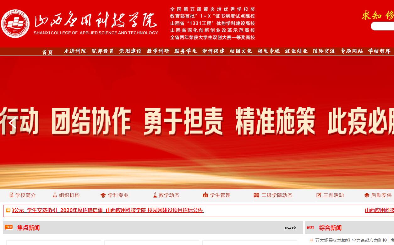 山西應(yīng)用科技學(xué)院創(chuàng)建于1991年,2014年經(jīng)國家教育部批準(zhǔn)成為涵蓋管理學(xué)、經(jīng)濟(jì)學(xué)、工學(xué)、藝術(shù)學(xué)、文學(xué)、教育學(xué)等多學(xué)科應(yīng)用型、國際化、綜合性全日制普通本科高校。學(xué)校是山西省應(yīng)用型本科高校聯(lián)盟理事長單位,引領(lǐng)地方本科高校負(fù)重前行。學(xué)校先后榮獲全國第五屆黃炎培優(yōu)秀高校、山西省“1331工程”優(yōu)勢學(xué)科建設(shè)高校、山西省應(yīng)用型本科試點高校、山西省深化創(chuàng)新創(chuàng)業(yè)教育改革示范高校稱號,綜合實力居地方本科高校前列。學(xué)校地處山西轉(zhuǎn)型綜改示范園區(qū),南接太原瀟河現(xiàn)代產(chǎn)業(yè)園,北鄰太原教育園區(qū),周圍高校林立,高新企業(yè)環(huán)抱,交通發(fā)達(dá),是未來地鐵、磁懸浮交通樞紐的腹地,從市區(qū)來校十分便利,未來發(fā)展前景美好。學(xué)校開設(shè)22個本科專業(yè),21個專科專業(yè),在這里你會與13000余名同學(xué)、600余名老師一起共度人生美好時光。學(xué)校奉行“以質(zhì)量求生存,以特色求發(fā)展”的辦學(xué)理念,以“追求應(yīng)用型與學(xué)術(shù)性融合,致力于專業(yè)與產(chǎn)業(yè)鏈對接”為核心理念,已先后為社會輸送了六萬余名各類合格的應(yīng)用型人才。