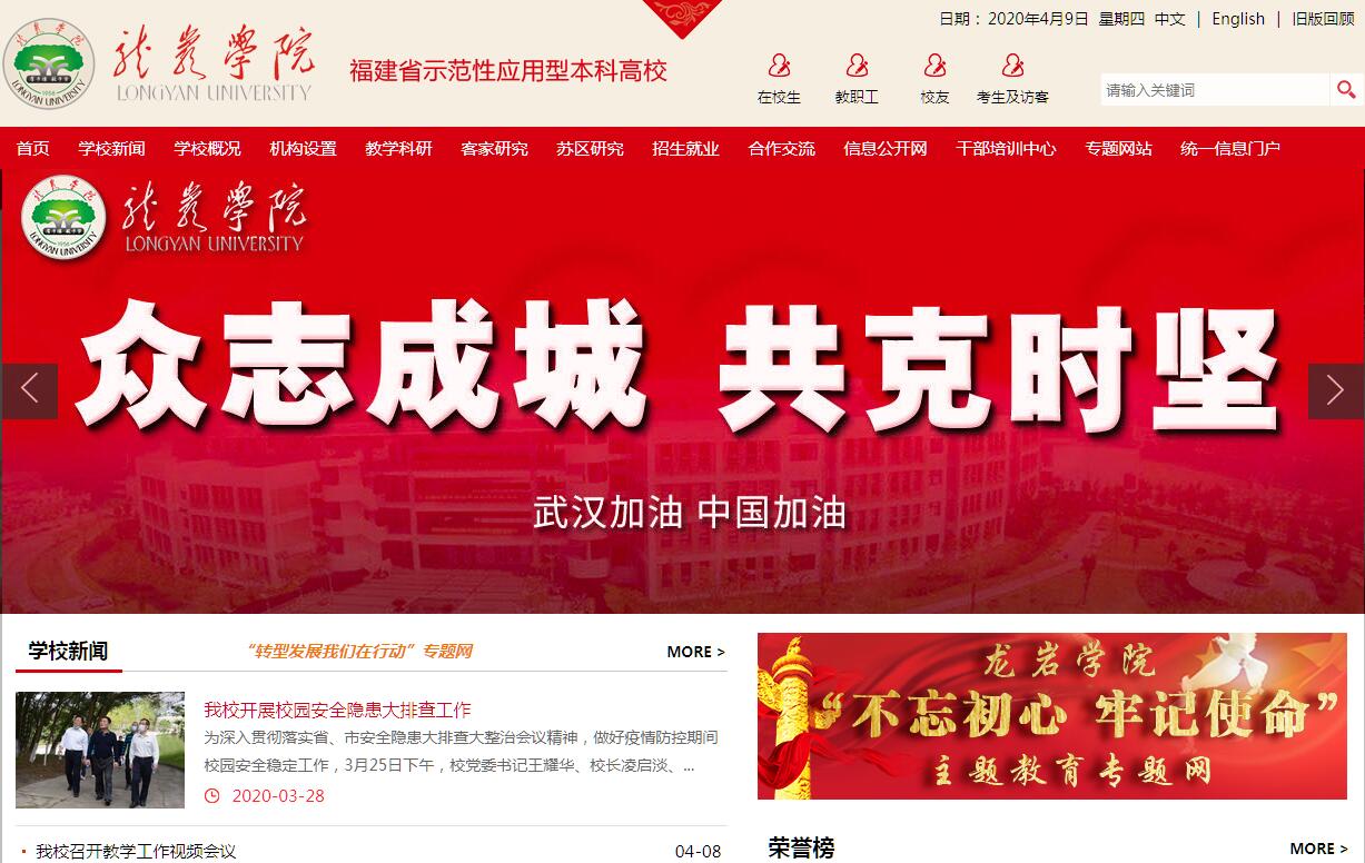 龍巖學(xué)院位于著名革命老區(qū)、客家祖地、國家森林城市——福建省龍巖市,是經(jīng)中華人民共和國教育部批準(zhǔn)設(shè)立的實行“省市共建、以市為主”管理體制的全日制多科性本科院校。學(xué)校創(chuàng)辦于1958年,前身為龍巖師專;2001年,原福建資源工業(yè)學(xué)校并入龍巖師專,2004年5月,正式升格更名為龍巖學(xué)院。學(xué)校是福建省示范性應(yīng)用型本科高校、福建省碩士學(xué)位授予培育單位立項建設(shè)高校、福建省第一屆省級文明校園。學(xué)校堅持社會主義辦學(xué)方向,全面貫徹黨和國家的教育方針,依照《龍巖學(xué)院章程》,加快建設(shè)現(xiàn)代大學(xué)制度,依法促進學(xué)??茖W(xué)發(fā)展。學(xué)校秉承“厚于德、敏于學(xué)”的校訓(xùn),堅持“根植紅土、致力應(yīng)用、彰顯特色、服務(wù)發(fā)展”的辦學(xué)理念,堅持立足龍巖、面向全省、輻射全國、服務(wù)區(qū)域發(fā)展,以培養(yǎng)“專業(yè)基礎(chǔ)實、實踐能力強、綜合素質(zhì)高”的應(yīng)用型人才為主要目標(biāo),為地方經(jīng)濟建設(shè)和社會事業(yè)發(fā)展服務(wù)。學(xué)校設(shè)有14個二級學(xué)院,有41個本科專業(yè),所設(shè)專業(yè)涵蓋文學(xué)、理學(xué)、工學(xué)、經(jīng)濟學(xué)、管理學(xué)、教育學(xué)、農(nóng)學(xué)、藝術(shù)學(xué)等八大學(xué)科門類。面向23個省(市、區(qū))招收本科生以及少數(shù)民族預(yù)科生,全日制在校生11424人?,F(xiàn)有在編教職工837人,專任教師622人,其中教授70人,博士132人,專任教師中博士占比21.2%,碩士占比59.6%。現(xiàn)有國家級人才6人,其中享受國務(wù)院政府特殊津貼專家4人,省、市教學(xué)名師32人。學(xué)??傉嫉孛娣e約76萬平方米,校舍建筑總面積約36萬平方米,現(xiàn)有教學(xué)科研儀器設(shè)備總值16041.11萬元,配備較為完善的體育設(shè)施和多種類的活動場所;圖書館館藏電子圖書近150萬冊、紙質(zhì)圖書近102萬冊、紙質(zhì)報刊近1500種,擁有現(xiàn)代化檢索系統(tǒng)和鏡像站點,是閩西最大的文獻信息中心。當(dāng)前,學(xué)校以深入學(xué)習(xí)貫徹黨的十九大精神為統(tǒng)領(lǐng),以習(xí)近平新時代中國特色社會主義思想為指導(dǎo),以加強示范性應(yīng)用型本科高校建設(shè)為契機,以爭創(chuàng)碩士授權(quán)單位為總抓手,大力弘揚蘇區(qū)精神和客家精神,努力推動學(xué)校事業(yè)發(fā)展再上新臺階、再創(chuàng)新局面,為建設(shè)服務(wù)地方、特色鮮明的閩粵贛邊高水平應(yīng)用型本科高校而砥礪奮進。