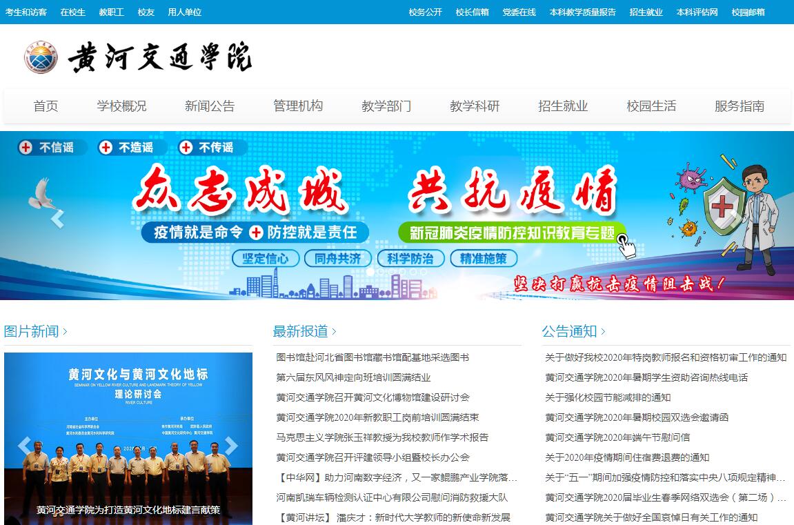黃河交通學(xué)院(Huanghe Jiaotong University)是國家教育部批準(zhǔn)的河南省唯一培養(yǎng)交通運(yùn)輸類人才為主的普通本科高校。建校20余年來,學(xué)校秉承“修德、啟智、博學(xué)、篤信”的校訓(xùn),面向現(xiàn)代綜合交通運(yùn)輸和現(xiàn)代機(jī)械制造行業(yè)辦學(xué),先后為社會培養(yǎng)了近10萬名專業(yè)人才,為河南奮進(jìn)新時(shí)代、中原更加出彩提供強(qiáng)有力的智力支持和人才支撐。黃河交通學(xué)院地處鄭州“一刻鐘經(jīng)濟(jì)圈”內(nèi),與“鄭州黃河風(fēng)景名勝區(qū)”隔河相望,乘坐城際列車從鄭州火車站至學(xué)校僅需十余分鐘,交通便利,環(huán)境宜人。學(xué)?,F(xiàn)有三個校區(qū),總占地面積1800余畝,建筑面積近78萬平方米,教科研儀器設(shè)備總值1.15億余元,圖書館藏圖書147余萬冊,千兆校園網(wǎng)絡(luò)全覆蓋、學(xué)生公寓空調(diào)、洗浴設(shè)施齊全,教學(xué)樓、實(shí)驗(yàn)實(shí)訓(xùn)樓、體育館、餐廳等設(shè)施功能完備,為莘莘學(xué)子提供了良好學(xué)習(xí)生活環(huán)境。學(xué)校緊緊圍繞服務(wù)區(qū)域經(jīng)濟(jì)社會發(fā)展辦學(xué),設(shè)有汽車工程學(xué)院、交通工程學(xué)院、機(jī)電工程學(xué)院、智能工程學(xué)院、經(jīng)濟(jì)管理學(xué)院、馬克思主義學(xué)院、繼續(xù)教育學(xué)院7個二級學(xué)院,形成了以工科為主,工學(xué)、管理學(xué)、經(jīng)濟(jì)學(xué)、法學(xué)、藝術(shù)學(xué)等多學(xué)科協(xié)調(diào)發(fā)展的格局。學(xué)校現(xiàn)開設(shè)71個本??茖I(yè),擁有實(shí)驗(yàn)實(shí)訓(xùn)室127個,校外專業(yè)實(shí)習(xí)基地136個,在校生1.8萬余人。學(xué)校實(shí)施“人才強(qiáng)校”戰(zhàn)略,現(xiàn)有教職工近千人,中高級職稱和研究生以上學(xué)歷占教師總數(shù)70%以上。學(xué)校堅(jiān)持以教學(xué)帶動科研,以科研促進(jìn)教學(xué)。先后獲批成立了“河南省智能制造技術(shù)與裝備工程技術(shù)研究中心”“掛車車架輕量化設(shè)計(jì)工程研究中心”“汽車空調(diào)新冷媒技術(shù)工程研究中心”“橋梁無損檢測工程技術(shù)研究中心”等1個省級、7個市級工程技術(shù)研究中心,1個黃河流域歷史文化研究所。其中4個研究中心并被考評為“優(yōu)秀”等級,先后產(chǎn)生60多項(xiàng)發(fā)明專利,獲批省部級項(xiàng)目15項(xiàng),多項(xiàng)廳級以上科研項(xiàng)目獲獎并獲得資助撥款近130多萬元。學(xué)校不斷深化應(yīng)用技術(shù)高校內(nèi)涵建設(shè),積極構(gòu)建“產(chǎn)教融合、校企合作”的辦學(xué)模式,先后與中國汽研、中國農(nóng)機(jī)院、中國二冶、中國郵政集團(tuán)、特斯拉、東風(fēng)標(biāo)致、東風(fēng)雪鐵龍、東風(fēng)風(fēng)神、奇瑞汽車、順豐速運(yùn)、美的集團(tuán)、格力電器、阿里巴巴、京東等國內(nèi)外上百家知名企業(yè)簽訂了校企合作協(xié)議,牽頭成立職業(yè)教育集團(tuán)、汽車行業(yè)協(xié)會,并與河南理工大學(xué)、北京理工大學(xué)出版社、河南省社科聯(lián)、河南省交通科技研究院、鄭州機(jī)械研究所等科研院所建立了合作關(guān)系,開展了多種形式的產(chǎn)學(xué)研合作。其中,規(guī)劃用地1500畝,總投資19.7億元的“國家智能清潔能源汽車質(zhì)量監(jiān)督檢驗(yàn)中心”由學(xué)校與中國汽研聯(lián)合建設(shè),該項(xiàng)目填補(bǔ)了河南省內(nèi)無國家級一類汽車檢測機(jī)構(gòu)的空白,是國內(nèi)為數(shù)不多的由央企和高校合資共建的產(chǎn)教融合型項(xiàng)目,是我省應(yīng)用型本科高校標(biāo)志性成果,是產(chǎn)教融合標(biāo)志性工程。2019年9月,預(yù)投資20億元、占地10750畝的“國家智能農(nóng)機(jī)裝備科技教育示范園”項(xiàng)目簽約落戶黃河交通學(xué)院,政校企三方共同打造最具特色的國家級農(nóng)業(yè)智能生產(chǎn)全程機(jī)械化示范基地,打造國家級農(nóng)機(jī)具/食品機(jī)械質(zhì)量監(jiān)督檢驗(yàn)中心,打造融合中原農(nóng)村地區(qū)三大產(chǎn)業(yè)的科技教育示范基地。學(xué)校全面實(shí)施素質(zhì)教育,注重學(xué)生“雙創(chuàng)”能力培養(yǎng)。大學(xué)生就業(yè)創(chuàng)業(yè)、創(chuàng)新成果層出不窮。“黃河交通學(xué)院眾創(chuàng)空間”獲得河南省2018年度高校眾創(chuàng)空間建設(shè)項(xiàng)目立項(xiàng),在校大學(xué)生張夢龍“空中奇兵”項(xiàng)目榮獲首屆河南省大學(xué)生創(chuàng)新創(chuàng)業(yè)優(yōu)秀項(xiàng)目選拔賽大賽的“一等獎”。多名學(xué)生在全國周培源大學(xué)生力學(xué)競賽河南賽區(qū)、全國大學(xué)生嵌入式設(shè)計(jì)大賽全國總決賽、河南省大學(xué)生物流仿真設(shè)計(jì)大賽、“創(chuàng)青春”河南省大學(xué)生創(chuàng)業(yè)大賽等賽事中獲獎。近幾年來,學(xué)校德育工作成效凸顯,優(yōu)秀學(xué)子輩出,先后涌現(xiàn)出創(chuàng)業(yè)先鋒郭舉、發(fā)明狂人仝長鵬、感動中原新聞人物葉龑、帶病母上學(xué)張照滿、攜筆從戎大學(xué)生優(yōu)秀代表迭建磊、綠城衛(wèi)士孫志彥等大批優(yōu)秀學(xué)子。學(xué)校充分發(fā)揮高校資源優(yōu)勢,積極踐行社會服務(wù)功能,與阿里巴巴集團(tu