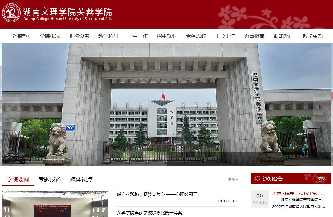 湖南文理學院芙蓉學院是2002年經湖南省人民政府批準,由湖南文理學院舉辦、教育部首批確認的實施全日制普通高等本科學歷教育的獨立學院,2004年順利通過教育部辦學條件和教學水平專項檢查評估。學院坐落于常德市青年東路,由東西兩個校區(qū)組成,占地面積500畝,建筑面積14萬多平米,在校學生6700多人,專職管理人員60多人。校園環(huán)境幽雅,綠樹成蔭,擁有現(xiàn)代化的教學樓、實驗室、圖書館、風雨操場、學生公寓,各類辦學設施日臻完善。學院依托母體學校優(yōu)質的教學資源辦學,堅持“以學生為根本、以市場為導向、以質量為生命”的辦學理念,把教育質量作為學校的立足之本,實施“素質+能力+特長”的人才培養(yǎng)模式,將學歷教育與職業(yè)技能培養(yǎng)有機結合,面向區(qū)域經濟和社會發(fā)展對人才的市場需要,著力培養(yǎng)和造就具有創(chuàng)新精神的本科學歷層次的高級應用型技術人才和管理人才。學院以聘用母體學校的優(yōu)秀教師為自己的專任教師隊伍,師資力量雄厚,為學生提供優(yōu)質教學服務。學院不斷強化實踐教學,成立了20多個學生社團和協(xié)會,建立了一批學生實踐、實習基地,確保學生綜合素質和職業(yè)技能的全面提高。我院學生參加湖南省普通高校非計算機專業(yè)學生計算機應用水平等級考試,一次性通過率達到了95%以上,一直保持了全省領先地位。在全國大學生電子設計競賽、全國大學生英語競賽、全省大學生英語演講比賽等專業(yè)比賽活動中共獲得十四項大獎。學院畢業(yè)生一次性就業(yè)率達85%。學生在校期間按規(guī)定享受湖南文理學院全日制普通本科學生同等待遇,畢業(yè)時頒發(fā)教育部注冊認可的湖南文理學院芙蓉學院普通本科畢業(yè)證書,符合學士學位授予條件的,2012屆之前的畢業(yè)生,由湖南文理學院授予學士學位,2012屆(含2012屆)之后的畢業(yè)生,由芙蓉學院授予學士學位。