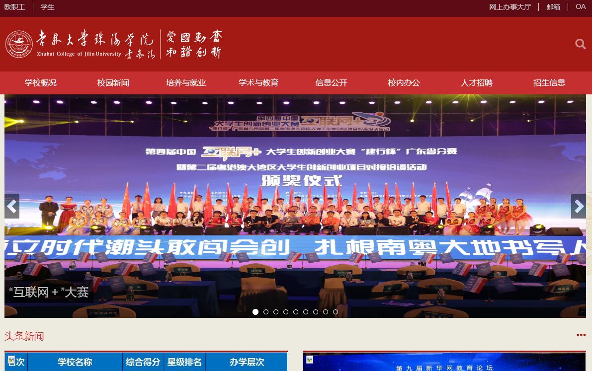 吉林大學(xué)珠海校區(qū)是吉林大學(xué)在珠江三角洲設(shè)立的戰(zhàn)略窗口。2002年1月13日吉林大學(xué)與珠海市人民政府簽訂《珠海市人民政府吉林大學(xué)合作建設(shè)吉林大學(xué)珠海校區(qū)協(xié)議書》。吉林大學(xué)珠海校區(qū)占地5,000畝,現(xiàn)有吉林大學(xué)研究生院珠海分院、吉林大學(xué)南方研究院、無(wú)機(jī)合成與制備化學(xué)國(guó)家重點(diǎn)實(shí)驗(yàn)室珠海分實(shí)驗(yàn)室、國(guó)家地球物理探測(cè)儀器工程技術(shù)研究中心珠海分中心、符號(hào)計(jì)算與知識(shí)工程教育部重點(diǎn)實(shí)驗(yàn)室珠海分實(shí)驗(yàn)室、吉林大學(xué)海洋油氣資源研究中心、中國(guó)人口老齡化與經(jīng)濟(jì)社會(huì)發(fā)展研究中心南方基地、吉林大學(xué)粵港澳臺(tái)區(qū)域合作與發(fā)展研究中心和吉林大學(xué)珠海學(xué)院等9個(gè)教學(xué)、科研和管理機(jī)構(gòu)。已經(jīng)形成從學(xué)士、碩士到博士培養(yǎng)的完整高等教育教學(xué)體系、集人才培養(yǎng)、科學(xué)研究和社會(huì)服務(wù)于一體的完整高等學(xué)校功能體系。吉林大學(xué)珠海學(xué)院(以下簡(jiǎn)稱學(xué)校)是經(jīng)教育部2004年5月18日批準(zhǔn)成立,現(xiàn)由吉林大學(xué)與珠海市華政教育投資有限公司在吉林大學(xué)珠海校區(qū)合作建設(shè)的獨(dú)立學(xué)院。學(xué)校現(xiàn)設(shè)24個(gè)二級(jí)學(xué)院、9大學(xué)科專業(yè)集群,55個(gè)本科專業(yè),全日制普通本科在校生30000余名。學(xué)校特邀一批著名高等教育專家、科學(xué)家成立了“吉林大學(xué)珠海學(xué)院顧問委員會(huì)”,指導(dǎo)學(xué)校的發(fā)展戰(zhàn)略、改革大計(jì)、品牌建設(shè)等重大問題。為建設(shè)一流獨(dú)立學(xué)院的發(fā)展戰(zhàn)略目標(biāo)提供強(qiáng)大的智力支持,使學(xué)校能在激烈的辦學(xué)競(jìng)爭(zhēng)中搶得發(fā)展先機(jī),占領(lǐng)發(fā)展制高點(diǎn)。學(xué)校實(shí)施人才強(qiáng)校戰(zhàn)略,師資隊(duì)伍水平不斷提升。學(xué)校以吉林大學(xué)豐富的優(yōu)質(zhì)教育資源為依托,面向全國(guó)引進(jìn)優(yōu)秀人才,積極培養(yǎng)青年骨干教師,組建了一支教學(xué)經(jīng)驗(yàn)豐富、研發(fā)能力較強(qiáng)、德才兼?zhèn)?、勤奮敬業(yè)的教師隊(duì)伍。專任教師中,43%具有副高級(jí)以上職稱,84%具有碩士以上學(xué)位。國(guó)家級(jí)、省部級(jí)等一批高層次人才受聘為我校特聘教授。學(xué)校制定了《吉林大學(xué)珠海學(xué)院師資隊(duì)伍建設(shè)規(guī)劃》、《吉林大學(xué)珠海學(xué)院教職工培訓(xùn)進(jìn)修管理辦法》、《吉林大學(xué)珠海學(xué)院“三個(gè)層次”人才建設(shè)工程實(shí)施辦法》、《吉林大學(xué)珠海學(xué)院博士提升計(jì)劃實(shí)施辦法》、《吉林大學(xué)珠海學(xué)院“百人工程”青年教師培養(yǎng)計(jì)劃實(shí)施辦法》一系列政策性文件,大力加強(qiáng)師資隊(duì)伍建設(shè),取得了顯著成效。近幾年,學(xué)校榮獲了首批廣東省民辦高校教師隊(duì)伍建設(shè)獎(jiǎng)勵(lì)項(xiàng)目150萬(wàn)資金資助, 3名教師獲國(guó)家留學(xué)基金委地方合作項(xiàng)目資助出國(guó)訪學(xué),3名教師入選廣東省優(yōu)秀青年教師培養(yǎng)計(jì)劃,14名教師入選廣東省高等學(xué)校中青年教師國(guó)內(nèi)訪問學(xué)者計(jì)劃,32名教師入選廣東省“千百十人才培養(yǎng)工程”培養(yǎng)對(duì)象,4名教師被聘為首批“珠海特聘學(xué)者”。學(xué)校遵循“十一五確保質(zhì)量形成規(guī)模、十二五優(yōu)化結(jié)構(gòu)提升質(zhì)量”的發(fā)展思路,確立“綜合性、應(yīng)用型、開放式、強(qiáng)特色、居一流”的辦學(xué)定位。學(xué)校現(xiàn)有本科專業(yè)55個(gè),涵蓋經(jīng)濟(jì)學(xué)、法學(xué)、文學(xué)、理學(xué)、工學(xué)、醫(yī)學(xué)、管理學(xué)、藝術(shù)學(xué)、教育學(xué)九大學(xué)科門類。其中理工科專業(yè)占比47.3%。其中機(jī)械設(shè)計(jì)制造及其自動(dòng)化、旅游管理、廣告學(xué)、英語(yǔ)、網(wǎng)絡(luò)工程、建筑學(xué)、金融學(xué)、電子信息科學(xué)與技術(shù)、計(jì)算機(jī)科學(xué)與技術(shù)、物流管理等10個(gè)專業(yè)被廣東省教育廳確定為專業(yè)綜合改革試點(diǎn)專業(yè)(特色專業(yè))。學(xué)校堅(jiān)持以學(xué)科建設(shè)為龍頭,統(tǒng)籌推動(dòng)人才培養(yǎng)、科學(xué)研究、社會(huì)服務(wù)、師資隊(duì)伍建設(shè)及建設(shè)資源的優(yōu)化配置,緊貼區(qū)域經(jīng)濟(jì)社會(huì)發(fā)展需求及產(chǎn)業(yè)結(jié)構(gòu),結(jié)合學(xué)校辦學(xué)實(shí)際,不斷凝煉特色學(xué)科研究方向,打造學(xué)校優(yōu)勢(shì)特色學(xué)科,提升為區(qū)域社會(huì)經(jīng)濟(jì)服務(wù)的能力。學(xué)校每年投入專項(xiàng)資金用于科學(xué)研究及學(xué)科與平臺(tái)建設(shè)。現(xiàn)擁有廣東省優(yōu)勢(shì)重點(diǎn)學(xué)科計(jì)算機(jī)應(yīng)用技術(shù)、廣東省特色重點(diǎn)學(xué)科生物工程、建筑學(xué)等3個(gè)省級(jí)重點(diǎn)學(xué)科,車輛工程、應(yīng)用化學(xué)、計(jì)算機(jī)應(yīng)用