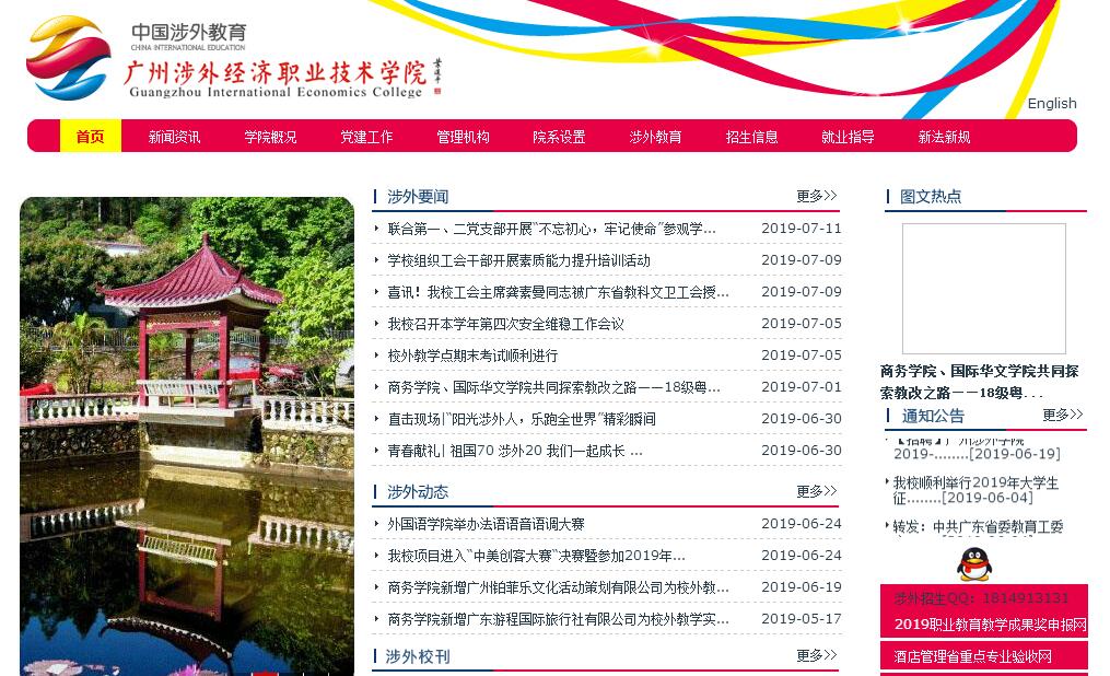 學校地處廣州市白云區(qū)、毗鄰廣州南湖旅游樂園,坐落于風景秀麗的白云山麓,空氣清新,地理位置優(yōu)越,交通極其便利,是陶冶情操、求學成才的理想之地。2004年3月,經廣東省政府批準、國家教育部備案,正式命名為廣州涉外經濟職業(yè)技術學院,成為省屬全日制財經類民辦普通高職院校。2009年3月,中共廣東省委教育工委批準成立中共廣州涉外經濟職業(yè)技術學院委員會。學校占面積1096畝,建筑面積20多萬平方米,圖書館藏書92萬多冊,教學科研儀器設備值4769.39萬元,校內實訓室94間,多媒體課室212間、語音室8間,校外實訓基地277家,建有先進的適應網絡資訊時代的網絡中心,并在學生宿舍配有獨立的高速上網的網絡端口(到桌面的速度達4M)。廣州涉外經濟職業(yè)技術學院是一所富有“三外兩高”特色的財經高校,即培養(yǎng)具有外語、外經、外貿專門知識的高素質、高技能人才。學校設外語與國際教育、外貿與管理、商務、財金、信息工程、設計與藝術、健康與護理、華文、通識教育、馬克思主義、創(chuàng)新創(chuàng)業(yè)教育和繼續(xù)教育等12個二級學院、中職部和2個中心。本學年開設40個專業(yè)。學?,F(xiàn)有專任教師452人,其中:高級職稱145人,省民辦優(yōu)秀教師1人,南粵優(yōu)秀教師6人,專業(yè)帶頭人45人,骨干教師240人,外教10人,以他們?yōu)楹诵慕M建了一支專兼結合的專業(yè)教學團隊。學校注重對學生外語能力的培養(yǎng),為凸顯“涉外”辦學特色,在多個專業(yè)開展雙語教學,力爭在未來5年有近半數專業(yè)開展雙語課程。學校以“海外短期游學”、“交流生項目”、“海外暑期課程”、“海外留學”等項目,打通了學生乃至學校走向世界的道路。學校先后與美國、加拿大、英國等多個國家和地區(qū)的近20所大學建立了友好合作關系,成功開展了多層次、多形式的對外交流項目。為適應國際經濟新格局和新變化,習近平總書記提出“一帶一路”的戰(zhàn)略構想,在擴大中國的影響力同時,利于新的歐亞商貿通道和經濟發(fā)展帶的形成。在這種形勢下,華文教育尤顯重要。因此,學校扎實推進華文教育。目前,華文學院在海外泰國、柬埔寨、越南、日本、美國、加拿大、馬來西亞、緬甸、老撾、德國、葡萄牙以及部分中東國家和地區(qū)開展招生,現(xiàn)有留學生近百名。學校2004年3月立校,當年普高在校生規(guī)模860人,目前普高在校生規(guī)模9465人,14年增長了11倍多,為國家的現(xiàn)代化建設培養(yǎng)了人才,讓成千上萬的青年學生通過知識和技能改變了命運。他們有的走出國門,在外深造和發(fā)展,創(chuàng)立了自己的事業(yè);有的自己創(chuàng)業(yè),開設了自己的公司、工廠、商店和鋪面,成了老板;有的施展才華,做出業(yè)績,成為行業(yè)、企業(yè)的能人和骨干。近年來,學校受到表彰和獲得的榮譽有:“廣東省高等教育(民辦)院校競爭力十強”、“最具特色民辦教育高職院?!?、“全國職業(yè)教育產教融合特色辦學示范高?!?、“廣東省社會組織五A級單位”、“廣東省職業(yè)教育先進單位”和“全國教育改革創(chuàng)新示范(院)?!?。在廣州日報發(fā)布的“2017全國民辦高職高專院校排行榜TOP100”榜單中,共有8所廣東民辦高職院校入榜,我校名列其中,排位第五。