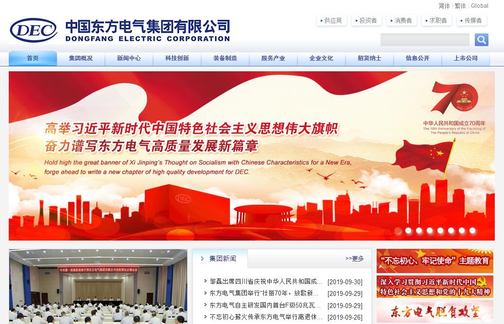 中國東方電氣集團有限公司是中央確定的涉及國家安全和國民經(jīng)濟命脈的國有重要骨干企業(yè)之一,屬國務(wù)院國資委監(jiān)管企業(yè),是全球最大的發(fā)電設(shè)備制造和電站工程總承包企業(yè)集團之一,發(fā)電設(shè)備產(chǎn)量累計超過5億千瓦,已連續(xù)14年發(fā)電設(shè)備產(chǎn)量位居世界前列。東方電氣起步于上世紀50年代末期,通過幾代人馳而不息的奮斗,孕育出“大三線建設(shè)精神”、“求實、創(chuàng)新、人和、圖強”的企業(yè)精神和“東汽精神”;用跌宕起伏的創(chuàng)業(yè)發(fā)展史鑄就了中國民族工業(yè)走向世界的燦爛輝煌,以“中國裝備,裝備中國;中國裝備,裝備世界”的氣概鑄就了中國裝備制造業(yè)的國之重器。東方電氣是國家首批創(chuàng)新型企業(yè)、國家技術(shù)創(chuàng)新示范企業(yè),擁有國家重點實驗室、國家級企業(yè)技術(shù)中心、國家能源大型清潔高效發(fā)電設(shè)備研發(fā)中心、海外高層次人才創(chuàng)新創(chuàng)業(yè)基地、院士工作站、博士后科研工作站,建立了面向市場的企業(yè)產(chǎn)品研發(fā)多級創(chuàng)新體系,助推企業(yè)可持續(xù)穩(wěn)定發(fā)展,助力國家建設(shè)“創(chuàng)新型國家”和“制造強國”。東方電氣在重視傳統(tǒng)能源高效清潔利用的同時,踐行“創(chuàng)新、協(xié)調(diào)、綠色、開放、共享”的發(fā)展理念,大力發(fā)展新能源和可再生能源產(chǎn)業(yè),擁有“水電、火電、核電、氣電、風電、太陽能”六電并舉的研制能力,可批量研制1000MW等級水輪發(fā)電機組、1350MW等級超超臨界火電機組、1000MW-1750MW等級核電機組、重型燃氣輪機設(shè)備、直驅(qū)和雙饋全系列風力發(fā)電機組、高效太陽能電站設(shè)備、大型環(huán)保及水處理設(shè)備、電力電子與控制系統(tǒng)、新能源電池及儲能系統(tǒng)、智能裝備等產(chǎn)品。東方電氣大力拓展海外市場,積極參與“一帶一路”建設(shè),大型裝備產(chǎn)品和服務(wù)出口到近70個國家和地區(qū),創(chuàng)造了中國發(fā)電設(shè)備出口歷史上若干個第一,連續(xù)24年入選ENR全球250家最大國際工程承包商之列。展望未來,東方電氣集團將秉承“共創(chuàng)價值、共享成功”的宗旨,以李克強總理囑托集團“打造中國的GE”為宏愿,實施“12345”新發(fā)展戰(zhàn)略,建設(shè)具有全球競爭力的世界一流企業(yè),以綠色動力驅(qū)動中國和世界經(jīng)濟發(fā)展。