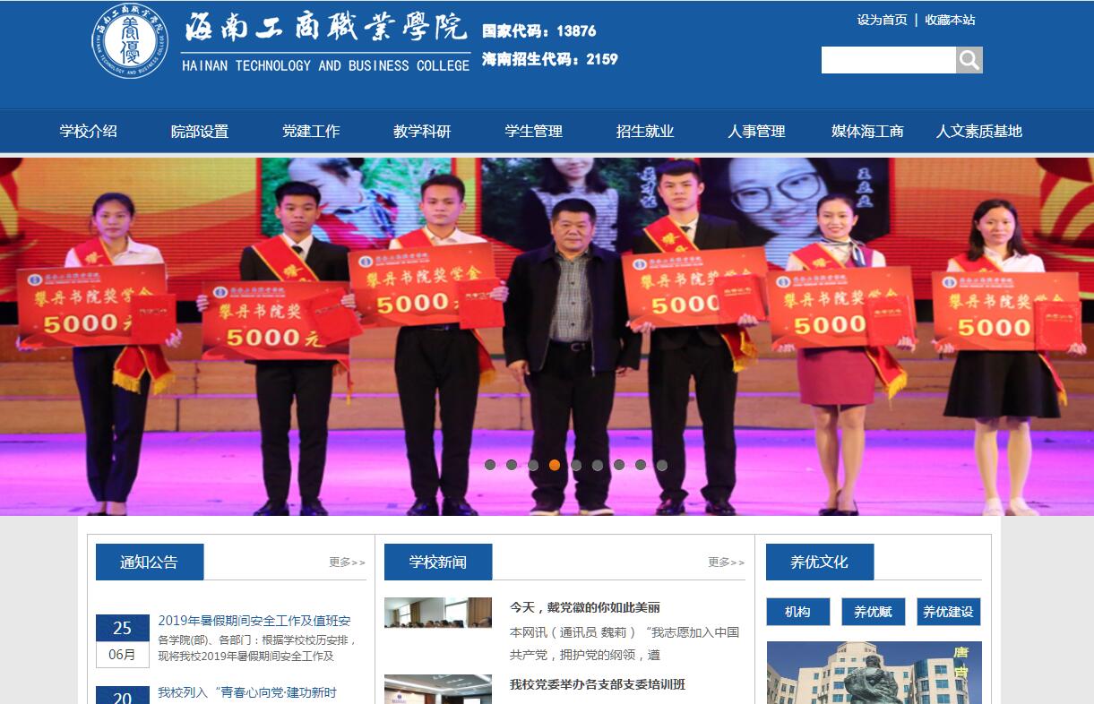 海南工商職業(yè)學(xué)院是教育部備案的全日制普通高等職業(yè)院校,坐落于海南明代先賢唐胄創(chuàng)辦的養(yǎng)優(yōu)書院原址——海南四大文化名村之一的??谂实ご濉W(xué)校前身為2004年創(chuàng)辦的海南萬和信息職業(yè)技術(shù)學(xué)院,2010年4月,教育部批準(zhǔn)海南萬和信息職業(yè)技術(shù)學(xué)院更名為“海南工商職業(yè)學(xué)院”。2012年5月,唐胄后人唐捷先生全資受讓海南工商職業(yè)學(xué)院并出任法人代表和董事長。學(xué)校秉持“養(yǎng)優(yōu)”之校訓(xùn)、“自強弘毅”之校風(fēng)、“立德尚教”之教風(fēng)、“向?qū)W篤行”之學(xué)風(fēng),堅持“師生為本,人才強校,質(zhì)量立校,特色興校,管理優(yōu)?!鞭k學(xué)理念,著力培養(yǎng)優(yōu)秀之品德、優(yōu)容之胸懷、優(yōu)良之習(xí)慣、優(yōu)異之學(xué)業(yè)的高素質(zhì)技術(shù)技能型人才。學(xué)校地理位置優(yōu)越,東臨南渡江、西銜美舍河,位于海南省政治文化中心十分鐘步行交通圈內(nèi),緊鄰中共海南省委、人大和政協(xié),毗鄰海南省圖書館、博物館、歌舞劇院、文化藝術(shù)中心、文化體育公園、體育中心等。學(xué)校校園環(huán)境優(yōu)美,占地面積500余畝,建筑面積約23萬平方,擁有標(biāo)準(zhǔn)的室外運動場和泳池,可容納2000多人的綜合性大禮堂。學(xué)生宿舍面積66347平方,學(xué)生食堂面積7287平方,固定資產(chǎn)總值5.3億元;教學(xué)科研儀器設(shè)備總值8796萬元;圖書館館舍面積24900平方米,閱覽座位1620個,現(xiàn)有紙質(zhì)圖書52萬冊,中文紙質(zhì)期刊386種,電子圖書135萬冊,電子期刊16698種,學(xué)位論文323437篇。學(xué)校還設(shè)有附屬醫(yī)院、附屬小學(xué)、附屬幼兒園。2013年10月,投資8400萬元興建的實訓(xùn)大樓,樓高15層,建筑面積18854平方,能夠為學(xué)生提供充足的實訓(xùn)場所,配備各類先進的實訓(xùn)儀器,擁有目前省內(nèi)最大的私有云平臺,為學(xué)校開展高水平的實訓(xùn)教學(xué)提供了良好的條件。學(xué)校辦學(xué)面向市場,形成了主動適應(yīng)地方經(jīng)濟社會發(fā)展需要、結(jié)構(gòu)合理、具有鮮明高職高專特色的專業(yè)群?,F(xiàn)設(shè)經(jīng)濟管理學(xué)院、建筑工程學(xué)院、旅游藝術(shù)學(xué)院、信息工程學(xué)院、海洋學(xué)院和汽車工程學(xué)院6個二級學(xué)院和思政課部、公共課部2個教學(xué)部。2018年共有35個專業(yè)面向全國招生,其中,省級重點專業(yè)1個,省級特色專業(yè)3個,高職院校省級骨干專業(yè)2個。另外,還設(shè)有唐胄養(yǎng)優(yōu)文化研究中心、省大學(xué)生人文素質(zhì)教育研究基地(省人文社科基地)、省高校特色實驗(實訓(xùn))教學(xué)示范中心和省級創(chuàng)業(yè)孵化基地。學(xué)校擁有一支專兼結(jié)合的高素質(zhì)師資隊伍,其中高級職稱教師62人;碩士研究生以上學(xué)歷101人;“雙師素質(zhì)”教師162人。學(xué)校現(xiàn)有在校生6000余人,生源范圍覆蓋海南、廣東、貴州、云南、甘肅、黑龍江等20個?。ㄊ校┳灾螀^(qū),招生錄取報到率連續(xù)五年位居省內(nèi)同類院校前三名。學(xué)校設(shè)有中高職、高職和普通本科相銜接的“3+2”分段培養(yǎng)的專業(yè)以及“專升本”和“專接本”繼續(xù)教育平臺,設(shè)有“海南省第84國家職業(yè)技能鑒定所”,具備接收外國留學(xué)生資格,并被教育部確定為全國第一批教育信息化試點單位。學(xué)校全面推進素質(zhì)教育,以“全面發(fā)展、一技多能、特長鮮明的高素質(zhì)技術(shù)技能人才”為培養(yǎng)目標(biāo),不斷提高人才培養(yǎng)質(zhì)量。2011年以來,我校學(xué)生在省內(nèi)外各項賽事中取得優(yōu)異成績,共獲獎321項,其中,獲國家級一等獎3項、二等獎12項、三等獎3項、優(yōu)秀獎和其他獎4項;省級一等獎34項、二等獎57項、三等獎135項、優(yōu)秀獎和其他獎73項。學(xué)校依托海南區(qū)位和辦學(xué)體制機制優(yōu)勢,按照國務(wù)院“五個對接”要求,堅持以職業(yè)能力培養(yǎng)為核心,構(gòu)建多元化立體化實踐教學(xué)體系。持續(xù)推進產(chǎn)教融合、工學(xué)結(jié)合,強化校內(nèi)實訓(xùn),深化校企合作,部分專業(yè)與行業(yè)企業(yè)聯(lián)合招生和聯(lián)合培養(yǎng),拓展并不斷深化“訂單式”培養(yǎng)。實施“教學(xué)做一體化”和“一系一品”工程,開辦院辦實體企業(yè)7個,建立校內(nèi)實訓(xùn)基地39個,與深圳中興通訊股份有限公司、北京紅樹林國際酒店管理公司等數(shù)十家企業(yè)合作建立校外實訓(xùn)基地57個,大學(xué)生創(chuàng)業(yè)孵化基地1個,學(xué)子創(chuàng)業(yè)工作室12個。在長三角、珠三角等產(chǎn)業(yè)密集地區(qū)設(shè)立就業(yè)聯(lián)絡(luò)處,搭建畢業(yè)生就業(yè)聯(lián)絡(luò)平臺。目前,學(xué)校已形成招生、教學(xué)、實訓(xùn)、就業(yè)完整的人才培養(yǎng)鏈條。2010—2017年,海南省人力資源和社會保障廳公布的畢業(yè)生初次就業(yè)率,我校連續(xù)八年均在92%以上,位居全省高校前列。
