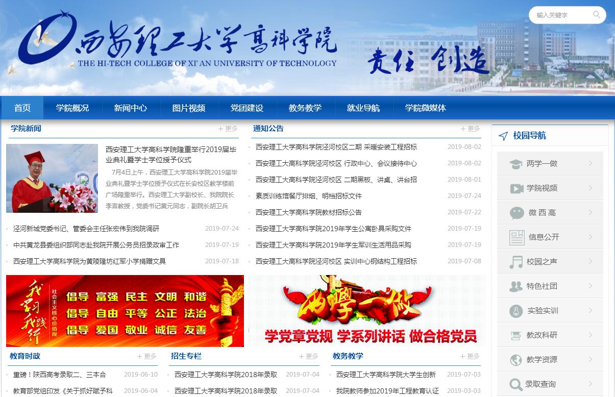 西安理工大學高科學院是國家教育部批準的全日制普通本科院校,是學士學位授予權單位。學院有位于陜西省西安市長安區(qū)大學城的長安校區(qū)和位于西咸新區(qū)的涇河校區(qū):長安校區(qū)占地500余畝,建筑面積15萬平方米,校園環(huán)境優(yōu)美,辦學氛圍濃郁,設施設備齊全,實驗實訓條件在同類學校中領先;新建涇河校區(qū)占地千畝,已列為政府重點項目,將在長安校區(qū)的基礎上規(guī)劃建設大型圖書館、體育館、教學樓、現代化的實驗實訓室集群、信息化公寓,按照功能完善、環(huán)境優(yōu)美、風格別具的高等院校要求,結合現代科技新發(fā)展,建設成產、學、研一體的現代化新校區(qū),向國際化大學標準邁進。學院傳承西安理工大學優(yōu)勢專業(yè)和特色專業(yè),開設了機械設計制造及其自動化、電氣工程及其自動化、水利水電工程、土木工程、包裝工程、電子信息工程、計算機科學與技術、工程管理、財務管理、英語、信息管理與信息系統、軟件工程、工業(yè)設計、產品設計、審計學和國際經濟與貿易等16個本科專業(yè),面向全國招生,畢業(yè)生按國家規(guī)定頒發(fā)本科畢業(yè)證書和授予學士學位。學院秉承西安理工大學的教學理念和教學管理模式進行教育教學,對傳統的培養(yǎng)模式進行了改革和創(chuàng)新,加大了實踐環(huán)節(jié),大幅度提高多媒體等現代化教學手段的使用,嚴格教育教學督導環(huán)節(jié),有力地保障了教學質量。學院積極探索并努力實踐復合型、應用型、創(chuàng)新型高素質的人才培養(yǎng)模式和“卓越工程師”人才培養(yǎng)方法,培養(yǎng)綜合素質全面發(fā)展的具有很強的競爭能力和對崗位的適應能力的應用型高級人才,畢業(yè)生就業(yè)綜合競爭力得到用人單位一致好評。每年參加全國碩士研究生入學考試上線人數達到在校生的13%,達到參加考研人數的51%。學院秉承了西安理工大學多年的文化積淀,共享理工大學優(yōu)質教學資源,一大批理工大學著名博士生導師、教授、博士擔任各學科和專業(yè)的建設負責人,一線教學高級以上職稱教師占70%以上。學院目前設有國家獎學金、國家勵志獎學金、國家助學金、學校五項年度獎以及社會企事業(yè)單位在我校設立的“萬信勵志獎學金”、“理工晶科勵志獎學金”等多種獎、助學金,為品學兼優(yōu)和家庭困難的學生提供各種獎勵和資助。學院現有20余個院級學生社團,學生活動豐富多彩,完整大學生活促進了學生全面發(fā)展。學院高度重視就業(yè)工作,與當地農業(yè)銀行、蘇州工業(yè)園區(qū)、長三角多個經濟開發(fā)區(qū)的30多家企業(yè)簽署校企就業(yè)合作單位,進行實習就業(yè)基地建設合作,為我院學生就業(yè)開 辟了廣闊的新途徑,學院畢業(yè)生就業(yè)優(yōu)勢明顯。學院以科學發(fā)展觀為指導,以全面提高質量為核心,著力加強內涵建設,辦學水平和社會聲譽穩(wěn)步提升。學院正在為實現建設以工為主、多學科協調發(fā)展、特色鮮明的大學的目標而努力奮斗,努力建設成為全國獨立本科院校中具有示范性、推廣性、輻射性的高校。