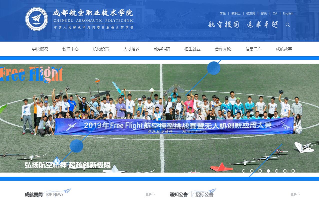 成都航空職業(yè)技術(shù)學(xué)院是四川省教育廳直屬公辦全日制普通高等學(xué)校,是經(jīng)教育部批準(zhǔn)設(shè)立的全國最早獨(dú)立舉辦高等職業(yè)教育的學(xué)校,是教育部首批批準(zhǔn)成立的四川省第一所、全國首批國家示范性高等職業(yè)院校。學(xué)校是黃炎培職業(yè)教育優(yōu)秀學(xué)校、全國職業(yè)技術(shù)教育先進(jìn)單位、四川省省級(jí)文明單位、西南地區(qū)唯一一所獲得教育部高等學(xué)校繼續(xù)教育示范基地榮譽(yù)稱號(hào)的高職院校、四川省職教師資培訓(xùn)基地、四川省高技能人才培訓(xùn)基地。學(xué)校地處成都市東門方向的龍泉驛區(qū),西距成都市政府17公里、環(huán)球中心19公里、天府廣場(chǎng)26公里、雙流國際機(jī)場(chǎng)28公里;學(xué)校周圍有成龍大道、驛都大道、繞城高速、地鐵2號(hào)線等寬大、高速的交通設(shè)施,可方便快速直達(dá)成都市中心各文化、商業(yè)、生活區(qū)域;學(xué)校周圍有四川師范大學(xué)、成都大學(xué)、四川旅游學(xué)院、四川大學(xué)分校區(qū)、成都信息工程大學(xué)分校區(qū)等十多所大學(xué)、高職學(xué)校的本部、分部。龍泉驛區(qū)是國務(wù)院批準(zhǔn)的成都市城市向東發(fā)展主體區(qū)域、成都經(jīng)濟(jì)技術(shù)開發(fā)區(qū)所在地、成都副中心;2013年、2014、2015、2016年蟬聯(lián)四川省十強(qiáng)縣榜首;成渝鐵路、公路穿境而過;素有"四時(shí)花不斷,八節(jié)佳果香"之美譽(yù),是國務(wù)院正式命名的"中國水蜜桃之鄉(xiāng)"。學(xué)校占地近900畝,建筑面積30多萬平方米;現(xiàn)有固定資產(chǎn)總值約13億元,其中教學(xué)儀器設(shè)備原值近2億元;建有骨干萬兆校園網(wǎng),實(shí)現(xiàn)無線網(wǎng)絡(luò)全校區(qū)覆蓋;建有多功能、現(xiàn)代化的圖書館,可通過各種訪問方式查閱、下載近100萬冊(cè)圖書資料。學(xué)校現(xiàn)有全日制在校生1萬1千余名;現(xiàn)設(shè)機(jī)電工程學(xué)院、信息工程學(xué)院、建筑工程學(xué)院、管理學(xué)院、汽車工程學(xué)院、通用航空學(xué)院、航空工程學(xué)院、民航運(yùn)輸學(xué)院、士官管理學(xué)院等九個(gè)二級(jí)教學(xué)學(xué)院;共有招生專業(yè)32個(gè),其中,國家示范院校重點(diǎn)專業(yè)6個(gè),教育部“高等職業(yè)學(xué)校提升專業(yè)服務(wù)產(chǎn)業(yè)發(fā)展能力項(xiàng)目”重點(diǎn)專業(yè)4個(gè),省級(jí)重點(diǎn)建設(shè)專業(yè)4個(gè),學(xué)校特色專業(yè)10個(gè)。學(xué)校榮獲國家級(jí)教學(xué)成果一等獎(jiǎng)1項(xiàng)、職業(yè)教育國家級(jí)教育成果二等獎(jiǎng)4項(xiàng),國家發(fā)明四等獎(jiǎng)1項(xiàng),省部級(jí)科技進(jìn)步二等獎(jiǎng)1項(xiàng),省部級(jí)以上教學(xué)研究成果20余項(xiàng)。學(xué)校擁有國家精品課程12門,國家精品資源共享課程10門,省級(jí)精品課程32門,省級(jí)精品資源共享課21 門。主持建設(shè)完成1個(gè)、參與建設(shè)完成4個(gè)國家高職教育專業(yè)教學(xué)資源庫。建校以來,學(xué)校秉承“航空?qǐng)?bào)國 追求卓越”的精神,凝練了“明德、篤行、求實(shí)、創(chuàng)新” 的校訓(xùn)、“勤奮、嚴(yán)謹(jǐn)、活潑、文明”的校風(fēng)。學(xué)校牢牢把握我國民航運(yùn)輸業(yè)、汽車工業(yè)和現(xiàn)代服務(wù)業(yè)大發(fā)展的有利時(shí)機(jī),緊扣四川“工業(yè)強(qiáng)省”建設(shè)發(fā)展戰(zhàn)略,遵循“源于航空、依靠航空、服務(wù)航空”的辦學(xué)思路,堅(jiān)持“以人為本、爭創(chuàng)一流,打造品牌、辦出特色”的辦學(xué)理念,強(qiáng)化內(nèi)涵建設(shè),實(shí)施“特色品牌專業(yè)”和“人才強(qiáng)?!?建設(shè)工程,全面深化教育教學(xué)改革,不斷提升社會(huì)服務(wù)能力,確立了建設(shè)內(nèi)涵水平領(lǐng)先,人才質(zhì)量上乘,辦學(xué)綜合實(shí)力和社會(huì)服務(wù)能力強(qiáng)的國內(nèi)一流、國際有影響、航空特色鮮明的高等職業(yè)技術(shù)學(xué)院的奮斗目標(biāo)。學(xué)校擁有一支“愛崗敬業(yè)、德技雙馨”的教師隊(duì)伍,現(xiàn)有教職工677名,其中包括:中共中央組織部“萬人計(jì)劃”教學(xué)名師2名,國家級(jí)教學(xué)名師2名,省級(jí)學(xué)術(shù)技術(shù)帶頭人1名,享受國務(wù)院政府特殊津貼專家8名,省級(jí)有突出貢獻(xiàn)的專家1名,全國模范教師1名,全國優(yōu)秀教師2名,省級(jí)教學(xué)名師5名,以及國家級(jí)教學(xué)團(tuán)隊(duì)2個(gè),省級(jí)教學(xué)團(tuán)隊(duì)4個(gè)。學(xué)校把航空、區(qū)域經(jīng)濟(jì)發(fā)展需求作為自身創(chuàng)新發(fā)展的源動(dòng)力,探索實(shí)踐出一條政行企校多元化辦學(xué)之路。學(xué)校發(fā)起成立了“西南航空產(chǎn)教聯(lián)盟”、“成都汽車產(chǎn)教聯(lián)盟”。與中國國際航空公司、四川航空公司、海南航空公司、廈門航空公司、一汽-大眾、VOLVO汽車、博世集團(tuán)、??怂箍倒?、捷豹路虎、ABB集團(tuán)、中興通訊股份有限公司等航空產(chǎn)業(yè)鏈、汽車產(chǎn)業(yè)鏈以及區(qū)域經(jīng)濟(jì)的高端技術(shù)與服務(wù)優(yōu)勢(shì)企業(yè),在人才培養(yǎng)與培訓(xùn)、實(shí)習(xí)實(shí)訓(xùn)基地