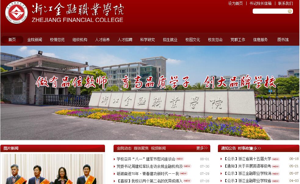 浙江金融職業(yè)學(xué)院始建于1975年,前身為直屬于中國人民銀行總行的國家級重點(diǎn)中?!憬y行學(xué)校,2000年劃轉(zhuǎn)浙江省管理,同年6月升格籌建高職學(xué)院,2002年1月正式建院,主要為經(jīng)濟(jì)金融行業(yè)培養(yǎng)高素質(zhì)專門人才。2006年,學(xué)校被教育部、財(cái)政部確定為全國首批“國家示范性高等職業(yè)院校建設(shè)單位”并于2009年以優(yōu)異成績圓滿通過教育部、財(cái)政部驗(yàn)收。2017年被確定為浙江省重點(diǎn)建設(shè)高職院校。學(xué)校位于美麗的錢塘江畔、杭州下沙大學(xué)城,占地面積612畝(含德清學(xué)院),建筑面積33.4萬平方米,現(xiàn)有在校學(xué)生10131名,教職員工500余人,正高職稱53人,其中黃炎培職業(yè)教育優(yōu)秀校長1名,黃炎培職業(yè)教育優(yōu)秀教師1名,國家“萬人計(jì)劃”領(lǐng)軍人才(教學(xué)名師)1人,浙江省首批“萬人計(jì)劃”領(lǐng)軍人才(教學(xué)名師)1人,全國高校思想政治理論課年度影響力十大標(biāo)兵人物1人,全國優(yōu)秀教師1人,全國優(yōu)秀教學(xué)團(tuán)隊(duì)1個(gè);擁有浙江省杰出教師1人,浙江省中青年學(xué)科帶頭人2人,省“151人才”20人,省高職高專專業(yè)帶頭人18人、專業(yè)帶頭人培養(yǎng)對象12人,省級教學(xué)名師3人,省級教壇新秀3人;學(xué)校教師近年來主持國家社科基金項(xiàng)目3項(xiàng),省部級科研項(xiàng)目百余項(xiàng),在高等教育類18種核心期刊發(fā)表論文數(shù)連續(xù)11年保持全國高職院校第一,多篇研究成果被省委省政府主要領(lǐng)導(dǎo)批示肯定。學(xué)校先后獲得“全國職業(yè)教育先進(jìn)集體”“全國金融職業(yè)教育先進(jìn)集體”“全國畢業(yè)生就業(yè)典型經(jīng)驗(yàn)高?!薄罢憬趧?dòng)模范集體”“黃炎培職業(yè)教育優(yōu)秀學(xué)校”“浙江省職業(yè)教育先進(jìn)單位”等榮譽(yù)稱號,被中共浙江省委、浙江省人民政府命名為省級文明單位;學(xué)校是中國高等職業(yè)技術(shù)教育研究會(huì)會(huì)長單位、全國財(cái)經(jīng)類高職院校聯(lián)席會(huì)主席單位、全國金融職業(yè)教育教學(xué)指導(dǎo)委員會(huì)副主任委員單位、全國高職素質(zhì)教育工作委員會(huì)主任委員單位、浙江省高職教育研究會(huì)理事長單位、浙江省高職院校黨建研究會(huì)會(huì)長單位、浙江省商務(wù)發(fā)展研究會(huì)會(huì)長單位。學(xué)校下設(shè)金融管理學(xué)院、投資保險(xiǎn)學(xué)院、會(huì)計(jì)學(xué)院、工商管理學(xué)院、國際商學(xué)院、信息技術(shù)學(xué)院(互聯(lián)網(wǎng)金融學(xué)院)、人文藝術(shù)學(xué)院、體育軍事部、馬克思主義學(xué)院、創(chuàng)新創(chuàng)業(yè)學(xué)院、國際交流學(xué)院、銀領(lǐng)學(xué)院、明理學(xué)院、淑女學(xué)院、繼續(xù)教育與培訓(xùn)學(xué)院等14個(gè)教學(xué)機(jī)構(gòu);設(shè)有浙江農(nóng)村合作金融學(xué)院、浙商銀行培訓(xùn)學(xué)院、金融投資學(xué)院等特色培養(yǎng)機(jī)構(gòu)以及高等職業(yè)教育發(fā)展研究中心、浙江地方金融發(fā)展研究中心、浙江互聯(lián)網(wǎng)金融研究中心、浙江省跨境電商應(yīng)用技術(shù)協(xié)同創(chuàng)新中心等科研機(jī)構(gòu);開設(shè)金融管理、保險(xiǎn)、會(huì)計(jì)、國際貿(mào)易實(shí)務(wù)、計(jì)算機(jī)信息管理等22個(gè)專業(yè),與中國計(jì)量大學(xué)聯(lián)合培養(yǎng)互聯(lián)網(wǎng)金融工程專業(yè)四年制本科人才;其中金融管理、會(huì)計(jì)、國際貿(mào)易實(shí)務(wù)、保險(xiǎn)、投資與理財(cái)、市場營銷、商務(wù)英語為浙江省優(yōu)勢專業(yè);計(jì)算機(jī)信息管理、國際金融、國際商務(wù)、農(nóng)村金融、財(cái)務(wù)管理、文秘為浙江省特色專業(yè);主持金融專業(yè)國家教學(xué)資源庫、國際貿(mào)易專業(yè)國家教學(xué)資源庫、金融專業(yè)教學(xué)資源庫升級改進(jìn)支持項(xiàng)目,金融管理、財(cái)務(wù)管理、國際貿(mào)易實(shí)務(wù)、文秘、互聯(lián)網(wǎng)金融等5個(gè)專業(yè)作為組長單位牽頭修訂國家專業(yè)教學(xué)標(biāo)準(zhǔn),國際金融、保險(xiǎn)、投資與理財(cái)3個(gè)專業(yè)作為副組長單位協(xié)助修訂國家專業(yè)教學(xué)標(biāo)準(zhǔn),市場營銷、會(huì)計(jì)專業(yè)作為成員單位參與國家專業(yè)標(biāo)準(zhǔn)修訂工作。學(xué)校擁有省級以上精品課程33門,其中國家級精品課程8門,國家級精品資源共享課8門,《外貿(mào)單證操作》是全國認(rèn)定的22門??聘叩嚷殬I(yè)教育國家精品在線開放課程之一,學(xué)校建有8個(gè)校內(nèi)國家級實(shí)驗(yàn)實(shí)訓(xùn)基地,60余個(gè)省級校內(nèi)實(shí)驗(yàn)實(shí)訓(xùn)基地,200多個(gè)校外實(shí)習(xí)基地和100余個(gè)校外緊密型產(chǎn)學(xué)合作基地。學(xué)校捷克研究中心是教育部區(qū)域和國別研究中心、是浙江省“一帶一路”智庫合作聯(lián)盟單位,與美國、澳大利亞院校聯(lián)合舉辦國際金融、國際商務(wù)和會(huì)展策劃與管理中外合作辦學(xué)項(xiàng)目,項(xiàng)目在籍學(xué)生500余人。留學(xué)生規(guī)模不斷擴(kuò)大,共吸引來自韓國、尼泊爾、印度尼西亞、哈薩克斯