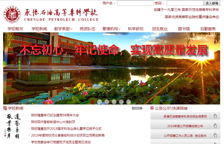 承德石油高等專科學(xué)校始于1903年創(chuàng)辦于天津的“北洋工藝學(xué)堂”,是我國興辦最早的高等工業(yè)職業(yè)院校之一。學(xué)校1952年開始主要面向石油工業(yè)服務(wù),1958年遷至河北省承德市?,F(xiàn)為中央與地方共建、以河北省人民政府管理為主的普通高等??茖W(xué)校。學(xué)校是教育部全國示范性高等工程??浦攸c(diǎn)建設(shè)學(xué)校,國家示范性高等職業(yè)院校重點(diǎn)建設(shè)單位和優(yōu)秀院校、教育部人才培養(yǎng)水平評(píng)估優(yōu)秀院校、全國文明單位。2016年被列為國家優(yōu)質(zhì)??聘叩嚷殬I(yè)院校建設(shè)立項(xiàng)單位。學(xué)?,F(xiàn)設(shè)有10系(機(jī)械工程系、電氣與電子工程系、熱能工程系、化學(xué)工程系、計(jì)算機(jī)與信息工程系、汽車工程系、石油工程系、建筑工程系、管理工程系、外語與旅游系)、4部(思想政治教學(xué)部、數(shù)理部、體育健康與藝術(shù)教育部、成人教育與培訓(xùn)部)、3中心(信息中心、工業(yè)中心、儀器儀表工程技術(shù)研究中心)。開設(shè)高職??茖I(yè)44個(gè),與河北科技大學(xué)聯(lián)合開辦工程教育本科專業(yè)4個(gè),與德國安哈爾特大學(xué)合作開辦中德合作專業(yè)4個(gè),與韓國新羅大學(xué)合作開辦中韓合作專業(yè)3個(gè)。學(xué)校面向20余個(gè)省份招生,現(xiàn)有普通本專科在校生共計(jì)13000余人,成人學(xué)歷教育學(xué)生3000余人,年各類培訓(xùn)2.2萬余人日。學(xué)校占地面積1000余畝,校舍建筑面積25萬平方米。教學(xué)科研儀器設(shè)備1.6億元。圖書館藏書100余萬冊(cè),收訂中外文期刊1361種。學(xué)?,F(xiàn)有教職工737人,高級(jí)職稱教師243人(教授59人),碩士以上學(xué)位教師444人(博士41人)。學(xué)校有國家級(jí)教學(xué)團(tuán)隊(duì)3個(gè),省級(jí)教學(xué)名師4人,入選省級(jí)人才工程19人,承德市拔尖人才12人,承德市新世紀(jì)學(xué)術(shù)技術(shù)帶頭人23人。4人入選第二輪河北省高職院校人才培養(yǎng)工作評(píng)估專家?guī)欤?3位教師被聘為教育部高職高專專業(yè)教學(xué)指導(dǎo)委員會(huì)委員,14位教師被聘為碩士研究生導(dǎo)師。學(xué)校有7個(gè)教育部教學(xué)改革試點(diǎn)專業(yè)、3個(gè)教育部高等工程??剖痉秾I(yè),5個(gè)區(qū)域和行業(yè)特色鮮明國家示范重點(diǎn)建設(shè)專業(yè),5個(gè)河北省高職高專教改示范專業(yè),2個(gè)高等職業(yè)學(xué)校提升專業(yè)服務(wù)產(chǎn)業(yè)發(fā)展能力重點(diǎn)建設(shè)專業(yè)。學(xué)校有省級(jí)以上精品課程25門,其中國家精品課程(國家精品資源共享課程)10門。應(yīng)用化工技術(shù)專業(yè)教學(xué)資源庫被教育部確定為首批啟動(dòng)的高等職業(yè)教育教學(xué)資源庫建設(shè)立項(xiàng)項(xiàng)目并順利通過驗(yàn)收。學(xué)校教師主編出版國家級(jí)規(guī)劃教材64部,有32部主編教材被列入“十二五”職業(yè)教育國家規(guī)劃教材,獲得國家優(yōu)秀教材獎(jiǎng)4項(xiàng)。學(xué)校有河北省儀器儀表產(chǎn)業(yè)技術(shù)研究院、河北省儀器儀表工程技術(shù)研究中心、河北省石油生產(chǎn)虛擬仿真技術(shù)及應(yīng)用工程技術(shù)研究中心、河北省流體測控儀表工程實(shí)驗(yàn)室、河北省高校工業(yè)數(shù)據(jù)通信與自動(dòng)化儀表應(yīng)用技術(shù)研發(fā)中心等5個(gè)省級(jí)科技平臺(tái),近五年承擔(dān)市廳級(jí)以上教科研課題370多項(xiàng),服務(wù)企業(yè)技術(shù)課題170余項(xiàng),90余項(xiàng)成果獲獎(jiǎng),其中國家級(jí)教學(xué)成果獎(jiǎng)2項(xiàng)、教育部科技進(jìn)步獎(jiǎng)一等獎(jiǎng)1項(xiàng)。學(xué)校近年來發(fā)表學(xué)術(shù)論文2000余篇,其中核心期刊論文520余篇,取得國家專利80余項(xiàng)。公開出版的《學(xué)報(bào)》是全國高職高專優(yōu)秀學(xué)報(bào)和全國優(yōu)秀科技期刊、全國高職高專核心期刊。學(xué)校建有較為完備的校內(nèi)實(shí)驗(yàn)實(shí)訓(xùn)基地群,擁有校外實(shí)訓(xùn)和產(chǎn)學(xué)合作基地385個(gè)。學(xué)校是首批職業(yè)院校文化素質(zhì)教育基地、全國產(chǎn)學(xué)研合作教育試點(diǎn)單位、全國創(chuàng)業(yè)培訓(xùn)試點(diǎn)院校、教育部技能型緊缺人才培養(yǎng)培訓(xùn)基地,全國石油和化工行業(yè)職業(yè)教育與培訓(xùn)示范性實(shí)訓(xùn)基地、全國化工行業(yè)特有工種職業(yè)技能鑒定站和河北省電子行業(yè)特有工種職業(yè)技能鑒定站。學(xué)校在百余年的辦學(xué)歷程中,秉承“道藝兼修,敬業(yè)樂群”的校訓(xùn)和“工藝非學(xué)不興、學(xué)非工藝不顯”的辦學(xué)理念,致力于服務(wù)地方經(jīng)濟(jì)以及石油工業(yè)發(fā)展。學(xué)校與12所國內(nèi)院校和11所國外院校建立了校際合作關(guān)系,與承德市高新區(qū)管委會(huì)共同建立了政產(chǎn)學(xué)研戰(zhàn)略聯(lián)盟和科技創(chuàng)新創(chuàng)業(yè)苗圃,與企業(yè)共同建立了儀器儀表研發(fā)中心,牽頭成立承德裝備制造職教集團(tuán)。學(xué)校與世界五百強(qiáng)企業(yè)中石油、中石化、中海油、大唐、神華等大型能源企業(yè)建立了長期合作關(guān)系,每年有大批學(xué)生到這些企業(yè)進(jìn)