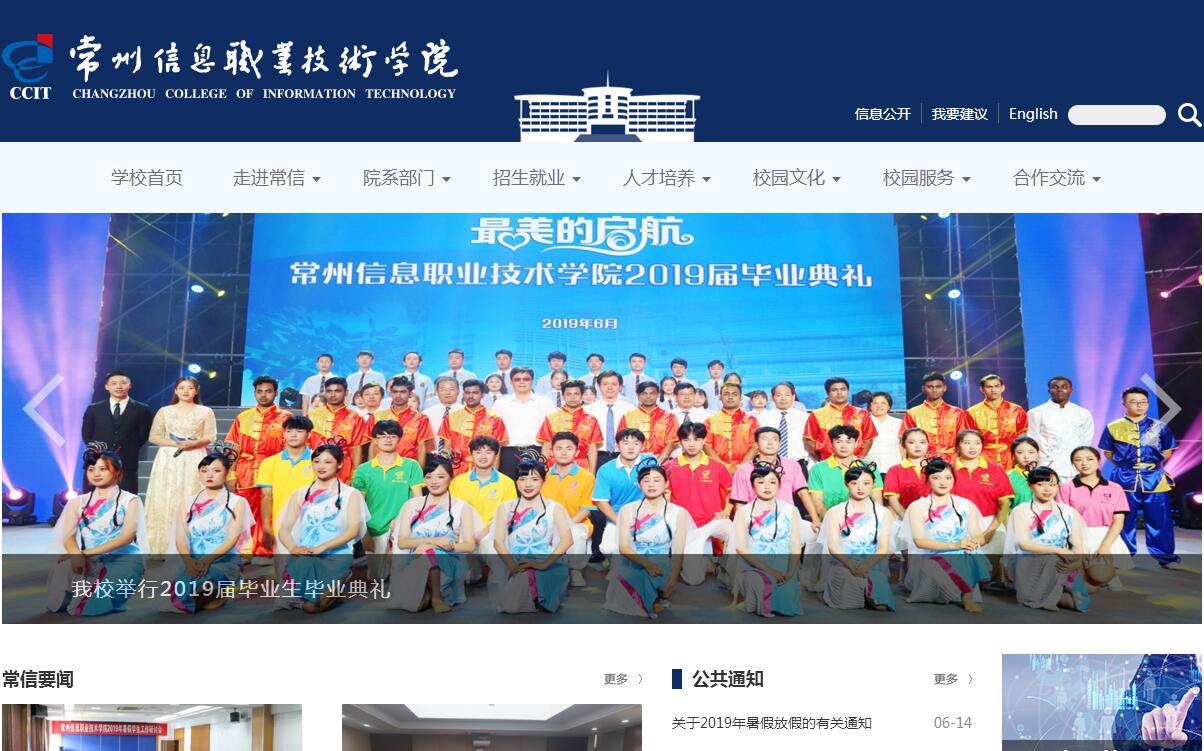常州信息職業(yè)技術(shù)學(xué)院創(chuàng)辦于1962年,初名常州市勤業(yè)機(jī)電學(xué)校,1980年更名為常州無(wú)線(xiàn)電工業(yè)學(xué)校,2000年10月經(jīng)江蘇省人民政府批準(zhǔn)由常州無(wú)線(xiàn)電工業(yè)學(xué)校和常州市電子工業(yè)職工大學(xué)合并組建成立常州信息職業(yè)技術(shù)學(xué)院。學(xué)校隸屬于江蘇省工業(yè)和信息化廳,地處中國(guó)經(jīng)濟(jì)最發(fā)達(dá)的長(zhǎng)三角腹地——常州,坐落在風(fēng)景秀麗、充滿(mǎn)現(xiàn)代氣息,集教學(xué)、科研、培訓(xùn)、職業(yè)技能鑒定和社會(huì)服務(wù)于一體的常州高職園區(qū)。學(xué)校占地1,042畝,建筑總面積33.78萬(wàn)平方米,有全日制本專(zhuān)科在校生12180人、學(xué)歷繼續(xù)教育學(xué)生4533人、留學(xué)生222人,教職工696人。學(xué)校設(shè)有智能裝備學(xué)院、電子工程學(xué)院、軟件與大數(shù)據(jù)學(xué)院、現(xiàn)代服務(wù)學(xué)院、數(shù)字創(chuàng)意學(xué)院、繼續(xù)教育學(xué)院、海外教育學(xué)院等7個(gè)二級(jí)學(xué)院,馬克思主義學(xué)院、基礎(chǔ)教學(xué)部、大學(xué)外語(yǔ)部、體育部等4個(gè)教學(xué)部。學(xué)校以“立足信息產(chǎn)業(yè),培養(yǎng)信息人才,服務(wù)信息社會(huì)”為辦學(xué)理念,設(shè)有40個(gè)專(zhuān)業(yè),建有國(guó)家級(jí)重點(diǎn)專(zhuān)業(yè)8個(gè)、國(guó)家級(jí)實(shí)訓(xùn)基地4個(gè)、國(guó)家級(jí)精品課程4門(mén)、國(guó)家級(jí)精品資源共享課程3門(mén)、國(guó)家級(jí)精品在線(xiàn)開(kāi)放課程2門(mén)、國(guó)家級(jí)優(yōu)秀教學(xué)團(tuán)隊(duì)1個(gè)、國(guó)家教學(xué)名師1名、全國(guó)性產(chǎn)教聯(lián)盟1個(gè)、教育部現(xiàn)代學(xué)徒制試點(diǎn)專(zhuān)業(yè)1個(gè)、牽頭建設(shè)國(guó)家級(jí)教學(xué)資源庫(kù)2個(gè),是國(guó)家勞動(dòng)與社會(huì)保障部、工業(yè)和信息化部高技能人才培養(yǎng)示范基地,國(guó)家軟件與信息服務(wù)外包人才培訓(xùn)基地。建有江蘇省品牌專(zhuān)業(yè)2個(gè),省級(jí)產(chǎn)教融合實(shí)訓(xùn)基地2個(gè)、骨干專(zhuān)業(yè)5個(gè)、特色專(zhuān)業(yè)7個(gè)、重點(diǎn)專(zhuān)業(yè)群4個(gè)、科技創(chuàng)新團(tuán)隊(duì)1個(gè)、教學(xué)名師3名,獲國(guó)家教學(xué)成果一等獎(jiǎng)3項(xiàng)、二等獎(jiǎng)3項(xiàng),省級(jí)教學(xué)成果特等獎(jiǎng)1項(xiàng)、一等獎(jiǎng)5項(xiàng)、二等獎(jiǎng)9項(xiàng),江蘇省科學(xué)技術(shù)二、三等獎(jiǎng)各1項(xiàng)。學(xué)校先后獲得“黃炎培職業(yè)教育獎(jiǎng)優(yōu)秀學(xué)校獎(jiǎng)”“全國(guó)高職院校魅力校園”“全國(guó)畢業(yè)生就業(yè)典型經(jīng)驗(yàn)高?!薄叭珖?guó)高職院校創(chuàng)新創(chuàng)業(yè)教育先進(jìn)單位”“中國(guó)職業(yè)院校新媒體十大最具影響力院?!钡葮s譽(yù)稱(chēng)號(hào),被選為中國(guó)軟件產(chǎn)教聯(lián)盟執(zhí)行理事長(zhǎng)單位、中國(guó)-南非職業(yè)教育合作聯(lián)盟中方理事會(huì)執(zhí)行秘書(shū)處單位、全國(guó)高等職業(yè)院校創(chuàng)新創(chuàng)業(yè)聯(lián)盟副理事長(zhǎng)單位、首批“職業(yè)院校文化素質(zhì)教育基地建設(shè)單位”、首批“職業(yè)院校數(shù)字化校園建設(shè)實(shí)驗(yàn)?!薄?/p>