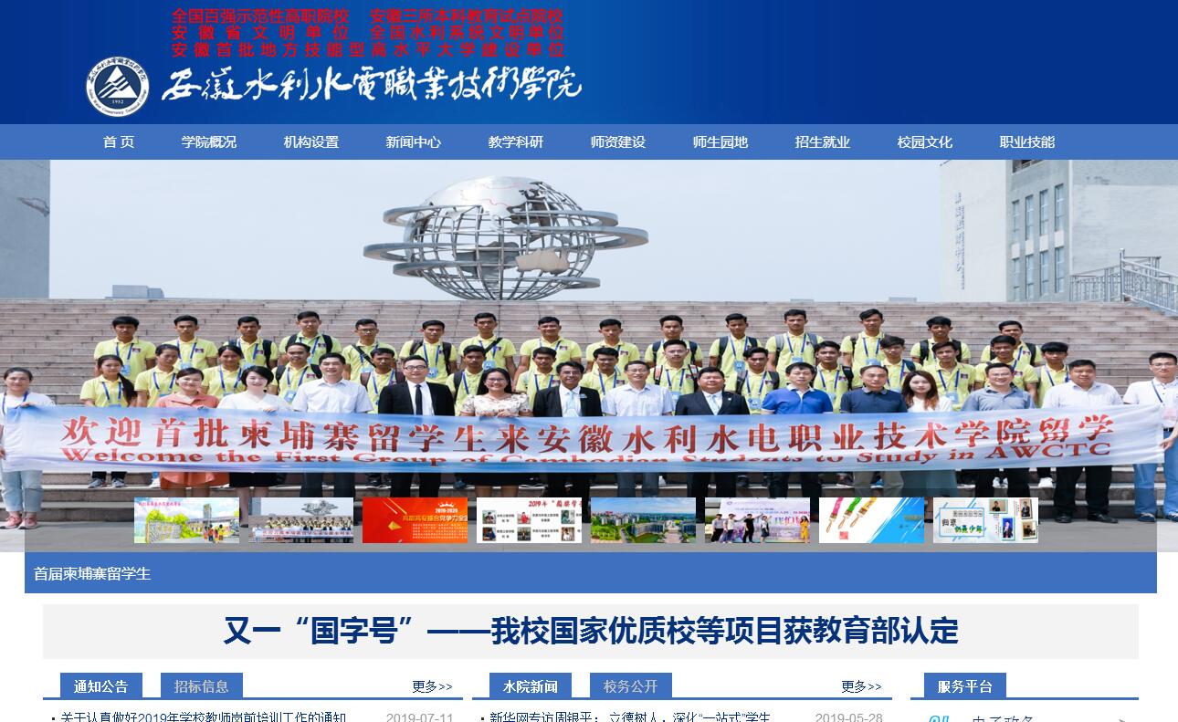 安徽水利水電職業(yè)技術(shù)學院始建于1952年,其前身為水利部“淮河水利專科學?!?。2000年,經(jīng)省人民政府批準,正式成立安徽水利水電職業(yè)技術(shù)學院。學院是全國100所和全省3所國家示范性高職院校之一。2014年,經(jīng)省發(fā)展改革委和教育廳批準,在全省高職中率先進行“四年一貫制”本科教育改革試點,在校本科生600余人。首屆84名本科生已順利畢業(yè),考研達線率及就業(yè)質(zhì)量較高。2015年,經(jīng)省教育廳批準為全省首批16所地方技能型高水平大學建設(shè)院校之一。2016年,榮獲安徽省文明單位。2018年,獲批全國首批優(yōu)質(zhì)水利高等職業(yè)院校建設(shè)單位、教育部第三批現(xiàn)代學徒制試點單位和安徽省“三全育人”綜合改革試點高校。此外,學院還榮膺“全國高職高專人才培養(yǎng)工作水平評估優(yōu)秀單位”“國家高技能人才培養(yǎng)基地”“全國水利系統(tǒng)文明單位”“全國職業(yè)教育先進單位”“全國水利行業(yè)高技能人才培養(yǎng)基地”和“安徽省普通高校畢業(yè)生就業(yè)工作標兵單位”等多項榮譽或稱號。學院坐落于安徽省省會合肥,交通便利,環(huán)境優(yōu)美。校園占地1040畝,建有教學樓、學生公寓、餐飲中心、體育館、圖書館、大學生活動中心、大學生服務中心和素質(zhì)拓展基地等完善的教學和生活設(shè)施40余萬㎡。校內(nèi)設(shè)有九大實訓中心,擁有實踐性教學所必須的各類實驗室、實訓室、實習工廠等130個,校外固定實習實訓基地近400個。學院建有先進的智慧校園和交互式多媒體教學網(wǎng)。圖書館現(xiàn)有藏書70萬冊、電子圖書60萬冊及各類專業(yè)期刊500余種。學院現(xiàn)有教職工700余人,其中教授、副教授、高級工程師等近200人,“雙師型”教師400余人,中青年教師中接受博士、碩士研究生教育的300余人。擁有國家級、省級教學團隊7個,省部級教學名師、專業(yè)帶頭人、教壇新秀50余人。此外,為切實推行理實一體化和工學交替人才培養(yǎng)模式,學院通過“水安學院”“合燃訂單班”等形式積極構(gòu)建多主體聯(lián)合培養(yǎng)模式,建立了約400名企事業(yè)單位專家組成的“兼職教師庫”。學院設(shè)有10個二級學院和本科教育部、基礎(chǔ)教學部、創(chuàng)新創(chuàng)業(yè)學院、馬克思主義學院、繼續(xù)教育學院等教學單位。在校生人數(shù)近15000人,其中??粕?3000余人,“四年一貫制”應用型本科生600余人。學院主動對接水利行業(yè)和區(qū)域經(jīng)濟社會發(fā)展需求,開設(shè)專業(yè)近60個,形成了以工程類專業(yè)為主體的專業(yè)格局。其中,國家級精品專業(yè)、示范專業(yè)和教改試點專業(yè)共13個、省部級特色專業(yè)和綜合改革試點專業(yè)24個,省級人才培養(yǎng)模式創(chuàng)新實驗區(qū)3個。工程技術(shù)應用類專業(yè)達90%以上,涵蓋產(chǎn)業(yè)支撐型、人才緊缺型和特色引領(lǐng)型專業(yè)群。已建成校級以上精品課程130余門。主編出版國家級規(guī)劃教材、省級規(guī)劃教材和學院特色教材300余部。學院積極探索以應用為導向的高職科研模式,重視產(chǎn)學研合作、科研應用開發(fā)與成果轉(zhuǎn)化,承擔水利部、淮河水利委員會、省水利廳、省教育廳等重大課題多項,科研能力在全省高職處于領(lǐng)先水平。學院教研氛圍濃厚,近年來,獲國家發(fā)明專利多項,出版學術(shù)論著和教材500余部,發(fā)表教、科研論文1000多篇。學院積極面向行業(yè)和社會開展社會服務,常年承擔社會培訓和技能鑒定任務,近三年累計培訓人次達8000余人,鑒定發(fā)證人次達15000余人。學院積極構(gòu)建格物致知的校園景觀系統(tǒng)、多元開放的文化展示系統(tǒng)、立體交互的文化媒體系統(tǒng)、一院一品的專業(yè)文化系統(tǒng)、師生共享的文化實踐平臺,致力打造人文、平安、節(jié)約、和諧“四個校園”。學院以水利行業(yè)精神為引領(lǐng),以水文化和徽文化為底蘊,構(gòu)建以“上善若水”為核心的特色校園文化。通過“文明城市進校園”“校園科技文化藝術(shù)節(jié)”等活動、領(lǐng)導干部上講臺、黨政干部聯(lián)系班級等舉措以及“書院制”“學分制”等載體積極推進“十個育人”,全員、全過程、全方位打造學生成長空間,服務學生成人成才,努力培養(yǎng)德智體美勞全面發(fā)展的社會主義建設(shè)者和接班人。學院緊跟國家發(fā)展戰(zhàn)略需要,加快國際化辦學步伐,充分利用行業(yè)及自身辦學優(yōu)勢,深化國際教育交流與合作,與多個國家和地區(qū)的高校和機構(gòu)建立了合作關(guān)系。特別是近年來,學院積極響應“一帶一路”國家戰(zhàn)略,堅持“走出去”和“請進來”相結(jié)合的原則,積極開展與“一帶一路”沿線國家(如哈薩克斯坦、柬埔寨等國家)開展國際交流與合作,取得了豐碩的合作成果。學院在全省高職中率先獲批招收留學生資格,首批柬埔寨留學生將于近期來校學習。學院把創(chuàng)新創(chuàng)業(yè)教育注入人才培養(yǎng)全過程,圍繞培養(yǎng)“厚基礎(chǔ)、寬口徑、高素質(zhì)”的高技能人才的目標,實行以素質(zhì)為基礎(chǔ),以能力為核心,以就業(yè)為導向,產(chǎn)學研結(jié)合的人才培養(yǎng)模式,積極通過輔修專業(yè)、通識教育、學分制度