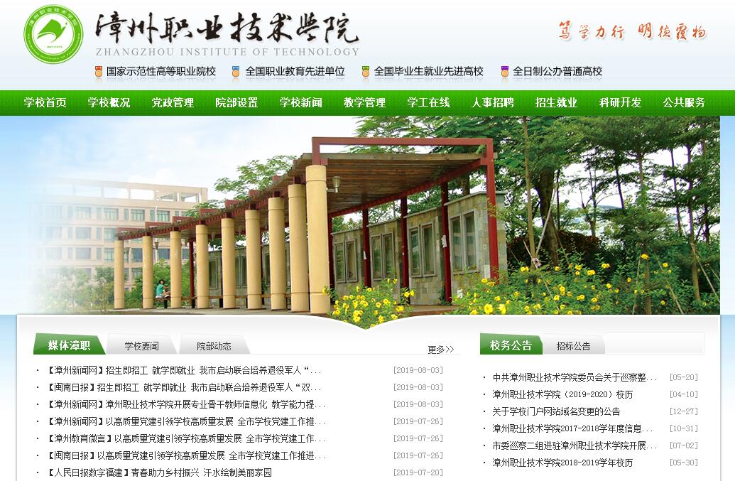 漳州職業(yè)技術(shù)學(xué)院前身為創(chuàng)辦于1984年的漳州職業(yè)大學(xué),2002年4月,經(jīng)福建省人民政府批準(zhǔn),更名為漳州職業(yè)技術(shù)學(xué)院。學(xué)校是漳州市人民政府舉辦的一所全日制公辦普通高職院校,現(xiàn)有專兼職教師900多人,其中高級(jí)職稱教師230多人,“雙師”素質(zhì)教師640多人;全日制在校生近1.3萬(wàn)人。設(shè)置有10個(gè)二級(jí)學(xué)院和公共教學(xué)部、思想政治理論課教研部、成人教育部等教學(xué)單位;開(kāi)設(shè)了應(yīng)用電子技術(shù)、計(jì)算機(jī)網(wǎng)絡(luò)技術(shù)、食品加工技術(shù)、物流管理、數(shù)控技術(shù)、建筑工程技術(shù)等50個(gè)以工科為主,文、經(jīng)、管應(yīng)用科類協(xié)調(diào)發(fā)展,緊密對(duì)接區(qū)域經(jīng)濟(jì)發(fā)展的高職專業(yè)。學(xué)校現(xiàn)有國(guó)家示范性重點(diǎn)專業(yè)6個(gè),國(guó)家提升專業(yè)服務(wù)能力建設(shè)專業(yè)2個(gè),省級(jí)精品專業(yè)7個(gè),省級(jí)示范專業(yè)12個(gè),省級(jí)高校創(chuàng)新創(chuàng)業(yè)教育改革試點(diǎn)專業(yè)3個(gè),福建省高職院校專業(yè)建設(shè)質(zhì)量評(píng)價(jià)位列全省第一的專業(yè)18個(gè);高等職業(yè)學(xué)校骨干教師國(guó)家級(jí)培訓(xùn)基地1個(gè);全國(guó)高校職業(yè)發(fā)展與就業(yè)指導(dǎo)示范課程1門,省級(jí)精品課程29門,省級(jí)高校創(chuàng)新創(chuàng)業(yè)教育改革精品資源共享課程4門,“十二五”職業(yè)教育國(guó)家規(guī)劃教材8本,特色工作頁(yè)19本;省級(jí)高職教學(xué)改革綜合試驗(yàn)項(xiàng)目2個(gè),省級(jí)教育改革試點(diǎn)項(xiàng)目6個(gè),省級(jí)高校教學(xué)改革研究項(xiàng)目5個(gè);國(guó)家級(jí)現(xiàn)代學(xué)徒制試點(diǎn)1個(gè),省級(jí)現(xiàn)代學(xué)徒制項(xiàng)目7個(gè),省級(jí)“二元制”改革專業(yè)2個(gè);省級(jí)教學(xué)團(tuán)隊(duì)7個(gè),省級(jí)教學(xué)名師10名,省級(jí)專業(yè)帶頭人16名;國(guó)家級(jí)教學(xué)成果獎(jiǎng)二等獎(jiǎng)1項(xiàng),省級(jí)教學(xué)成果獎(jiǎng)特等獎(jiǎng)2項(xiàng)、一等獎(jiǎng)3項(xiàng)、二等獎(jiǎng)6項(xiàng)。2004年以來(lái)學(xué)校學(xué)生獲全國(guó)數(shù)控技能大賽等國(guó)家級(jí)職業(yè)技能競(jìng)賽三等獎(jiǎng)及以上達(dá)220多項(xiàng),獲省級(jí)職業(yè)技能競(jìng)賽三等獎(jiǎng)及以上達(dá)500多項(xiàng)。近年來(lái),學(xué)校先后承辦了2個(gè)“國(guó)賽”項(xiàng)目、50多個(gè)“省賽”項(xiàng)目,獲得“國(guó)賽”一等獎(jiǎng)8個(gè),二等獎(jiǎng)27個(gè),三等獎(jiǎng)43個(gè);“省賽”一等獎(jiǎng)114個(gè),二等獎(jiǎng)80個(gè),三等獎(jiǎng)47個(gè)。中央財(cái)政支持的實(shí)訓(xùn)基地7個(gè),省級(jí)財(cái)政支持的實(shí)訓(xùn)基地6個(gè),構(gòu)建了基于工作過(guò)程系統(tǒng)化的課程體系,建有電子、食品加工、數(shù)控、物流、計(jì)算機(jī)網(wǎng)絡(luò)技術(shù)、汽車等生產(chǎn)性實(shí)訓(xùn)基地及校外實(shí)習(xí)基地410多個(gè),配置紙質(zhì)圖書93.4萬(wàn)冊(cè),教學(xué)儀器設(shè)備總值1.4億元。擁有福建省規(guī)模最大、鑒定工種最全、鑒定人數(shù)最多,并具有高級(jí)技師鑒定資格的國(guó)家職業(yè)技能鑒定站,鑒定項(xiàng)目和鑒定工種涵蓋了學(xué)校所有專業(yè)領(lǐng)域。學(xué)校不斷拓寬辦學(xué)渠道,與加拿大、德國(guó)、新加坡等國(guó)家及臺(tái)灣地區(qū)有關(guān)技職院校和行業(yè)協(xié)會(huì),在聯(lián)合辦學(xué)、師資培訓(xùn)、先進(jìn)教育理念、管理理念、課程及職業(yè)資格標(biāo)準(zhǔn)引進(jìn)等方面開(kāi)展了實(shí)質(zhì)性合作,并率先在全省建立戴姆勒奔馳鑄星教育項(xiàng)目,進(jìn)一步提升辦學(xué)能力。在漳州市政府的重視牽頭下,學(xué)校以內(nèi)涵建設(shè)為主線,積極探索校企深度合作,與華為技術(shù)有限公司、福建龍溪軸承(集團(tuán))股份有限公司、福建萬(wàn)利達(dá)集團(tuán)、福建紫山集團(tuán)股份有限公司等200多家知名企業(yè)合作,成立了由政府、企業(yè)與學(xué)校三方參與的“漳州市校企合作委員會(huì)”,大力推行訂單培養(yǎng)和工學(xué)結(jié)合,先后在19個(gè)專業(yè)實(shí)施訂單培養(yǎng),在每個(gè)專業(yè)實(shí)行“工學(xué)交替”人才培養(yǎng)。迄今已為社會(huì)輸送了5萬(wàn)多名適應(yīng)生產(chǎn)、建設(shè)、管理、服務(wù)第一線需要的“下得去,留得住,用得上、干得好”的技術(shù)技能人才,為區(qū)域經(jīng)濟(jì)建設(shè)做出了積極的貢獻(xiàn),人才培養(yǎng)質(zhì)量受到用人單位和社會(huì)的普遍歡迎。學(xué)校辦學(xué)成效受到上級(jí)領(lǐng)導(dǎo)部門和社會(huì)各界的充分肯定和贊揚(yáng)。2002年獲福建省職業(yè)教育先進(jìn)單位;2003年被確定為全國(guó)承擔(dān)數(shù)控技術(shù)應(yīng)用專業(yè)技能型緊缺人才培養(yǎng)培訓(xùn)工作的90所高職院校之一;2004年成功通過(guò)高職高專人才培養(yǎng)工作水平優(yōu)秀評(píng)估,2015年通過(guò)高等職業(yè)院校人才培養(yǎng)工作第二輪評(píng)估;2005年獲全國(guó)職業(yè)教育先進(jìn)