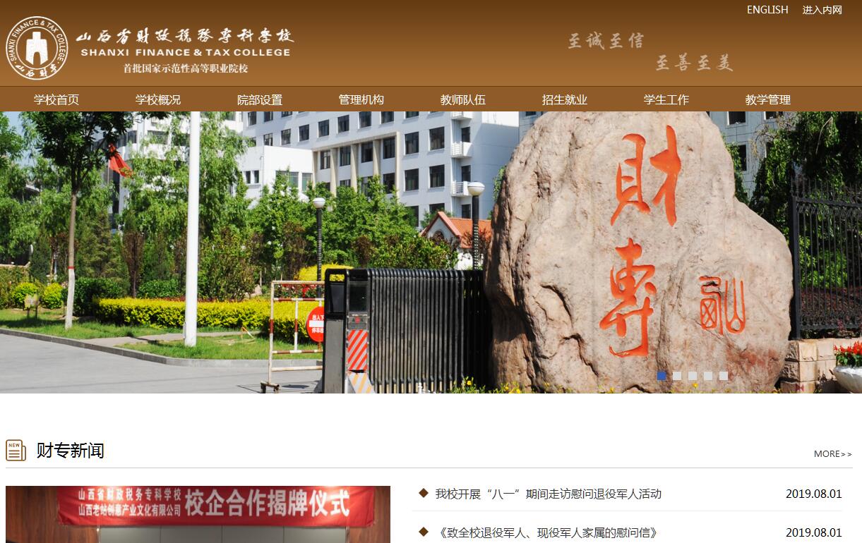 山西省財政稅務(wù)專科學(xué)校坐落在山西省省會太原市,是一所培養(yǎng)高等財經(jīng)應(yīng)用型人才的全日制高等??茖W(xué)校,是首批國家示范性高等職業(yè)院校。學(xué)校前身是1963年成立的山西會計學(xué)校,1985年在其基礎(chǔ)上建立了山西省財政稅務(wù)??茖W(xué)校,隸屬于山西省財政廳。2002年經(jīng)山西省人民政府批準,學(xué)校與太原理工大學(xué)聯(lián)合舉辦太原理工大學(xué)財經(jīng)學(xué)院。學(xué)校秉承“至誠至信,至善至美”的校訓(xùn),堅持“創(chuàng)新驅(qū)動、深耕改革、產(chǎn)教融合、強化特色、開放辦學(xué)、創(chuàng)建名校”的辦學(xué)思路,遵循“能力本位,工學(xué)結(jié)合,校企合作,持續(xù)發(fā)展”的高等財經(jīng)類職業(yè)教育理念,全面提升內(nèi)在品質(zhì)和社會影響,不斷拓展發(fā)展空間,不斷增強發(fā)展后勁,實現(xiàn)了學(xué)校全面可持續(xù)發(fā)展。學(xué)?,F(xiàn)面向全國8個省份招生,全日制在校生5822人,函授生239人。建校以來,已向社會輸送全日制畢業(yè)生55000余人,培養(yǎng)在職干部14萬人次。學(xué)校設(shè)財稅學(xué)院、會計學(xué)院、金融學(xué)院、信息學(xué)院、商學(xué)院、旅游學(xué)院、馬克思主義學(xué)院、公共課教學(xué)部、外語教學(xué)部、體育教學(xué)部、繼續(xù)教育學(xué)院等11個教學(xué)機構(gòu),開設(shè)會計、稅務(wù)、證券與期貨、市場營銷、計算機應(yīng)用技術(shù)、旅游管理等23個??茖I(yè),會計學(xué)、市場營銷、國際經(jīng)濟與貿(mào)易、計算機應(yīng)用技術(shù)、金融學(xué)等5個本科專業(yè)。學(xué)校擁有國家示范校重點建設(shè)專業(yè)6個、國家級教學(xué)改革試點專業(yè)2個、中央財政重點支持建設(shè)專業(yè)2個、省級教學(xué)改革試點專業(yè)4個;國家級精品課程4門,國家級精品資源共享課3門,省級精品課程18門,全國經(jīng)濟類教指委重點建設(shè)課程4門,校級精品課程39門。學(xué)校位于美麗的汾河西畔,迎澤西大街以南,交通便利,條件優(yōu)越,占地面積92932.7平方米,建筑面積128328平方米,館藏紙質(zhì)圖書文獻47.44萬冊(套),教學(xué)用計算機1900臺,教學(xué)儀器設(shè)備值4251.85萬元,網(wǎng)絡(luò)計算機教學(xué)中心、語音實驗室、多媒體教室和校園網(wǎng)等教學(xué)設(shè)施國內(nèi)一流。建有會計多功能綜合模擬實訓(xùn)室、市場營銷綜合實訓(xùn)室、證券金融綜合實訓(xùn)室、稅務(wù)綜合實訓(xùn)室等38個校內(nèi)實訓(xùn)基地,8個國家級職業(yè)技能鑒定機構(gòu),200余個校外實習實訓(xùn)基地和100余個校外產(chǎn)學(xué)合作基地。學(xué)校師資力量雄厚,學(xué)術(shù)氛圍濃郁,現(xiàn)有教職員工403人,其中教授29人,副教授98人,國務(wù)院政府特殊津貼專家1名,“國家高層次人才特殊支持計劃”教學(xué)名師1名,山西省教學(xué)名師1名、山西省青年教育專家5名、山西省“雙師型”教學(xué)名師10名、山西省“雙師型”優(yōu)秀教師17名、山西省青年教育(教學(xué))專家9名,省級青年教師基本功競賽獲獎?wù)?4名。學(xué)校擁有國家級優(yōu)秀教學(xué)團隊1個,省級優(yōu)秀教學(xué)團隊2個;“雙師”素質(zhì)教師133人,占專任教師的70.4%;聘請行業(yè)企業(yè)兼職教師達100余人,建成了一支基礎(chǔ)理論扎實、雙師結(jié)構(gòu)合理、專業(yè)技能精湛,師德高尚、愛崗敬業(yè)、勇于創(chuàng)新的專兼職教師隊伍。學(xué)??蒲谐晒S碩,教師發(fā)表學(xué)術(shù)論文、主編部級核心教材、主持省級以上課題等均位列全省高職院校前茅,曾榮獲山西省百部(篇)工程一等獎4項、山西省教學(xué)成果特等獎2項、山西省教學(xué)成果一等獎8項、山西省科技進步二等獎1項等?!陡呗殨媽I(yè)國家級教學(xué)資源庫的研發(fā)與應(yīng)用》項目榮獲國家教學(xué)成果一等獎,填補了山西省國家級教學(xué)成果一等獎的空白。學(xué)校先后被評為全國財政教育先進單位、國家級依法治校示范校、全國社會實踐先進單位、山西省先進基層黨組織、山西省五一勞動獎狀、山西省模范單位、山西省文明單位、山西省人才培養(yǎng)工作優(yōu)秀單位、山西省高校就業(yè)工作先進單位等。學(xué)校被推選為全國財政職業(yè)教育教學(xué)指導(dǎo)委員會副主任委員單位、全國高職高專校長聯(lián)席會議主席團單位、全國高等財經(jīng)職業(yè)教育協(xié)作委員會和發(fā)展研究中心主任委員單位、中國高等教育學(xué)會職業(yè)技術(shù)教育分會常務(wù)理事單位、中國職業(yè)技術(shù)教育學(xué)會財經(jīng)職業(yè)教育專業(yè)委員會理事長單位、中國教育會計學(xué)會高職院校分會會長單位等。學(xué)校被確定為財政部干部定點培訓(xùn)基地、全國財會類師資培訓(xùn)基地、山西省國稅系統(tǒng)干部定點培訓(xùn)基地、山西省地稅系統(tǒng)干部定點培訓(xùn)基地等。使命呼喚擔當,使命引領(lǐng)未來。我們一定要堅持以習近平新時代中國特色社會主義思想為指引,牢固樹立強烈的責任意識和使命意識,全力開啟新時代山西財專教育事業(yè)發(fā)展新征程,全面推進高質(zhì)量高水平的改革型創(chuàng)新型開放型財經(jīng)類高職名校建設(shè)!