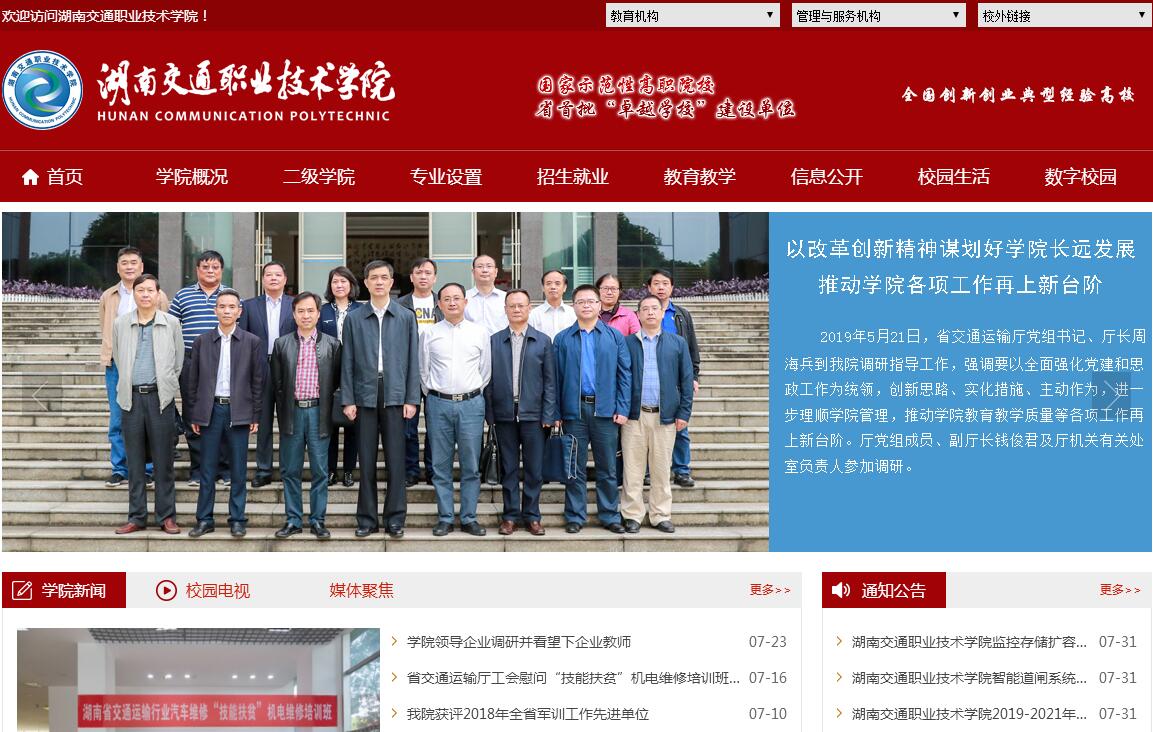 湖南交通職業(yè)技術(shù)學院創(chuàng)建于1956年,前身為湖南省交通學校。1999年湖南省交通學校與湖南省交通干部學校合并,2001年經(jīng)湖南省人民政府批準成立湖南交通職業(yè)技術(shù)學院,相繼并入了湖南公路技工學校和湖南交通高級技工學校,是湖南省交通運輸廳直屬的國家示范性高等職業(yè)院校,是2015年湖南省首批卓越院校立項建設單位。建校60年來,學院始終堅持“立足交通行業(yè),面向市場經(jīng)濟,服務富民強省”的辦學定位;始終堅持“厚德樹人、技能立業(yè)、特色興?!钡霓k學理念;始終堅持“好品德、好技能、好使用、好形象”的育人標準,根植交通特色發(fā)展,轉(zhuǎn)變思路內(nèi)涵發(fā)展,技術(shù)創(chuàng)新引領發(fā)展,服務社會品牌發(fā)展,以交通特色專業(yè)群建設為核心,以師資隊伍建設、治理能力建設為重要支撐,整合各方資源,激發(fā)辦學活力,推動產(chǎn)教深度融合,實現(xiàn)校企協(xié)同創(chuàng)新,提升服務交通和湖南經(jīng)濟發(fā)展的能力和水平,不斷追求卓越,打造職教品牌,為交通運輸事業(yè)發(fā)展和區(qū)域經(jīng)濟建設培養(yǎng)了數(shù)以萬計的高端技術(shù)技能人才。先后榮獲全國普通高校畢業(yè)生就業(yè)工作先進單位、全國畢業(yè)生就業(yè)工作典型經(jīng)驗高校、全國創(chuàng)新創(chuàng)業(yè)典型經(jīng)驗高校、全國交通職業(yè)教育先進集體、湖南省文明標兵單位、湖南省普通高校畢業(yè)生就業(yè)一把手工程優(yōu)秀單位、湖南省職業(yè)教育先進單位等榮譽稱號。學院現(xiàn)占地728畝,建筑面積29.49萬㎡,各種教學儀器設備總值9738萬元,館藏圖書84.8萬冊;全日制在籍學生1.2萬余人;現(xiàn)有專任教師592人,其中高級職稱248人,研究生學歷和碩士以上學位273人;擁有全國模范教師1名,全國交通技術(shù)能手3名,省部級專業(yè)帶頭人15名、省級學科帶頭人2名、省級青年骨干教師12名?!半p師型”教師占專任專業(yè)課教師的比例達到93%。學院對接“交通基礎設施建設-交通運載工具運用-智能交通平臺-交通運輸服務”交通產(chǎn)業(yè)鏈,按照“專業(yè)基礎相通、技術(shù)領域相近、職業(yè)崗位相關、教學資源共享”的原則,構(gòu)建交通土建技術(shù)、汽車技術(shù)服務、智能交通技術(shù)、交通運輸服務四個交通特色專業(yè)群,構(gòu)建工程機械運用技術(shù)和建筑工程技術(shù)兩個其它特色專業(yè)群,未來還將適時建設水運工程專業(yè)群。學院現(xiàn)設28個專業(yè),所有專業(yè)均納入到專業(yè)群中。打造了4個中央財政重點支持建設專業(yè)、6個省級精品建設專業(yè)以及2個省示范性特色專業(yè)、2個省特色專業(yè),擁有2個中央財政支持的實訓基地、4個省級實訓基地。學院根據(jù)不同專業(yè)大類的人才培養(yǎng)特點,采用不同人才培養(yǎng)模式:創(chuàng)新了“秋去春回,工學交替”的培養(yǎng)模式;實施了“培養(yǎng)計劃共同協(xié)商、教育資源共同享用、教學質(zhì)量共同監(jiān)控、學生管理共同參與、學生就業(yè)共同跟蹤”的“五共”培養(yǎng)模式,并與德國奧迪、寶馬、戴姆勒、保時捷及大眾品牌合作,成功引入企業(yè)培訓課程和德國“雙元制”教學法;形成了以職業(yè)崗位作業(yè)流程為導向的模塊化課程結(jié)構(gòu),構(gòu)建了集素質(zhì)培養(yǎng)、理論知識、專業(yè)能力、工作實踐、職業(yè)培訓為一體的工學結(jié)合課程體系。推行了行業(yè)特色鮮明的“系企一體”專業(yè)建設模式,分別開辦了眾智工程咨詢有限公司、金順公路工程監(jiān)理公司、湖南交技駕校、長沙慧仁信息技術(shù)有限公司等7家校辦企業(yè),實現(xiàn)了課程建設“系企一體”,教學團隊“系企一體”,實訓平臺“系企一體”。學院先后與三一重工、中聯(lián)重科、豐田、東風日產(chǎn)、湖南路橋等國內(nèi)外近200家大中型品牌企業(yè)聯(lián)合辦學。訂單學生覆蓋大部分專業(yè),占學生總數(shù)的1/2之多,實現(xiàn)了學生畢業(yè)有工作、企業(yè)發(fā)展有人才、學院辦學有生源。近三年畢業(yè)生就業(yè)率為92%以上,“訂單”專業(yè)就業(yè)率100%。出口暢才能入口旺。近年來,學院文理科招生投檔線均位居全省高職院校前列,多次被湖南省教育考試院評為“高職高專招生工作”先進單位。學院融湖湘文化、交通文化、企業(yè)文化等多種文化為一體,形成了“好品德、好技能、好使用、好形象”的四好文化。在新形勢下,學院不斷提升“四好”文化內(nèi)涵:建設一個“專家型、創(chuàng)新型、和諧型”的四好領導班子;打造一支既拿教鞭又拿扳手的四好雙師隊伍;培養(yǎng)“下得去、留得住、發(fā)展好”的“四好”技能人才。始終堅持以“好品德”造就高尚情操;以“好技能”推進教學改革;以“好使用”輸送滿意人才;以“好形象”樹立學校品牌。不斷提升學生就業(yè)能力,促使學生在就業(yè)、敬業(yè)、樂業(yè)、創(chuàng)業(yè)中實現(xiàn)人生價值。學院堅持學歷教育與職業(yè)培訓并舉,積極履行社會服務功能。學院是全國交通干部培訓基地、湖南交通行業(yè)職業(yè)培訓基地、全國交通教指委高職高專師資培訓基地、湖南省退役士兵職業(yè)教育和技能培訓基地、交通行業(yè)職業(yè)技能鑒定和技