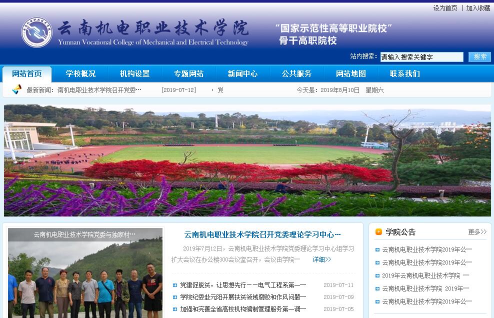 云南機電職業(yè)技術學院是2004年7月經(jīng)云南省政府批準,在原云南省機械工業(yè)學校(國家重點中專)和云南省機械技工學校(省級重點技校)的基礎上組建的,以培養(yǎng)制造業(yè)高技能人才為主的全日制高等職業(yè)院校。辦學歷史可追溯到創(chuàng)建于1910年的省立工業(yè)學校,在歷史變遷中雖幾經(jīng)更名,但一直秉承職業(yè)教育辦學宗旨,學院是“云南省省級示范性高等職業(yè)院?!薄ⅰ皣沂痉豆歉筛叩嚷殬I(yè)院?!保墙逃康诙F(xiàn)代學徒制試點立項單位,云南省優(yōu)質高職院校立項單位。學院位于云南省昆明市盤龍區(qū)茨壩,曾經(jīng)是昆明制造業(yè)聚居地,環(huán)境幽雅,交通便利,現(xiàn)有昆明及東川兩個校區(qū)。教職工人數(shù)400余人,全日制在校學生9000余人,占地面積623畝,教學儀器設備價值11681.66萬元。學院緊密結合云南省產(chǎn)業(yè)發(fā)展規(guī)劃和先進裝備制造發(fā)展戰(zhàn)略目標,設立5系2部共計41個高職專業(yè),其中,數(shù)控技術專業(yè)、電氣自動化技術專業(yè)、焊接技術及自動化專業(yè)、產(chǎn)品造型設計專業(yè)、汽車檢測與維修技術專業(yè)為中央財政支持的重點建設專業(yè);機電一體化技術、汽車電子技術、建筑電氣工程技術、市場營銷為省級重點專業(yè);數(shù)控技術專業(yè)、電氣自動化技術專業(yè)、焊接技術及自動化專業(yè)為省級特色專業(yè)。學院緊跟云南社會發(fā)展需要,新增飛機機電維修、飛機部件修理、新能源汽車技術、航空電子電氣技術、動車組檢修、智能控制技術、大數(shù)據(jù)技術與應用等專業(yè)。學院擁有一支優(yōu)秀的“雙師型”教師隊伍,有全國技術能手1人,全國機械工業(yè)技術能手3人,全國優(yōu)秀教師1人,全國機械職業(yè)教育教學先進工作者1人,全國黃炎培杰出校長1人,全國黃炎培杰出教師1人;云南省技術狀元4人,云南省技術能手3人,云南省技術創(chuàng)新人才1人,云南省有突出貢獻優(yōu)秀專業(yè)技術人才2人,云南省政府特殊津貼獲得者1人,云南省黃炎培杰出校長1人,云南省黃炎培杰出教師2人,云南省教學名師5人,云南省優(yōu)秀教育工作者1人,云南省教育教學功勛獎1人,云南省“五一”勞動獎章1人;昆明市名匠2人,昆明市有突出貢獻高技能人才2人,昆明市優(yōu)秀技術能手2人;云南省名師工作室3個,云南省優(yōu)秀教學團隊4個,昆明市名匠工作室2個。學院辦學特色突出,專業(yè)建設和行業(yè)發(fā)展緊密結合,人才培養(yǎng)和企業(yè)緊密結合,堅持以服務為宗旨、以就業(yè)為導向,走產(chǎn)教融合、校企合作的辦學之路,推行學歷證書和職業(yè)資格證書“雙證制”及“多證制”培養(yǎng)機制,強化學生的職業(yè)技能培養(yǎng);以“立德樹人”為根本,重視學生思想政治工作,倡導“開物成務、明德至善”的校風,注重學生的養(yǎng)成教育,學生以綜合素質高、動手能力強廣受用人單位好評。畢業(yè)生就業(yè)率連續(xù)5年保持在97%以上,連續(xù)多年被云南省教育廳授予“就業(yè)工作先進集體”。2012年榮獲全省十佳“就業(yè)典型”高校榮譽稱號,2015年評為“高校畢業(yè)生就業(yè)創(chuàng)業(yè)工作目標責任考核一等獎”和“高校畢業(yè)生校園招聘活動優(yōu)秀組織獎”。學院積極響應國家“一帶一路”倡議,開展國際交流與合作,派遣學生到美國、日本、新加坡、韓國等國家留學、就業(yè),同時面向東南亞國家招收留學生。學院注重學生技能培養(yǎng)和服務社會。構建了集實習、培訓、鑒定、生產(chǎn)、新技術推廣應用、技術研發(fā)為一體的實習實訓綜合體和完備的公共服務平臺。目前有校內實訓基地42個,其中省級示范性實訓基地6個,8個“校中廠”,實踐教學工位數(shù)5851個;簽訂協(xié)議的校外實訓基地93個,其中省級示范性實訓基地3個。經(jīng)過多年發(fā)展,逐步構建了“資源共享、內外銜接”的校內基礎教學實習、校中廠生產(chǎn)綜合實訓、校外頂崗“準職業(yè)人”實習的三級實訓體系。學院是云南省高等學校(制造類)教師教學發(fā)展中心、云南省數(shù)控技術人才培養(yǎng)模式創(chuàng)新實驗區(qū)、云南省“數(shù)控加工技術應用研究”工程中心、機電加工云南省科學普及教育基地,設有國家第195、220職業(yè)技能鑒定所,設有CAXA認證培訓站盤龍區(qū)再就業(yè)培訓站、全國計算機應用技術考試(NIT)培訓基地、全國計算機信息高新技術考試站、ATA特許培訓站、全國計算機等級考試點(省屬第41考點)、全國英語應用能力考試站、國家機械工程師資格考試云南省中心考點,歐特克授權認證考試中心,每年為社會培訓鑒定上萬人次。云南機電職業(yè)技術學院以“責任”為指南,樹“崇實圖新、自強不息”之精神;立“克盡厥職、篤行技精”之校訓;承“開物成務、明德至善”之風尚,致力于為云南經(jīng)濟社會發(fā)展培養(yǎng)高技能人才,享有良好社會聲譽。先后被授予“云南省文明學?!薄ⅰ包S炎培優(yōu)秀學?!?、“云南省高職教育優(yōu)秀學?!?、“昆明市平安建設單位”等榮譽稱號,被《云南日報》譽為“云南省職業(yè)教育的排頭兵”。教師和學生在云南省組織的全省技能大賽中多次榮獲榜首并代表云南省參加全國技能大賽。經(jīng)過多年的努力,學院已成為云南機電類高技能人