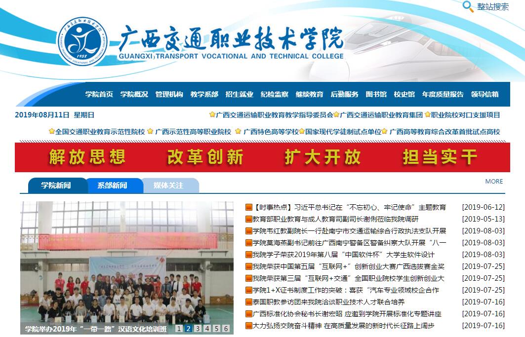 廣西交通職業(yè)技術(shù)學院前身為創(chuàng)建于1958年的國家重點中專廣西交通學校,隸屬于廣西壯族自治區(qū)交通運輸廳。2002年經(jīng)自治區(qū)人民政府批準,升格為公辦全日制普通高等職業(yè)院校,是廣西唯一一所培養(yǎng)交通運輸專門人才的高等學校,榮獲教育部高職高專人才培養(yǎng)工作水平評估優(yōu)秀院校、全國交通職業(yè)教育示范性院校、國家現(xiàn)代學徒制試點單位、廣西高等教育綜合改革首批試點高校、廣西示范性高等職業(yè)院校、廣西首批特色高校建設單位、廣西高端應用型本科人才聯(lián)合培養(yǎng)試點單位、廣西唯一軍隊士官直招定點培養(yǎng)院校。學院占地面積1200多畝,分園湖和四塘兩個校區(qū)?,F(xiàn)有各類在校學生13000余人,學院設有路橋工程系、汽車工程系、管理工程系、信息工程系、建筑工程系、航海工程系,以及基礎教學部、思想政治理論課教學部等教學部門,開設有道路橋梁工程技術(shù)、汽車檢測與維修技術(shù)、物流管理、船舶工程技術(shù)等55個高職專業(yè)和方向。學院積極建設交通特色鮮明的品牌專業(yè),其中自治區(qū)級專業(yè)教學改革與建設試點專業(yè)2個、廣西高校優(yōu)質(zhì)專業(yè)7個;交通土建類專業(yè)和物流管理類專業(yè)榮獲“十二五”交通運輸部、財政部交通運輸教育與培訓重點建設項目;道路橋梁工程技術(shù)等9個專業(yè)分別榮獲廣西高等學校特色專業(yè)及課程一體化特色、優(yōu)勢、急需專業(yè)建設項目;港口工程技術(shù)等2個專業(yè)獲教育部、財政部關(guān)于支持高等職業(yè)學校提升專業(yè)服務產(chǎn)業(yè)發(fā)展能力建設項目。同時,學院擁有中央財政支持建設的國家級示范性實訓基地4個,交通運輸部示范性實訓基地2個,自治區(qū)級示范性實訓基地8個,校外實習、實訓基地200多個。學院還建設有2門國家級精品課程、15門自治區(qū)級精品課程。學院打造了一支專兼結(jié)合的師資隊伍,擁有專任教師556人,企業(yè)兼職教師112人?,F(xiàn)有國家級教學團隊1個、自治區(qū)級教學團隊4個、廣西創(chuàng)新人才培養(yǎng)教學團隊2個、國家級教學名師1人、交通運輸部吳?!袢A優(yōu)秀教師3人、全國交通職業(yè)教育專業(yè)帶頭人3人、廣西優(yōu)秀專家1人、廣西高校教學名師3人、“八桂名師”1人、廣西職教先進個人2人、“知識型職工標兵”2人、“廣西高校優(yōu)秀人才資助計劃”教師7人、交通運輸青年科技英才1人。學院積極推進校企合作、工學結(jié)合,大力提高學生職業(yè)技能,在全區(qū)率先導入豐田汽車公司T-TEP(TOYOTA TECHNICAL EDUCATION PROGRAM)項目,成為廣西第一家成立豐田T-TEP學院的院校。積極探索“訂單式”人才培養(yǎng)模式,與廣西八桂工程監(jiān)理咨詢有限公司、一汽豐田公司、小松工程機械廣西公司、廣西玉柴物流集團有限公司、廣西潤建通信發(fā)展有限公司等知名企業(yè)合作開辦企業(yè)冠名的“八桂班”、“豐田班”、“小松班”、“玉柴班”、“潤建班”等校企合作訂單班,進一步促進人才培養(yǎng)與行業(yè)、企業(yè)實際需求的有效銜接,切實加強學生技能素質(zhì)的培養(yǎng),提高人才培養(yǎng)質(zhì)量。2015年獲批成為全國首批現(xiàn)代學徒制試點單位,2016年獲批成立交通運輸職業(yè)教育教學指導委員會。同時,學院積極開展對外交流,先后與加拿大、越南、英國、臺灣等國家和地區(qū)開展了合作辦學項目,吸收國外先進的教學、管理理念和辦學經(jīng)驗,不斷拓寬人才培養(yǎng)的國際視野,2015年獲批成為廣西職業(yè)教育國際合作與交流改革試點院校。學院堅持立足交通,服務廣西,面向東南亞,主動為廣西公路建設、公路養(yǎng)護、汽車維修、汽車營銷、交通網(wǎng)絡技術(shù)、交通運輸、現(xiàn)代物流等生產(chǎn)、建設、管理、服務第一線培養(yǎng)專業(yè)知識扎實,實踐能力強,具有良好職業(yè)道德的下得去、留得住、用得上、干得好的高技能應用型人才。學院以準確的辦學定位、明確的辦學方向、符合市場需求的教學模式,主動贏得了就業(yè)市場。近年來,學院畢業(yè)生平均就業(yè)率達94%,學院自2003年以來連續(xù)14年被自治區(qū)教育廳評為廣西高校畢業(yè)生就業(yè)工作先進集體。60年風雨兼程,學院逐漸凝練形成“依托交通行業(yè)優(yōu)勢,建設交通特色專業(yè),突出職業(yè)能力培養(yǎng),打造交通人才搖籃”的辦學特色,成為了廣西交通運輸高技能人才培養(yǎng)的重要基地。學院緊緊抓住北部灣經(jīng)濟開放開發(fā)和廣西交通大建設大改革大發(fā)展的歷史機遇,圍繞“穩(wěn)定規(guī)模、突出特色、增強活力、提高效益”的發(fā)展思路,大力實施質(zhì)量立校、特色強校戰(zhàn)略,提高教育教學質(zhì)量為核心,實施以人為中心的內(nèi)涵建設,提高教師素質(zhì)能力、提高學生思想素質(zhì)和職業(yè)技能,努力將學院建設成為集人才培養(yǎng)、科技研發(fā)、生產(chǎn)檢測、技術(shù)培訓、傳承交通文化于一體的,服務廣西經(jīng)濟社會發(fā)展、在人才培養(yǎng)方面形成特色的應用型高等學校,為實現(xiàn)廣西“三大定位”新使命作出新的更大貢獻。