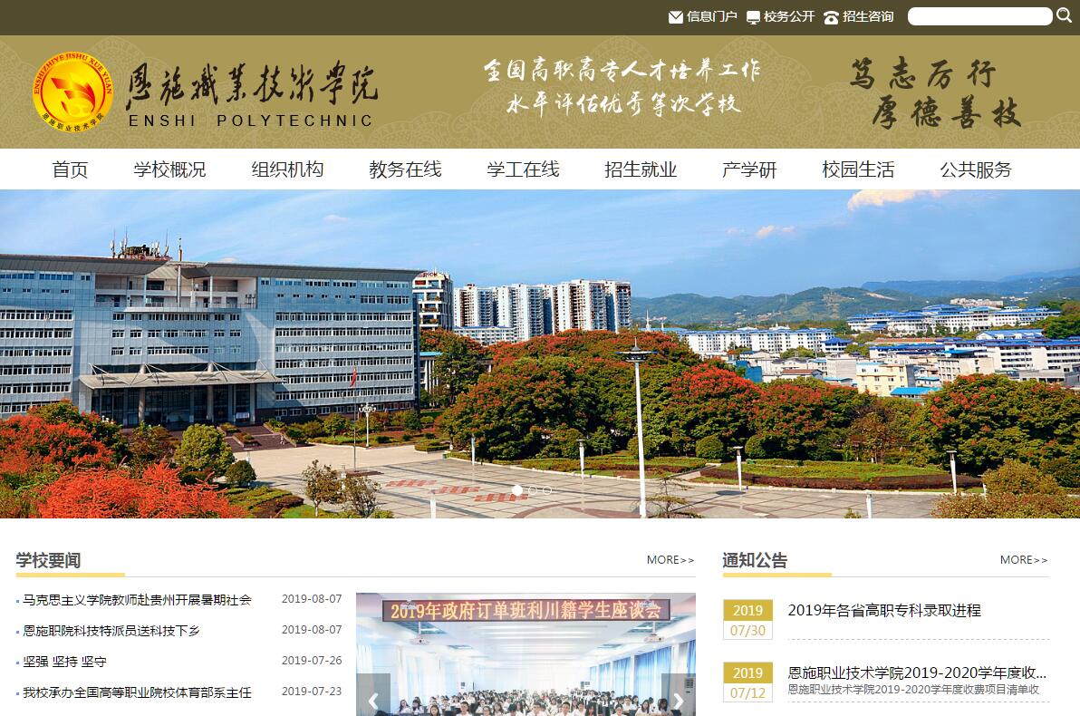恩施職業(yè)技術(shù)學(xué)院于2000年8月經(jīng)湖北省人民政府批準(zhǔn),由原恩施教育學(xué)院、恩施財(cái)校、恩施農(nóng)校、恩施工校、恩施林校和恩施供銷學(xué)校合并組建而成,而后,州機(jī)電工程學(xué)校、州民族體校、州藝術(shù)學(xué)校、州交通技工學(xué)校相繼并入。學(xué)院的辦學(xué)歷史可追溯到1937年,是培養(yǎng)黨政干部的搖籃、培養(yǎng)企業(yè)家的搖籃、培養(yǎng)工程師的搖籃。學(xué)院所在地——湖北恩施,位于神奇的北緯30°,有“世界硒都”“中國硒谷”之稱,是武陵山區(qū)交通樞紐,航班直達(dá)國內(nèi)主要城市,41對(duì)動(dòng)車開往全國各地,境內(nèi)通車高速公路和鐵路8條,在建、規(guī)劃高速公路和鐵路14條。學(xué)院是教育部高職高專人才培養(yǎng)優(yōu)秀學(xué)校、湖北省示范高職院校、中國少數(shù)民族教育學(xué)會(huì)常務(wù)理事單位,榮獲“國際硒茶人才搖籃” 殊榮。學(xué)院占地近千畝,建筑面積30萬平方米。擁有“數(shù)控技術(shù)”“計(jì)算機(jī)及應(yīng)用”“生物技術(shù)”“建筑工程技術(shù)”四個(gè)國家職業(yè)教育實(shí)訓(xùn)基地和“旅游管理”“畜牧獸醫(yī)”“生物制藥”三個(gè)省級(jí)示范性實(shí)訓(xùn)基地,教學(xué)儀器設(shè)備總值過億元。學(xué)院現(xiàn)有教職工1000余人,聘請(qǐng)國務(wù)院參事劉志仁、中國科學(xué)院院士楊叔子、中國工程院院士陳煥春等近200位知名專家、學(xué)者、企業(yè)家擔(dān)任客座教授;教師中具有碩士以上學(xué)位127人(其中博士6人),教授、副教授180人,享受國務(wù)院津貼專家1人、湖北名師1人、全國農(nóng)業(yè)職教名師1人。聘有8名楚天技能名師。學(xué)院下設(shè)經(jīng)濟(jì)管理學(xué)院、機(jī)電工程學(xué)院、信息工程學(xué)院、生物工程學(xué)院、建筑工程學(xué)院、人文教育學(xué)院、旅游管理學(xué)院、體育學(xué)院等8個(gè)二級(jí)學(xué)院和馬克思主義學(xué)院、繼續(xù)教育學(xué)院、公共課部、中等職業(yè)教育部?,F(xiàn)開設(shè)有旅游管理(國家級(jí)專業(yè)示范點(diǎn)、省級(jí)品牌專業(yè))、畜牧獸醫(yī)(省級(jí)品牌專業(yè))、會(huì)計(jì)(省級(jí)特色專業(yè))、園林技術(shù)(省級(jí)特色專業(yè))、建筑工程技術(shù)(省級(jí)特色專業(yè))、機(jī)電一體化技術(shù)(省級(jí)特色專業(yè))、小學(xué)教育、學(xué)前教育、計(jì)算機(jī)應(yīng)用、數(shù)控技術(shù)、藥品質(zhì)量與安全等36個(gè)專業(yè),面向浙江、海南、四川、湖南、安徽等25個(gè)?。ㄊ小⒆灾螀^(qū))招生,在校學(xué)生12000多人。學(xué)院以習(xí)近平新時(shí)代中國特色社會(huì)主義思想為指導(dǎo),以創(chuàng)建中國特色高水平高職院校和專業(yè)為目標(biāo),緊扣全面推進(jìn)高職教育創(chuàng)新發(fā)展三年行動(dòng)計(jì)劃和教學(xué)工作診斷與改進(jìn)兩個(gè)抓手,以立德樹人為根本承擔(dān)起為經(jīng)濟(jì)社會(huì)發(fā)展提供人才支撐、以科研為引領(lǐng)承擔(dān)起州域經(jīng)濟(jì)社會(huì)發(fā)展的智力支撐、以非遺基地為載體承擔(dān)起民族文化傳承使命,穩(wěn)步推進(jìn)辦學(xué)模式改革實(shí)現(xiàn)更加開放的辦學(xué)、深化人才培養(yǎng)模式改革實(shí)現(xiàn)更加深度的校企協(xié)同育人、促進(jìn)教學(xué)模式改革實(shí)現(xiàn)更加滿意的教學(xué)效果、加大內(nèi)部體制機(jī)制改革實(shí)現(xiàn)更加高效的管理等四項(xiàng)改革,扎實(shí)推進(jìn)優(yōu)化生源結(jié)構(gòu)、建設(shè)品牌特色專業(yè)、加強(qiáng)基礎(chǔ)設(shè)施、師資隊(duì)伍、黨的建設(shè)五大工程,堅(jiān)持質(zhì)量立院、特色興院、人才強(qiáng)院、依法治院的辦學(xué)方略,深化產(chǎn)教融合、校企合作,實(shí)現(xiàn)高質(zhì)量發(fā)展,為辦好人民滿意的高等職業(yè)教育而不懈奮斗!