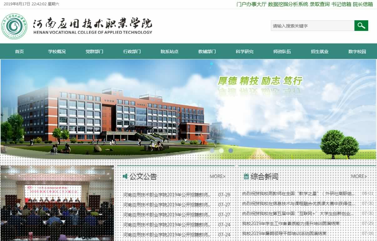 學院設有國家級職業(yè)技能鑒定站,可面向?qū)W生和社會開展化工總控工、鉗工、維修電工、電子商務師等30多個工種的鑒定工作。近三年,我院畢業(yè)生“雙證書”獲取率分別達到畢業(yè)生總數(shù)的95.7%、96.8%和97.5%,平均通過率達95.9%。 教學設施完善,學生專業(yè)技能卓越。學院辦學條件完善,教學設施先進,投資5000余萬元建設了建筑面積達3萬多平米的校內(nèi)實訓基地,有效整合實訓教學資源。目前,學院建有功能先進、能真實仿真實際工作環(huán)境的虛擬和實體校內(nèi)實訓基地56個,校外實訓基地99個,其中,中央財政支持示范性實訓基地2個,省級示范性實訓基地5個。學院現(xiàn)有教學用計算機1853臺,多媒體網(wǎng)絡教室和多媒體語音室153個,圖書館館藏各類圖書55萬多冊。學院擁有完善的校園信息網(wǎng)絡系統(tǒng),為全院師生提供網(wǎng)絡信息服務,建有標準的塑膠田徑場、室內(nèi)籃球場、排球場、乒乓球室、網(wǎng)球場、足球場等各類現(xiàn)代化體育設施,滿足了體育教學和學生體育鍛煉的需要。先進的教學設施,突出的技能培訓,使學院在各類技能大賽中屢獲殊榮,教育廳也連續(xù)多年將河南省高職院校技能大賽暨全國職業(yè)院校技能大賽高職組河南選拔賽化工類賽項放在我院舉行。近三年,學院先后組織學生參加151項國家級、省級各類職業(yè)技能大賽,共獲得全國團體一等獎9項,團體二等獎16項;全國個人一等獎4項,全國個人二等獎7項。人才隊伍合理,師資隊伍德技雙馨。學院擁有一支師德高尚、業(yè)務精湛、結構合理、充滿活力的高素質(zhì)專業(yè)化教師隊伍,現(xiàn)有專職教師631人,其中教授9人,副教授136人,中級職稱人員231人,“雙師型”教師247人,擁有博士、碩士研究生學歷、學位的教師213人,聘請知名企業(yè)中的中高級技術人才做實踐指導教師72人。學院現(xiàn)有享受國家、省政府津貼專家2人,國家級優(yōu)秀教師1人,全國職業(yè)教育先進個人3人,河南省教育專家3人,河南省優(yōu)秀教師11人,河南省教學標兵3人,河南省教育廳學術帶頭人31人,省級優(yōu)秀管理人才3人。近三年,教師發(fā)表CN級及以上論文612篇,主編、參編各類著作、規(guī)劃教材133部,參與完成國家級、省級科研項目27項,地廳級科研項目97項,專利45項。就業(yè)成績斐然,職業(yè)發(fā)展前景光明。學院注重全方位提供就業(yè)信息,建立就業(yè)信息網(wǎng),定期舉辦“畢業(yè)生就業(yè)洽談會”及大中型企業(yè)用人專場招聘會。目前已與鄭州航空港經(jīng)濟綜合實驗區(qū)、鄭州經(jīng)濟技術開發(fā)區(qū)、鄭州高新技術開發(fā)區(qū)建立了合作關系,與中石化、中石油、河南能源化工集團、中國平煤神馬能源化工集團、昊華集團、中國船舶重工集團有限公司第725研究所、鄭州宇通客車股份有限公司、鄭州旭飛光電科技有限公司、格力電器(鄭州)股份有限公司、鄭州丹尼斯百貨有限公司、大商集團(鄭州)有限公司、中國建筑第七工程有限公司、河南建筑第一、第二、第五工程有限公司、華蘭生物有限公司、輔仁藥業(yè)有限公司、河南羚銳制藥股份有限公司、河南心連心化肥有限公司、浙江龍盛集團、恒逸集團、新和成集團、浙江信匯、鄭州大學第一、第三、第五人民醫(yī)院、鄭州市中心醫(yī)院、鄭州市第七人民醫(yī)院等180多家國內(nèi)省內(nèi)大型知名企業(yè)簽訂校企合作協(xié)議,建立了穩(wěn)定的實習實訓基地和就業(yè)基地,我院40%的畢業(yè)生進入了這些企業(yè),月薪在3000元以上。學院近三年畢業(yè)生就業(yè)率一直穩(wěn)定在96%以上,高于同類院校的平均就業(yè)率。在關注畢業(yè)生就業(yè)率的同時,學院還堅持開展畢業(yè)生跟蹤調(diào)研,據(jù)跟蹤調(diào)研顯示,用人單位對我院畢業(yè)生普遍評價較高,不少畢業(yè)生現(xiàn)已成為各行各業(yè)的技術骨干和中高級管理人員,服務于地方經(jīng)濟,區(qū)域經(jīng)濟成效明顯。作為河南唯一一所應用技術型職業(yè)學院,學院一直受到河南省委、省政府、省教育廳領導們的高度重視,省委書記郭庚茂,省人大常委會副主任蔣篤運,原副省長賈連朝,省委高校工委副書記、教育廳副廳長訾新建,省委高校工委副書記、教育廳副廳長張亞偉,教育廳副廳長尹洪斌等領導同志多次親臨我院視察工作,對我院的人才培養(yǎng)質(zhì)量和就業(yè)質(zhì)量給予了高度評價,并對學院發(fā)展寄予厚望。近年來,學院嚴守“厚德、精技、勵志、篤行”的校訓,在一代代學院人的精心鑄造下,逐漸形成了“教師樂教、學生樂學、人人思進、個個爭先”的優(yōu)良校風和“心系學院、自強不息、務實創(chuàng)新、敢為人先”的學院精神,凝練出了“以質(zhì)量立校、以人才強校、以特色興校”的辦學理念,形成了“職業(yè)化教育、企業(yè)化教學、素質(zhì)化培養(yǎng)”的辦學模式,“工學結合、理實一體、技能遞進”的人才培養(yǎng)模式和教育警示、制度約束、過程監(jiān)督、違紀必究的廉政措施。目前,面對現(xiàn)代職業(yè)教育發(fā)展的大好機會,學院黨委正團結帶領全院師生員工,秉持“敬業(yè)愛生、言傳身教”的教風,“勤學善思、知行合一”的學風及“工作標準化、執(zhí)行效率化、落實結果化”的工作作風 ,將以更加廣闊的視野、更加開