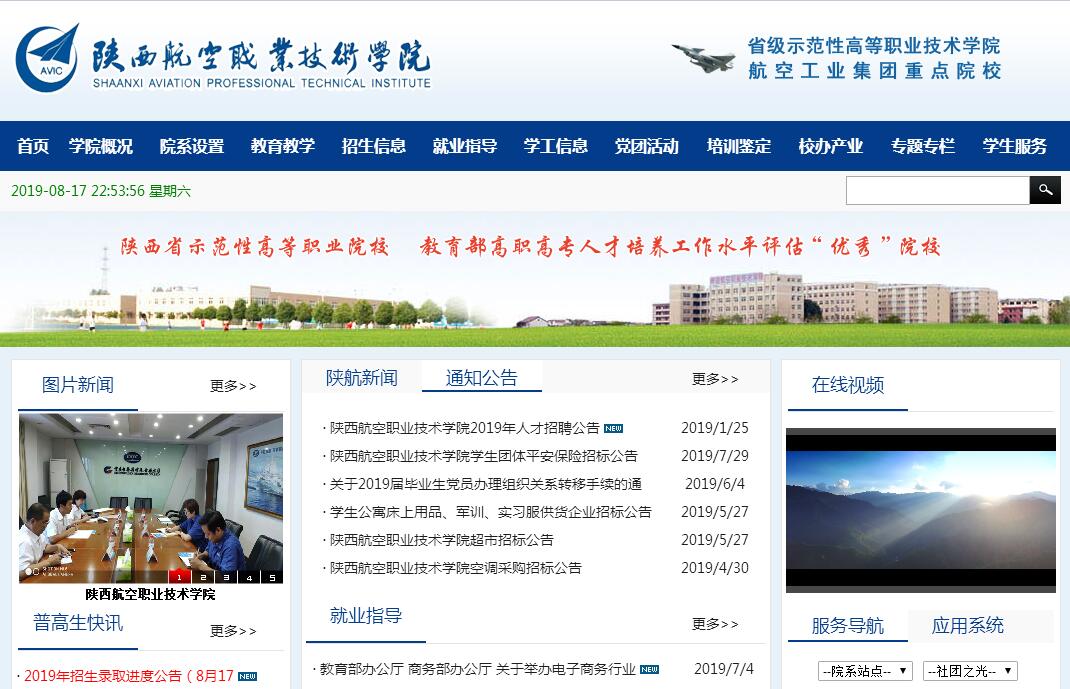 陜西航空職業(yè)技術(shù)學(xué)院是經(jīng)陜西省人民政府批準(zhǔn)、教育部備案的一所具有高等學(xué)歷教育招生資格的全日制公辦普通高等院校,隸屬于陜西省教育廳和中國(guó)航空工業(yè)集團(tuán)公司。學(xué)院始建于1982年,經(jīng)過(guò)34年的實(shí)踐與探索,形成了辦學(xué)特色鮮明、專(zhuān)業(yè)結(jié)構(gòu)合理、培養(yǎng)目標(biāo)明確、就業(yè)體系完善的現(xiàn)代高等職業(yè)教育體系。學(xué)院已成為中國(guó)航空工業(yè)和西部地區(qū)高技能人才培養(yǎng)和服務(wù)基地。2008年9月,學(xué)院獲教育部人才培養(yǎng)工作水平評(píng)估優(yōu)秀等級(jí)。2014年通過(guò)陜西省示范性高職院校建設(shè)驗(yàn)收,2015年完成了陜西省巡視診斷專(zhuān)家組對(duì)我院的巡視診斷工作。學(xué)院還先后多次被陜西省教育廳、陜西省國(guó)防科工委等上級(jí)部門(mén)授予“陜西省國(guó)防科技工業(yè)系統(tǒng)優(yōu)秀學(xué)校”、“陜西省國(guó)防科技工業(yè)系統(tǒng)先進(jìn)黨委”、“雙文明建設(shè)先進(jìn)單位”、“精神文明建設(shè)先進(jìn)單位”等榮譽(yù)稱(chēng)號(hào)。學(xué)院現(xiàn)有全日制在校生10000余人,教職員工582人。可使用土地面積753畝,建筑面積210385㎡,總資產(chǎn)近3億元,各類(lèi)教學(xué)儀器設(shè)備總值4789萬(wàn)元;擁有機(jī)電液氣、傳感器、焊接技術(shù)、機(jī)械創(chuàng)新、電子裝配等56個(gè)校內(nèi)實(shí)驗(yàn)實(shí)訓(xùn)室,建有標(biāo)準(zhǔn)田徑運(yùn)動(dòng)場(chǎng)和室內(nèi)運(yùn)動(dòng)場(chǎng)館,圖書(shū)館各類(lèi)藏書(shū)57萬(wàn)余冊(cè)。學(xué)院設(shè)有機(jī)械工程學(xué)院、機(jī)電工程學(xué)院、材料與建筑工程學(xué)院、電子工程學(xué)院、管理工程學(xué)院、文理學(xué)院、思政教學(xué)部、繼續(xù)教育部、培訓(xùn)中心、網(wǎng)絡(luò)中心、漢中工業(yè)技術(shù)研究院、高等職業(yè)教育研究室、教學(xué)督導(dǎo)室等教學(xué)科研機(jī)構(gòu)。先后開(kāi)設(shè)高職專(zhuān)業(yè)41個(gè),涵蓋制造、交通運(yùn)輸、材料與能源、資源開(kāi)發(fā)與測(cè)繪、電子信息、財(cái)經(jīng)、土建、旅游八個(gè)大類(lèi),其中省級(jí)重點(diǎn)專(zhuān)業(yè)9個(gè),省級(jí)專(zhuān)業(yè)綜合改革試點(diǎn)專(zhuān)業(yè)2個(gè),提升專(zhuān)業(yè)服務(wù)產(chǎn)業(yè)發(fā)展能力建設(shè)專(zhuān)業(yè)1個(gè),省級(jí)精品課程4門(mén),省級(jí)優(yōu)秀教材2部,省級(jí)教學(xué)名師3人,陜西省高等職業(yè)教育實(shí)訓(xùn)基地3個(gè),國(guó)防科技工業(yè)職業(yè)教育實(shí)訓(xùn)基地1個(gè),中央財(cái)政支持建設(shè)的實(shí)訓(xùn)基地2個(gè)。參加國(guó)家、省、部級(jí)以上各類(lèi)競(jìng)賽獲獎(jiǎng)一百余項(xiàng)。學(xué)院堅(jiān)持“服務(wù)為宗旨、就業(yè)為導(dǎo)向”的指導(dǎo)方針,高度重視畢業(yè)生就業(yè)推薦工作,積極推行“多證書(shū)”制度,定期舉辦就業(yè)洽談會(huì)和專(zhuān)場(chǎng)招聘會(huì),建立了以航空、航天、船舶、兵器、核工業(yè)及鐵路等200多個(gè)大、中型企事業(yè)單位為主的就業(yè)基地,為國(guó)防工業(yè)發(fā)展和地方經(jīng)濟(jì)建設(shè)培養(yǎng)了一大批適應(yīng)生產(chǎn)、建設(shè)、服務(wù)和管理第一線(xiàn)需要的高素質(zhì)技術(shù)技能人才。畢業(yè)生就業(yè)率連續(xù)12年超過(guò)96%,在全省各大院校中名列前茅。
