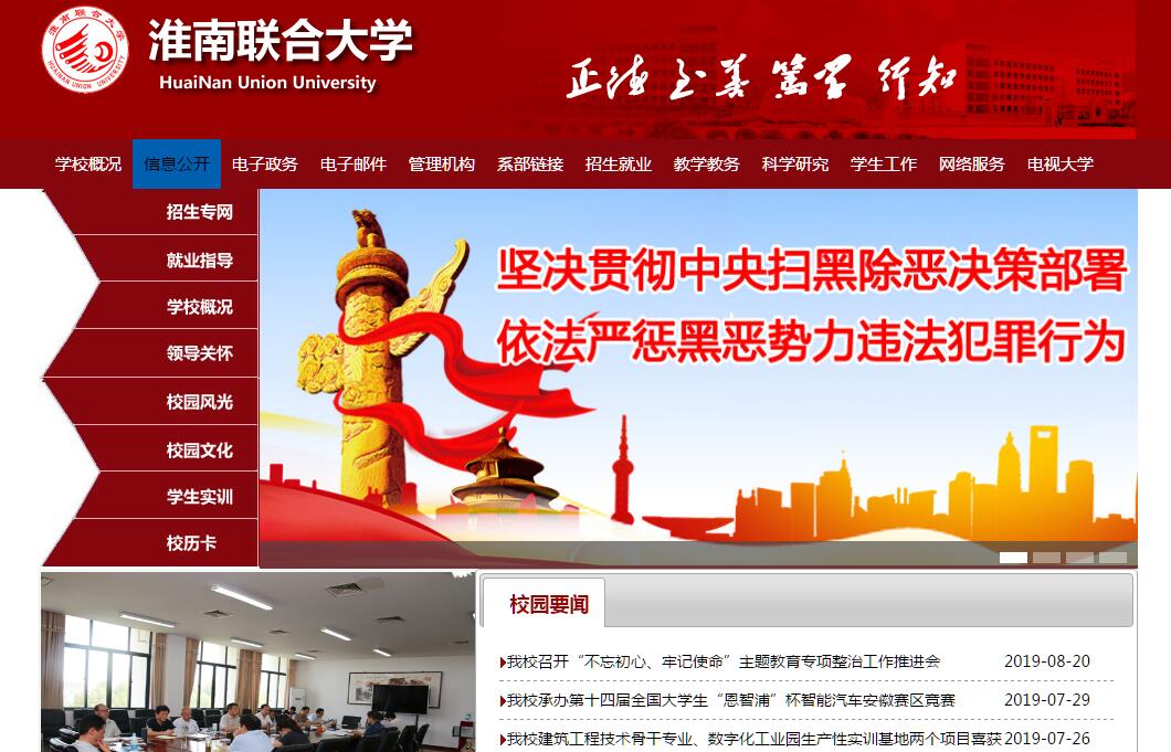 淮南聯(lián)合大學成立于1984年9月,是經(jīng)省政府批準、國家教育部備案的普通高等專科學校。學校位于中國較大城市安徽省淮南市,南依郁郁蔥蔥的舜耕山,北眺曲折蜿蜒的淮河,緊臨城區(qū)交通主干道,環(huán)境優(yōu)美,交通便利。辦學35年來,學校辦學規(guī)模不斷擴大、教學質(zhì)量穩(wěn)步提高、辦學特色逐年彰顯、社會聲譽日益提升。學校堅持“依法治校、厚德尚學、治學至善、科學發(fā)展”的辦學理念,以“質(zhì)量立校、特色興校、人才強?!睘榘l(fā)展戰(zhàn)略,突出服務(wù)宗旨,以就業(yè)為導向,強化學校與社會、教學與生產(chǎn)、教學與科研相結(jié)合,培養(yǎng)現(xiàn)代化建設(shè)一線需要的高等實用型技能人才,努力建成實用型人才培養(yǎng)和開放式辦學格局的地方高等職業(yè)院校。歷經(jīng)31年發(fā)展,學校占地面積800余畝在職教職工400余人,其中,高級職稱教師115人,碩士學位以上的教師258人,“雙師型”教師占教師總數(shù)的比例位于全省同類院校前列。學?,F(xiàn)設(shè)有機電工程、化學工程、建筑工程、經(jīng)濟學、政法與文學、外國語、計算機科學和醫(yī)學8個系及電大成人教育學院、基礎(chǔ)課部、思政部和實訓中心等教學單位,承擔著培養(yǎng)普通??坪统扇吮尽?茖W生的教學任務(wù)。目前,普通??瞥TO(shè)招生專業(yè)49個,“開放教育”本科專業(yè)10個,各類在校學生近萬人。學校現(xiàn)擁有工程實訓中心、計算機教學中心、網(wǎng)絡(luò)技術(shù)、多媒體、機械電子、儀器儀表、化學化工、財會、語音、臨床醫(yī)學、解剖學、病理學和組織標本室等設(shè)備較為先進的實驗室,設(shè)計功能齊全、設(shè)施一流,可滿足學生實驗實訓的需求。近幾年畢業(yè)生當年就業(yè)簽約率達到95%,連續(xù)獲得“安徽省普通高等學校畢業(yè)生就業(yè)工作先進集體”榮譽稱號,就業(yè)質(zhì)量和就業(yè)水平在安徽省同類高校中名列前茅。學校以提升服務(wù)淮南市轉(zhuǎn)型發(fā)展戰(zhàn)略的能力為目標,以辦出特色鮮明、爭創(chuàng)一流的高職院校為定位,助力淮南市域內(nèi)的新興產(chǎn)業(yè)發(fā)展和中小企業(yè)轉(zhuǎn)型,在進一步增強校企合作成效上下功夫,大力推動校企合作引領(lǐng)下的專業(yè)建設(shè),加強雙師隊伍建設(shè)和科研服務(wù)能力提升,推動互利雙贏的校企合作實踐教育基地建設(shè),深化人才培養(yǎng)模式和專業(yè)教學改革,切實提高高等職業(yè)教育人才培養(yǎng)質(zhì)量,全面提升學校服務(wù)淮南地方產(chǎn)業(yè)和我省經(jīng)濟社會發(fā)展的能力,辦學實力和活力得到顯著增強。我校圍繞高職教育“培養(yǎng)什么人”和“怎樣培養(yǎng)人”這兩個根本問題,立足實際,從人才培養(yǎng)目標、培養(yǎng)模式、課程設(shè)置、實踐教學等方面進行整體優(yōu)化,改革創(chuàng)新。我校按照“校企合作、工學結(jié)合、教學做一體化”的思路,將學生就業(yè)水平、企業(yè)滿意度作為衡量人才培養(yǎng)質(zhì)量的核心指標,拓展企業(yè)參與人才培養(yǎng)的深度與廣度,包括企業(yè)人員的介入、企業(yè)標準的引進、職業(yè)資格要求的融合等,把崗位群職業(yè)技能需求內(nèi)化為具體的教學目標,融入教學內(nèi)容,落實在教學過程中。構(gòu)建了“基礎(chǔ)平臺+專業(yè)方向模塊”的人才培養(yǎng)方案,注重對學生可持續(xù)學習能力的培養(yǎng)。根據(jù)不同專業(yè)特點和學?,F(xiàn)有的教學條件,主要采取“工學交替”和“2+1”的人才培養(yǎng)模式,實現(xiàn)了教學實踐與職業(yè)崗位的密切對接,有效提高了學生的專業(yè)技能。我校高度重視豐富多彩的校園文化建設(shè),全校19個學生社團通過舉辦多種形式的文體和科技活動,發(fā)揮廣大學生校園文化主體的積極性,形成了以校園文化藝術(shù)節(jié)、科技活動周、各種競賽等系列社團活動為載體的“第二課堂”內(nèi)容,營造出良好的校園文化氛圍,全面提升了學生的綜合素質(zhì)。建校31年來,學校先后獲得“安徽省文明單位”、“安徽省普通高校招生先進工作集體”、“安徽省高校畢業(yè)生就業(yè)工作先進集體”、“安徽省普通高校學生管理工作優(yōu)秀單位”、“安徽省大學生職業(yè)規(guī)劃設(shè)計大賽暨大學生創(chuàng)業(yè)大賽組織獎”、“淮南市級文明單位標兵”等31項省市級榮譽稱號。篳路藍縷滄海路,再接再厲譜新篇?;茨下?lián)合大學在省教育廳、市委、市政府的領(lǐng)導下,正以時不我待的緊迫感和奮發(fā)有為的精神狀態(tài),搶抓機遇,奮力崛起,全面推進學校建設(shè),不斷譜寫學校發(fā)展的新篇章。