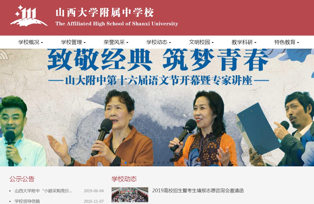 山西大學(xué)附屬中學(xué)校是由山西省教育廳和山西大學(xué)共同領(lǐng)導(dǎo)管理,以舉辦普通高中教育為主,兼辦民族教育、國際教育和義務(wù)教育的省級示范性高中。學(xué)校占地 8 萬平米,位處高校、科研單位聚集的太原市塢城地區(qū),社區(qū)人文環(huán)境優(yōu)越;學(xué)校建筑布局緊湊合理,充滿綠色和人文關(guān)懷的校園,優(yōu)美宜人;學(xué)校教育教學(xué)設(shè)施設(shè)備一流,網(wǎng)絡(luò)和多媒體環(huán)境下的數(shù)字化校園,開放現(xiàn)代。在長期的辦學(xué)實踐中,山西大學(xué)附中堅持“以人為本、持續(xù)發(fā)展”的核心辦學(xué)思想和“科學(xué)與人文交融、厚德與博學(xué)并舉”的育人理念,以培養(yǎng)”具有國際視野,厚德博學(xué)、文理兼長的杰出人才后備軍“為目標(biāo),構(gòu)建起了包括“理念文化、德育培養(yǎng)、學(xué)校課程、教學(xué)實施、學(xué)生發(fā)展、特色培養(yǎng)、育人保障”七個子系統(tǒng)在內(nèi)的個性化辦學(xué)體系和育人模式,形成了學(xué)生“自主發(fā)展、特長發(fā)展、卓越發(fā)展”的育人特色,為師生全面、和諧、持續(xù)發(fā)展提供了優(yōu)良的環(huán)境和廣闊的空間,培養(yǎng)了一批批國家級和省級拔尖學(xué)生。-----在廣受家長和社會矚目的高考中,成績在高水平基礎(chǔ)上穩(wěn)步提升,每年500多名畢業(yè)生中有98%以上的學(xué)生達(dá)到二本分?jǐn)?shù)線,95%以上的學(xué)生達(dá)到一本線,其中有50人左右被北大、清華錄?。?014年達(dá)到64人),考入“985”高校的學(xué)生接近70%,贏得了社會各界的盛贊。-----在全國高中最高水平的各大理科競賽以及科技創(chuàng)新、藝術(shù)體育、文學(xué)寫作、創(chuàng)新英語等各級各類比賽中,2001年到2015年間山西省高中物理、化學(xué)、生物奧賽共產(chǎn)生了45個團(tuán)體第一,我校獲得其中的44個;高中數(shù)學(xué)、物理、化學(xué)、生物、信息學(xué)等五大學(xué)科共產(chǎn)生68個全省團(tuán)體第一,我校獲得了其中的62個。十余年共有14586人次獲獎,每年獲獎學(xué)生人數(shù)遠(yuǎn)遠(yuǎn)超過當(dāng)年畢業(yè)生人數(shù),由單科個體優(yōu)勢發(fā)展成為多科群體優(yōu)勢,成為學(xué)校育人的重要特色??缛胄率兰o(jì)的山大附中,以其先進(jìn)的辦學(xué)理念、一流的辦學(xué)業(yè)績、鮮明的辦學(xué)特色、獨特的學(xué)校文化,成為全省、全國廣受好評的優(yōu)質(zhì)高中,先后被授予“全國教育系統(tǒng)先進(jìn)集體”“全國民族團(tuán)結(jié)進(jìn)步模范先進(jìn)集體”“國家級體育傳統(tǒng)項目學(xué)?!薄叭珖行W(xué)民族團(tuán)結(jié)教育先進(jìn)集體”“山西省五一勞動獎狀”“山西省文明單位”“山西省具有特色的優(yōu)秀學(xué)校”“山西省德育示范學(xué)?!薄吧轿魇∥拿鲗W(xué)?!薄疤薪逃虒W(xué)質(zhì)量綜合優(yōu)勝獎”“優(yōu)秀領(lǐng)導(dǎo)班子獎”“太原市培養(yǎng)優(yōu)秀學(xué)生突出貢獻(xiàn)獎”等榮譽稱號,先后被確定為“中國科技創(chuàng)新人才培養(yǎng)基地”“山西省基礎(chǔ)教育課程改革實驗基地”“山西省中學(xué)教師培訓(xùn)中心教學(xué)觀摩基地”“國家對外漢語教學(xué)推廣基地學(xué)?!薄皣伊魧W(xué)基金委留學(xué)預(yù)科學(xué)院出國人才選拔基地”和全國多所著名高校的“生源基地”。