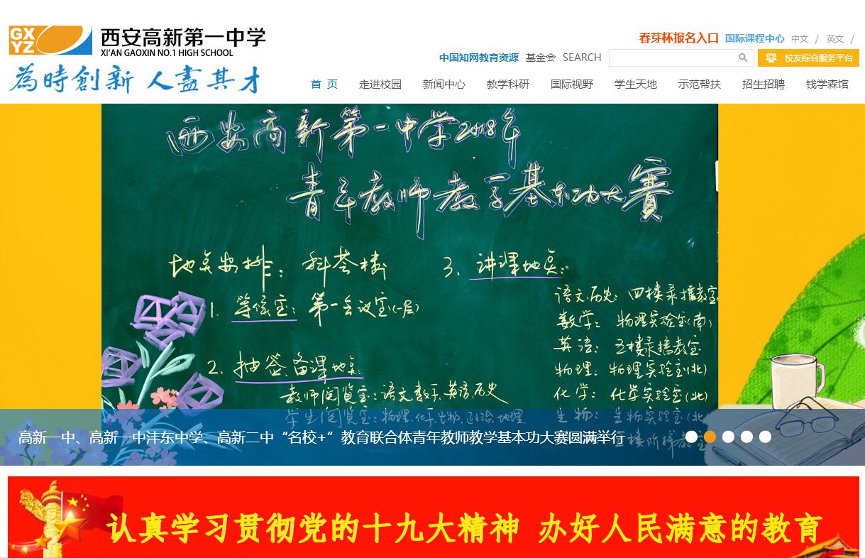 西安高新第一中學(xué)(簡稱西安高新一中)創(chuàng)辦于1995年,是西安高新技術(shù)產(chǎn)業(yè)開發(fā)區(qū)為了改善投資環(huán)境興建的民辦學(xué)校。1998年學(xué)校被批準為省級重點中學(xué),2009年學(xué)校被批準為陜西省首批示范高中?,F(xiàn)在,西安高新第一中學(xué)是一所普通高中學(xué)校,學(xué)校有高中部和南校區(qū)兩個校區(qū)。學(xué)校秉承“以人為本,以學(xué)生為中心,面向世界,面向未來,培養(yǎng)高素質(zhì)合格人才”的辦學(xué)理念,秉持“為時創(chuàng)新,人盡其才”的校訓(xùn),創(chuàng)立了陜西省首個“國際課程班”和“錢學(xué)森實驗班”,收獲了豐碩成果。品德學(xué)識同步卓越 學(xué)校始終堅持“教學(xué)寓德,活動育德,實踐養(yǎng)德,評價導(dǎo)德,管理促德”的德育工作原則,以“體驗式”德育為特色,打造認知、情感行為三位一體學(xué)校德育模式,全面提升學(xué)生的綜合素質(zhì)。文化立魂師德為先 23年的辦學(xué)實踐,高新一中凝練出“敬業(yè)奉獻、愛生如子、崇尚科學(xué)、追求卓越”的學(xué)校精神,它是學(xué)校師德的魂。學(xué)校提倡“像親人一樣相處,像新兵一樣工作”,多年的實踐,在高新一中達成了一個共識:人格需要人格的培養(yǎng);感情需要感情的投入;智慧需要智慧的啟迪;精神需要精神的感染。學(xué)校有2/3的老師多次參加國際教育培訓(xùn),近年來學(xué)校自主培養(yǎng)省、市級的名師、學(xué)科帶頭人和教學(xué)能手70人,先后建立“陜西省名師工作室、學(xué)科帶頭人工作坊、教學(xué)能手工作站”21個,成員189人,在全省的教師隊伍建設(shè)中起到了帶動作用。創(chuàng)新人才持續(xù)發(fā)展 學(xué)校提出了“有德性,會合作,敢擔當,善創(chuàng)新”的育人目標,圍繞育人目標,形成基礎(chǔ)性、拓展性和創(chuàng)造性三個層次課程體系。學(xué)生領(lǐng)導(dǎo)力課程,“名家講堂”系列課程,勵志課程,走進錢學(xué)森校本課程,國家安全教育課程,研學(xué)旅行課程,生涯教育課程等開放的、高品質(zhì)的育人課程,為學(xué)生當下和將來的學(xué)習、生活和個人發(fā)展做好了準備,讓他們在面對選擇時更有信心,更具有獨立的思想、獨立的人格。國際接軌富有特色 學(xué)校用國際意識和視野來把握和發(fā)展教育,學(xué)校目前已與4個國家的9所學(xué)校建立姊妹校關(guān)系,在國際視野課程學(xué)習中,每年有300余名學(xué)生在國外進行為期半年的交流學(xué)習或進行短期社會實踐活動。學(xué)校與美國布魯克蘭中學(xué)、賽格斯中學(xué)成立項目組,通過互派交流生,共同進行創(chuàng)新人才培養(yǎng)的合作研究;與美國肯塔基大學(xué)合作,進行學(xué)生英文閱讀與寫作研究;與美國麻省理工學(xué)院合作,每年選派研究生來校對學(xué)生進行創(chuàng)新實踐及實驗培訓(xùn)。教育教學(xué)成果突出 建校23年來,學(xué)校培養(yǎng)了15名高考陜西省文理科第一名,總數(shù)位居陜西省第一;近10年,學(xué)校在全國五大學(xué)科競賽中共獲得34枚金牌,金牌總數(shù)位居陜西省第一。近800名學(xué)生考入北大、清華,每年都有百余名學(xué)子從這里走向世界,考入英國劍橋大學(xué)、牛津大學(xué),美國常春藤名校賓夕法尼亞大學(xué)、康奈爾大學(xué)等世界排名前100位的高校。學(xué)校充分發(fā)揮以自身發(fā)展帶動薄弱學(xué)校同步前進和共同提高的效能,對薄弱學(xué)校的對口幫扶的投入也逐年增加,真正起到了優(yōu)質(zhì)教育資源的輻射和示范作用。