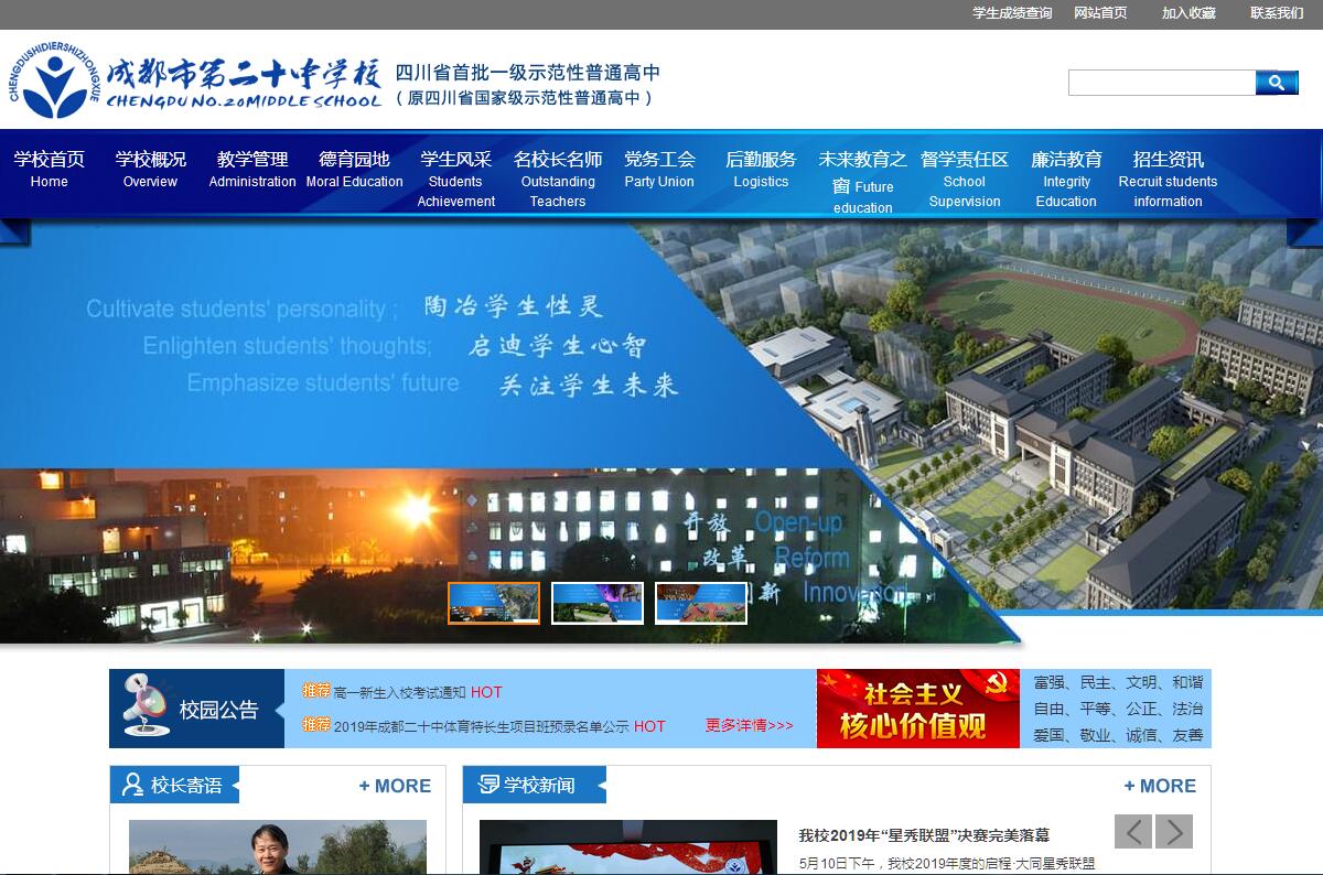 成都二十中創(chuàng)辦于1930年,原名成都私立大同中學(xué),是金牛區(qū)辦學(xué)歷史最為悠久的中學(xué)。學(xué)校是四川首批一級示范性普通高中、四川省校風(fēng)示范學(xué)校、全國學(xué)校藝術(shù)教育工作先進單位、全國群眾體育先進單位、四川省陽光體育示范學(xué)校、成都市拔尖創(chuàng)新人才培養(yǎng)基地校、成都市國際理解教育課程實驗校、成都市高中新課改示范校、新浪?教育“最具口碑魅力學(xué)?!?。學(xué)校被中國教育學(xué)會授予“現(xiàn)代學(xué)校聯(lián)盟行動計劃首批加盟學(xué)?!狈Q號,是中國科技大學(xué)等眾多重點高校的優(yōu)質(zhì)生源基地校。學(xué)校位于環(huán)交大智慧城,占地120余畝,包括茶店子高中部和黃忠初中部兩個校區(qū)?,F(xiàn)有60多個教學(xué)班,學(xué)生3000余人,教職工260余人。八十八載風(fēng)醞雨潤,薪火相傳,凝聚成“情智并育、慧行天下”的教育理念以及“德育首位、競賽領(lǐng)先、藝體見長、和諧發(fā)展”的辦學(xué)特色。學(xué)校秉承“人人為公,天下大同”文化傳統(tǒng),繼承心系天下、情牽蒼生的大同胸懷,弘揚“責(zé)任”“平等”“和諧”的大同精神,堅持“努力把每一個學(xué)生培養(yǎng)成為情趣高尚、學(xué)力高強、身心健康、個性鮮明,具有創(chuàng)新精神和實踐能力的高素質(zhì)學(xué)生”的育人目標(biāo),教育教學(xué)工作取得優(yōu)異成績,成為一所深受廣大家長稱贊和學(xué)生歡迎的省一級示范性普通高中。成都二十中系成都市高中新課改示范校,擁有一只愛崗敬業(yè)、勤于奉獻教職工隊伍,正高級教師1人、特級教師5人、高級職稱教師102人,省、市、區(qū)各級學(xué)科帶頭人、教育專家等骨干教師13教師團隊踐行“為專業(yè)尊嚴(yán),為團隊榮譽,為學(xué)子未來”的教師文化,注重專業(yè)發(fā)展,教育教學(xué)理念先進,教學(xué)藝術(shù)精湛,愛崗敬業(yè),關(guān)愛學(xué)生,助力學(xué)生多元發(fā)展。學(xué)校系成都市園林單位,悠久的歷史積淀了厚重的人文底蘊,承載著歷屆校友美好記憶的校園,訴說著過往的青春歲月。培養(yǎng)了“堅韌沉穩(wěn)?向善大同”的校園文化精神。目前,初中部校區(qū)已完成全面改造提檔升級,投資近3億元的高中部校區(qū)改擴建工程(一期)已竣工投入使用。一所教育理念領(lǐng)先、具有中國傳統(tǒng)建筑風(fēng)格、可充分滿足不同學(xué)生走班需求的智慧學(xué)校,將成為莘莘學(xué)子生動和諧成長的學(xué)園、家園和樂園。學(xué)校堅持“開放 創(chuàng)新 發(fā)展”的辦學(xué)思想,踐行“情智并育 慧行天下”的辦學(xué)理念,以學(xué)生發(fā)展為本,以教育教學(xué)質(zhì)量為生命線。學(xué)校高考成績顯著,躋身全市省一級示范學(xué)校前列,連續(xù)二十多年受到市教育局“高中教育教學(xué)質(zhì)量成績顯著”表彰,并多次在全市高考總結(jié)暨高三教學(xué)工作會上作經(jīng)驗交流。近三年,高考本科上線率連年上升,特優(yōu)生群體不斷擴大,每年有上百學(xué)生考入“985”、“211”等全國一流高校、一流專業(yè)。重視校本課程建設(shè),提高學(xué)生的綜合素養(yǎng)。舉辦勞動教育、學(xué)生社團、博雅藝術(shù)、競技體育、學(xué)科競賽等校本課程。學(xué)生管弦樂團連續(xù)多次受邀參加成都國際青年音樂周展演活動;學(xué)校棒球隊、田徑隊、游泳隊參加國家、省市各級各類比賽,成績優(yōu)異。學(xué)校還擁有諸多藝術(shù)活動品牌:已經(jīng)成功舉辦22屆新春音樂會、12屆“星秀聯(lián)盟”校園歌手大賽、13屆畢業(yè)歌舞晚會。2013年,我校受邀參加亞洲教育論壇年會就藝術(shù)教育作主題演講,成為全國唯一一所連續(xù)兩次受邀參加亞洲教育論壇的中學(xué)。21世紀(jì)教育面臨重大變革,成都二十中順應(yīng)未來教育發(fā)展,按照頂層設(shè)計思路,通過云技術(shù)構(gòu)建信息共享的基礎(chǔ)平臺,實現(xiàn)用戶信息、教學(xué)資源信息、教學(xué)軌跡信息等共享的智慧教育,通過智慧物聯(lián)實現(xiàn)智能化管理,通過生活運動軌跡大數(shù)據(jù)采集形成學(xué)生成長智慧環(huán)境系統(tǒng)。從而構(gòu)建教師精準(zhǔn)化教學(xué),學(xué)生個性化、全時空、立體交互式學(xué)習(xí)環(huán)境系統(tǒng),實現(xiàn)教師智慧教,學(xué)生智慧學(xué),培養(yǎng)智慧人生的智慧校園。目前,在金牛區(qū)委、區(qū)政府的關(guān)心和區(qū)教育局的大力支持下,我校初中部校區(qū)已完成全面改造,投資近3億元的高中部校區(qū)改擴建一期工程已竣工投入使用。一所教育理念領(lǐng)先、具有中國傳統(tǒng)建筑風(fēng)格、適應(yīng)新高考改革、可充分滿足不同學(xué)生走班需求的智慧學(xué)校歡迎你的到來。學(xué)校正朝著“市內(nèi)綜合實力前列,國內(nèi)辦學(xué)特色鮮明的開放型、培養(yǎng)型優(yōu)質(zhì)高中”的發(fā)展目標(biāo)努力邁進。