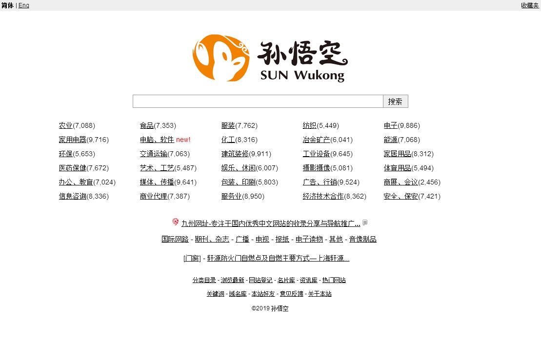 孫悟空分類目錄是一個(gè)基于搜索引擎技術(shù)的開放式網(wǎng)站目錄。1999年,互聯(lián)網(wǎng)發(fā)展初期,創(chuàng)辦人出于對經(jīng)濟(jì)學(xué)、傳播學(xué)和互聯(lián)網(wǎng)技術(shù)的興趣和工作需要,建立的一個(gè)簡單實(shí)用的網(wǎng)站目錄專案,收錄世界各國、各個(gè)行業(yè)的最新優(yōu)秀網(wǎng)站資源,提供網(wǎng)站搜索、網(wǎng)站登記、網(wǎng)站排行榜、關(guān)鍵詞查詢、域名查詢等服務(wù)。注冊域名(sunwukong.cn)后,專案計(jì)劃正式命名為“孫悟空”,歷經(jīng)多年,目前已經(jīng)發(fā)展成為由來自世界各地志愿者共同維護(hù)與建設(shè)的開放式網(wǎng)站分類目錄平臺(tái),并為中外眾多優(yōu)質(zhì)網(wǎng)站免費(fèi)提供簡單、快速、高效、持久的推廣服務(wù)。