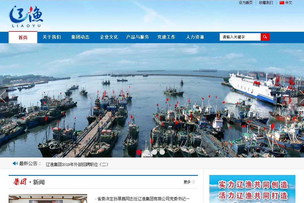 遼漁集團(tuán)有限公司(簡(jiǎn)稱遼漁集團(tuán)) 坐落于遼東半島大連灣畔,始建于1945年,是我國(guó)久負(fù)盛名的海洋經(jīng)濟(jì)骨干企業(yè)。企業(yè)海陸總面積400萬(wàn)平方米,資產(chǎn)總額達(dá)110億元,員工10000余人,是國(guó)內(nèi)最具綜合規(guī)模優(yōu)勢(shì)、產(chǎn)業(yè)鏈條最為完整的現(xiàn)代化漁業(yè)基地,各項(xiàng)指標(biāo)多年持續(xù)保持國(guó)內(nèi)同行業(yè)領(lǐng)先水平?!笆濉逼陂g,遼漁集團(tuán)將努力建設(shè)以海洋為依托,以臨港產(chǎn)業(yè)為基礎(chǔ),以海洋食品產(chǎn)業(yè)為重點(diǎn),以客滾運(yùn)輸、遠(yuǎn)洋捕撈和海洋生物為支撐,以金融服務(wù)、房地產(chǎn)為補(bǔ)充的全產(chǎn)業(yè)鏈現(xiàn)代企業(yè)集團(tuán),開啟打造中國(guó)海洋經(jīng)濟(jì)領(lǐng)軍企業(yè)新征程。