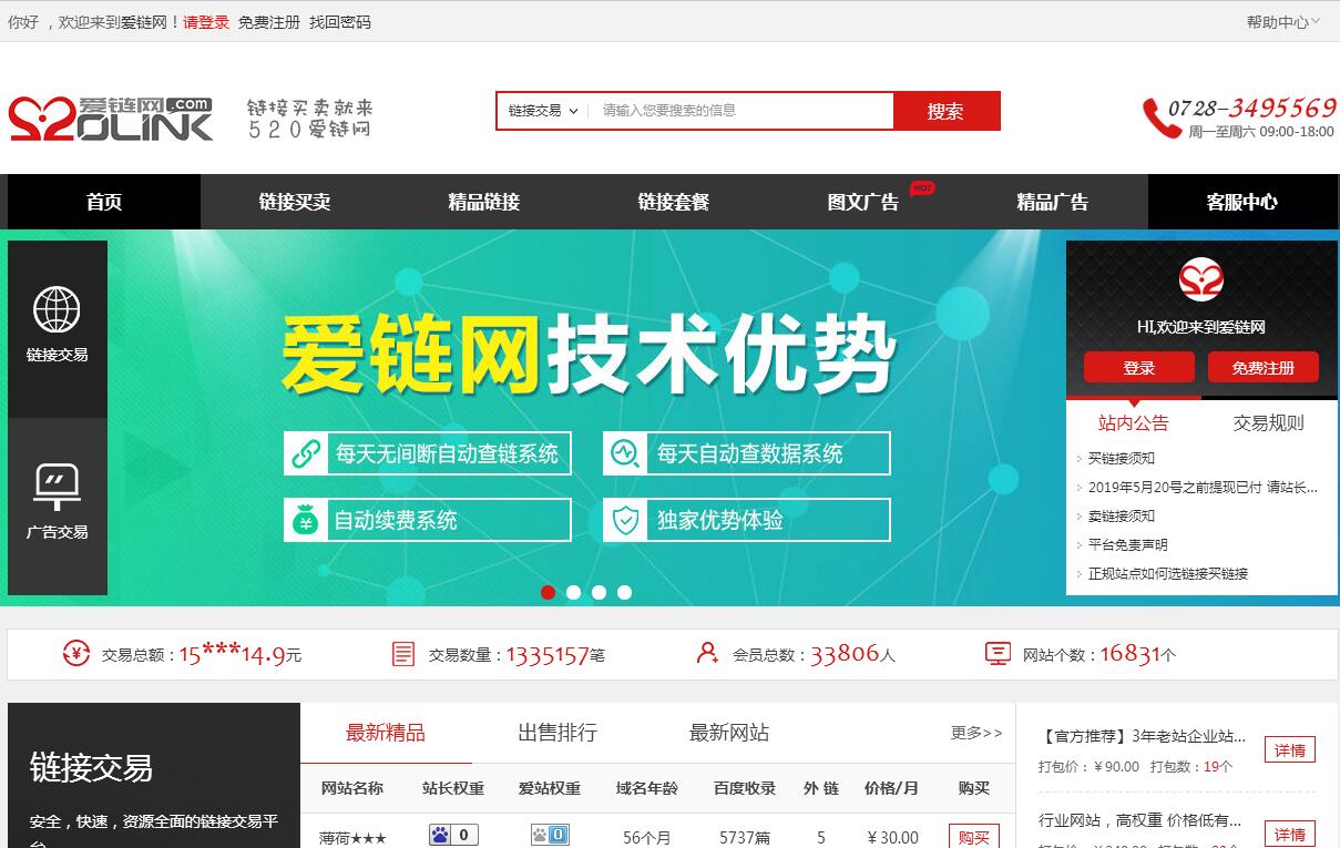 | 網(wǎng)站簡介: 仙桃市新昊傳媒有限公司2012年開始運營愛鏈網(wǎng) www.520link.com。愛鏈網(wǎng)外鏈交易平臺即(520link.com)誕生于2012年12月25日。愛鏈網(wǎng)外鏈交易平臺是“網(wǎng)站友情鏈接交易平臺”,它引入“網(wǎng)站友情鏈接是商品”的概念,讓友情鏈接(外鏈)第一次作為商品呈現(xiàn)在站長交易市場里,方便快捷的滿足廣大站長外部鏈接建設的需求。 |