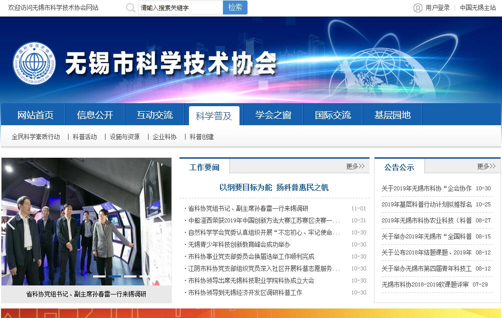 無錫市科學技術協(xié)會(簡稱無錫市科協(xié))是中共無錫市委領導下的人民團體,無錫科技工作者的群眾組織;是黨和政府聯(lián)系科技工作者的橋梁和紐帶,發(fā)展科學技術事業(yè)的重要社會力量;是無錫市政協(xié)的組成單位。無錫市科協(xié)的宗旨是團結和組織全市廣大科技工作者,高舉鄧小平理論偉大旗幟,實踐“三個代表”重要思想,深入貫徹科學發(fā)展觀,圍繞黨和政府的中心工作,積極推動科教興市和可持續(xù)發(fā)展戰(zhàn)略的實施,建設創(chuàng)新型城市;促進科學技術的繁榮和發(fā)展,促進科學技術的普及和推廣,促進科學技術人才的成長和提高,促進科學技術與經(jīng)濟的結合;代表和維護科技工作者的合法權益,為經(jīng)濟社會發(fā)展服務,為提高全民科學素質服務,為科學技術工作者服務。無錫市科協(xié)的主要職責是:1、按照國家、省科普工作的方針、規(guī)劃,負責擬訂科協(xié)系統(tǒng)科普工作具體計劃,并組織實施。動員社會各方面力量,開展科普活動和青少年科技教育活動,推廣先進技術;指導科普館科普設施、場所的規(guī)劃、建設和管理及科普工作隊伍的建設工作;2、開展學術交流,活躍學術思想,繁榮學術園地,促進學科發(fā)展、知識創(chuàng)新;3、全心全意為科技工作者服務,反映科技工作者的意見和要求,維護科技工作者的合法權益;4、引導科技工作者在管理國家和社會事務中發(fā)揮作用,組織科技工作者參與政府科學技術政策、法規(guī)制定和政治協(xié)商、科學決策、民主監(jiān)督工作,促進決策科學化、民主化;5、表彰、宣傳優(yōu)秀科技工作者,推薦人才。開展科技工作者的繼續(xù)教育和培訓工作;6、開展科學論證、咨詢服務,提出政策建議,促進科學技術成果的轉化,接受委托承擔項目評估、成果鑒定等任務;7、開展民間國際科技交流與合作,發(fā)展與香港、澳門特別行政區(qū)和臺灣地區(qū)科技及國外科學技術團體、科技工作者的民間交往和聯(lián)系;8、監(jiān)督管理主管的有關學會、科技類社會團體,指導市(縣)、區(qū)科協(xié)的業(yè)務工作;9、組織、指導有關捍衛(wèi)科學尊嚴和反對愚昧迷信、偽科學、反科學的活動;10、承辦市委、市政府交辦的其他事項。