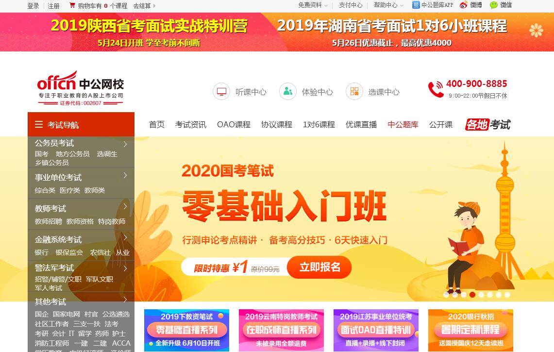 | 網(wǎng)站簡介: 【中公網(wǎng)?!恐泄逃煜略诰€學習培訓輔導平臺,通過線上線下結合、直播授課、班主任督學、題庫練習等產(chǎn)品和服務,提升學習效果。課程內(nèi)容涵蓋國家公務員考試、事業(yè)單位招聘、教師資格、銀行國企等公職考試培訓輔導。 |