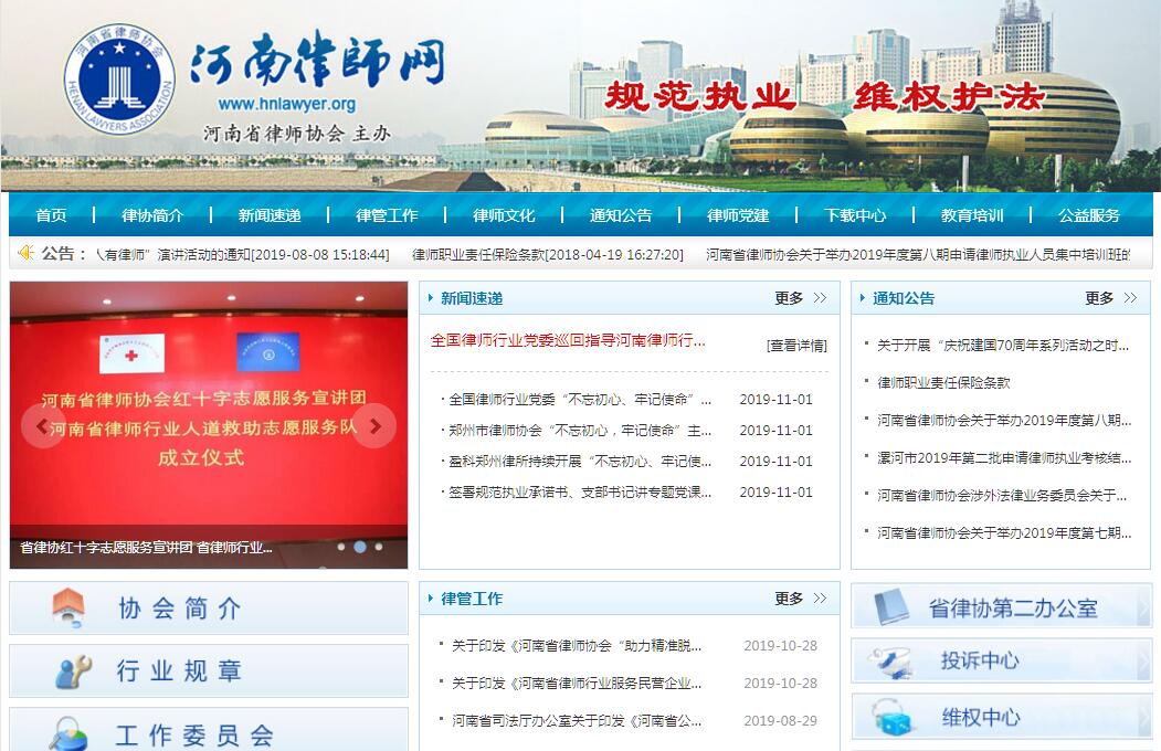 | 網(wǎng)站簡(jiǎn)介: 河南律師網(wǎng)由河南省律師協(xié)會(huì)主辦。河南省律師協(xié)會(huì)成立于 1981年,是社會(huì)團(tuán)體法人,是中華全國(guó)律師協(xié)會(huì)的團(tuán)體會(huì)員,是河南省的律師行業(yè)自律性組織,依法對(duì)律師實(shí)行行業(yè)管理。河南省律師協(xié)會(huì)旨在團(tuán)結(jié)和教育會(huì)員,維護(hù)憲法和法律的尊嚴(yán),忠實(shí)于律師事業(yè),恪守律師職業(yè)道德和執(zhí)業(yè)紀(jì)律;維護(hù)會(huì)員和合法權(quán)益;提高會(huì)員的業(yè)務(wù)素養(yǎng);加強(qiáng)行業(yè)自律,促進(jìn)律師事業(yè)的健康發(fā)展,以發(fā)展社會(huì)主義民主,健全社會(huì)主義法制,促進(jìn)社會(huì)的文明和進(jìn)步。河南省律師協(xié)會(huì)每四年舉行一次律師代表大會(huì),選舉產(chǎn)生理事會(huì),理事會(huì)選舉本屆會(huì)長(zhǎng)、副會(huì)長(zhǎng)和常務(wù)理事。在理事會(huì)閉會(huì)期間,常務(wù)理事會(huì)行使理事會(huì)的職權(quán),執(zhí)行河南省律師代表大會(huì)的決議。 |