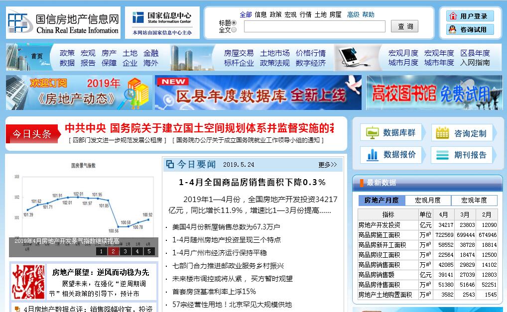 國信房地產(chǎn)信息網(wǎng)(http://www.crei.cn)是由是由國家信息中心主辦的專業(yè)性信息網(wǎng)站,創(chuàng)辦于1998年,主要面向政府和社會單位提供宏觀經(jīng)濟和房地產(chǎn)方面專業(yè)化的信息和數(shù)據(jù)服務?!昂暧^經(jīng)濟與房地產(chǎn)數(shù)據(jù)庫”是國家信息中心根據(jù)自身研究需要,開發(fā)建設并運行維護的專業(yè)性與綜合性相結(jié)合的數(shù)據(jù)庫,該數(shù)據(jù)庫包括宏觀經(jīng)濟、房地產(chǎn)、其他特色數(shù)據(jù)庫( 數(shù)字經(jīng)濟、政策法規(guī))三大方面內(nèi)容,可提供全部縣級以上城市的月度和年度宏觀經(jīng)濟與房地產(chǎn)相關數(shù)據(jù),是研究中國宏觀經(jīng)濟和房地產(chǎn)業(yè)的重要參考資料,擁有大量連續(xù)性的宏觀經(jīng)濟和房地產(chǎn)的相關數(shù)據(jù),面向政府、研究機構(gòu)和企業(yè)提供專業(yè)化的數(shù)據(jù)支持和決策咨詢服務。