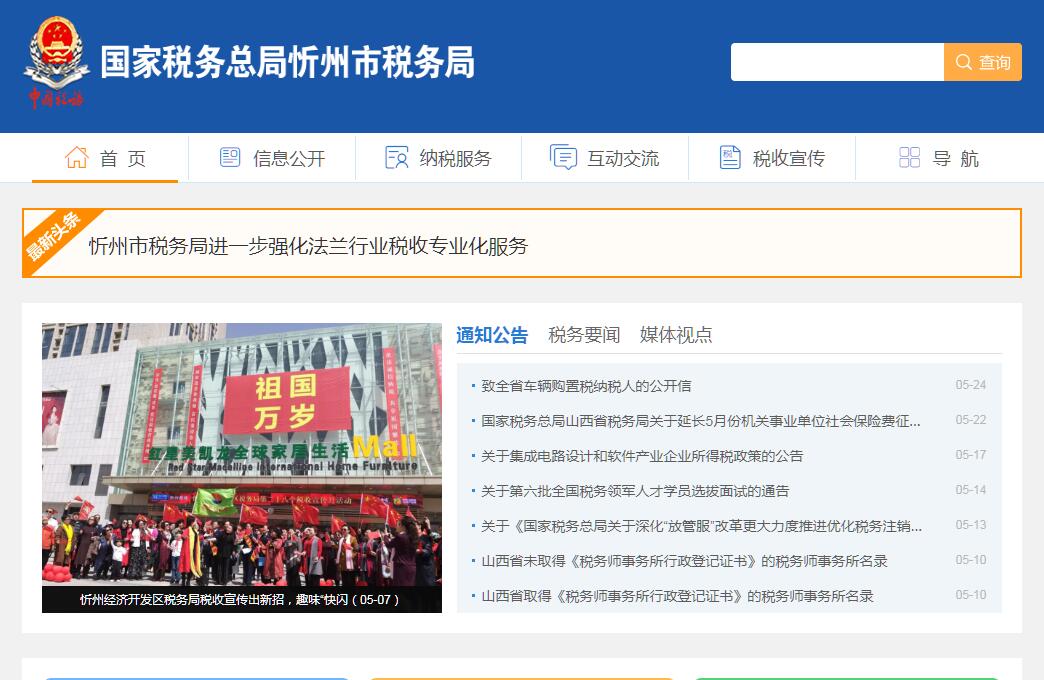 網(wǎng)站名稱: 國家稅務(wù)總局忻州市稅務(wù)局