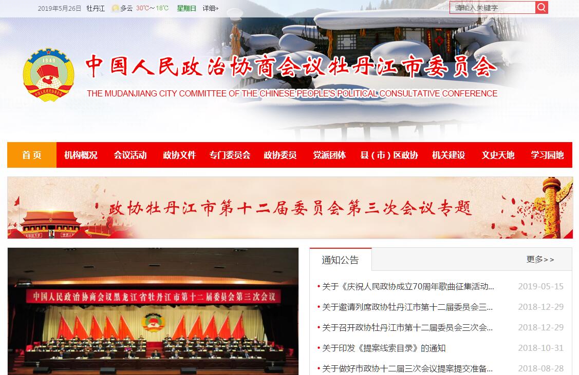 中國人民政治協(xié)商會議黑龍江省牡丹江市委員會,成立于1955年6月19日,至今已歷經(jīng)63年、十一屆。政協(xié)牡丹江市第十二屆委員會第一次會議于2017年1月10日召開,應(yīng)到會委員(29個(gè)界別)338名,選舉常務(wù)委員會組成人員61名。第十二屆委員會第二次會議于2017年12月25日召開,委員調(diào)整后達(dá)到344名,常務(wù)委員會組成人員調(diào)整后達(dá)到62名。十二屆市政協(xié)設(shè)有6個(gè)專門委員會,即提案委員會、經(jīng)濟(jì)委員會、科教文衛(wèi)體委員會、社會與法制委員會、民族宗教和聯(lián)絡(luò)委員會、文史和學(xué)習(xí)委員會,設(shè)副秘書長1人。市政協(xié)機(jī)關(guān)設(shè)1個(gè)綜合辦事機(jī)構(gòu)(辦公室),1個(gè)機(jī)關(guān)黨委,4個(gè)(正科級)專門委員會辦事機(jī)構(gòu)。市政協(xié)辦公室內(nèi)設(shè)5個(gè)科室(正科級),即秘書科、行政管理科、調(diào)研科、委員聯(lián)絡(luò)科、離退休干部工作科。機(jī)關(guān)黨委下設(shè)機(jī)關(guān)黨委辦公室(正科級)。機(jī)關(guān)駐有紀(jì)檢監(jiān)察組1個(gè)。