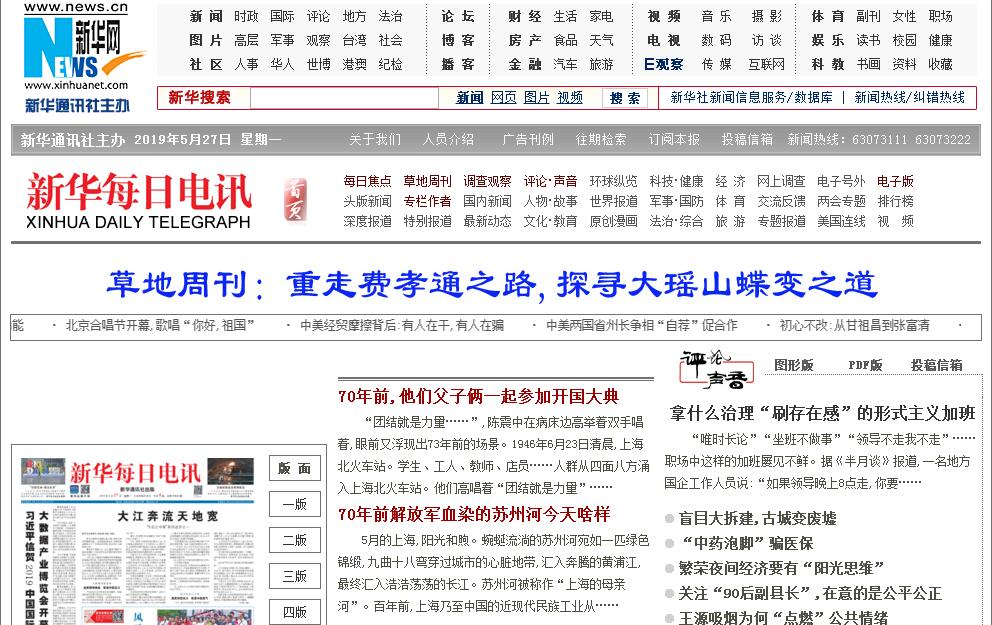 《新華每日電訊》是國家最高新聞采集發(fā)布機(jī)構(gòu)新華社主辦,選編新華社各線路各報刊各新媒體精品稿件、薈萃全國其他媒體精品稿件,刊發(fā)原創(chuàng)評論和副刊的中央級新銳主流大報。對讀者頗具吸引力的封面版。本報頭版已擺脫無新聞價值的工作性報道唱主角的累贅,并按規(guī)定改革了中央領(lǐng)導(dǎo)活動稿件的處理,完全使“三貼近”新聞?wù)紦?jù)了主要位置。能夠抓住讀者心靈的深度版。本報基于新華社大量原創(chuàng)深度調(diào)研報道,傾心打造抓人心靈的深度報道版?!靶氯A視點”專欄幾乎天天相見;“每日焦點”每周5個版;“草地周刊”“新華視界”每周各一期,每期各4個版。區(qū)別于傳統(tǒng)大報的新銳大報。無工作性報道、文告性報道之累,以大量新鮮事實和犀利的輿論監(jiān)督報道見長。雖非機(jī)關(guān)報,機(jī)關(guān)離不了。見解獨特,理性建設(shè)性兼?zhèn)涞脑u論版。周一到周五每天1個版,匯集評論名家,緊跟熱點,及時評論,為您提供思想交鋒的平臺,為您深度剖析解讀當(dāng)前焦點難點。薈萃媒體精華的文摘版。每周一期“新華視界”,摘編報刊佳作,琳瑯滿目,奉送讀者特殊的“文摘周報”。草地周刊,提供有生命力的閱讀。作為新華社第一份副刊,《草地》所載,有人的思考,有思考中的人;有人的故事,有故事中的人;有人的歷史,有歷史中的人;有人的話題,有話題中的人;有人的成長,有成長中的人。當(dāng)你身心俱疲,它給你精神上的滋養(yǎng);當(dāng)你悵然若失,它幫你尋找生活的真相;當(dāng)你百無聊賴,它提供鮮活有趣的話題;當(dāng)你仿徨迷茫,它幫你梳理人生的意義、啟鑒人生的選擇。主流媒體風(fēng)骨,市場媒體風(fēng)格。有國家大報風(fēng)骨,無傳統(tǒng)報紙死板;有都市類報紙之活,無街頭小報之俗,可謂“國家大報風(fēng)骨,普通受眾口味”,百姓閱讀興致高。高含金量的薄報。本報平日8個版,但版版內(nèi)容實在,是高含金量的薄報,“厚報時代的薄報精英”。