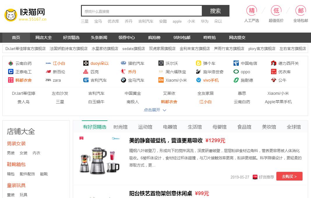 | 網(wǎng)站簡介: 快貓網(wǎng)店大全是國內(nèi)領(lǐng)先的淘寶、天貓、京東店鋪排行榜平臺,提供最新最全的皇冠金冠旗艦店網(wǎng)店導(dǎo)航,淘寶有好貨優(yōu)惠信息。用最具性價比的方式選購優(yōu)質(zhì)商品,分享和共建網(wǎng)購信息寶庫。 |