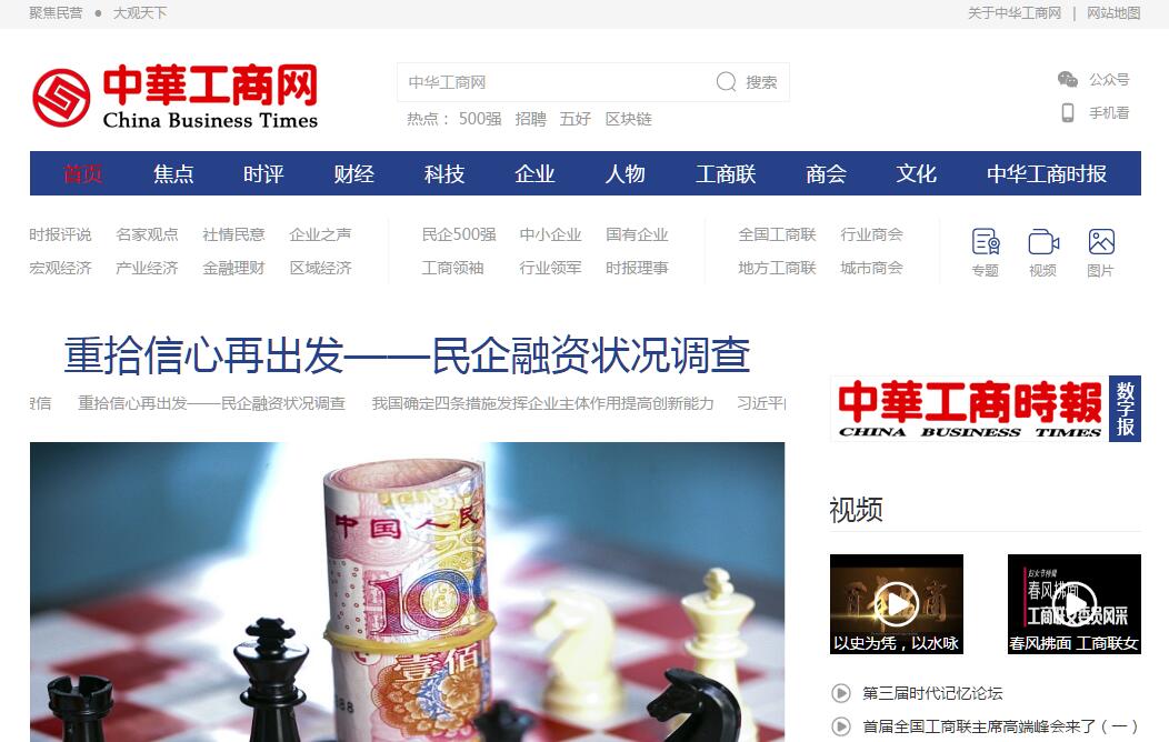 | 網(wǎng)站簡(jiǎn)介: 《中華工商時(shí)報(bào)》1989年10月6日在北京創(chuàng)刊,海內(nèi)外公開(kāi)發(fā)行?!吨腥A工商時(shí)報(bào)》是黨的統(tǒng)一戰(zhàn)線重要輿論陣地、中國(guó)民營(yíng)經(jīng)濟(jì)主流媒體、全國(guó)工商聯(lián)機(jī)關(guān)報(bào)。領(lǐng)航民營(yíng)經(jīng)濟(jì),護(hù)航民營(yíng)企業(yè),導(dǎo)航民營(yíng)人物,努力打造政治堅(jiān)定、特色鮮明、充滿活力的中國(guó)民營(yíng)經(jīng)濟(jì)權(quán)威新型主流媒體?!吨腥A工商時(shí)報(bào)》由新聞版塊+周刊版塊構(gòu)成。新聞版塊包括:時(shí)政要聞、深度報(bào)道、年度人物、理論研究、評(píng)論博覽、天下財(cái)經(jīng);周刊版塊包括:工商聯(lián)周刊、商會(huì)周刊、光彩周刊、財(cái)經(jīng)周刊、成長(zhǎng)企業(yè)周刊、經(jīng)濟(jì)地理周刊等。目前,中華工商時(shí)報(bào)社正推進(jìn)傳統(tǒng)新聞媒體與網(wǎng)絡(luò)的融合,走向全媒體之路。報(bào)紙、雜志、網(wǎng)站、微信公眾號(hào)、電子屏、中國(guó)民營(yíng)經(jīng)濟(jì)輿情報(bào)告及藍(lán)皮書等全媒體形態(tài)格局初現(xiàn)。在全媒體發(fā)展模式下,中華工商時(shí)報(bào)社平臺(tái)建設(shè)更上一層樓:中華工商時(shí)報(bào)社理事會(huì)、中國(guó)城市總商會(huì)發(fā)展峰會(huì)、中國(guó)民企傳媒聯(lián)盟、未來(lái)工商領(lǐng)袖論壇、中國(guó)民營(yíng)經(jīng)濟(jì)年會(huì)等品牌活動(dòng),已經(jīng)成為報(bào)網(wǎng)融合發(fā)展的重要支撐。 |