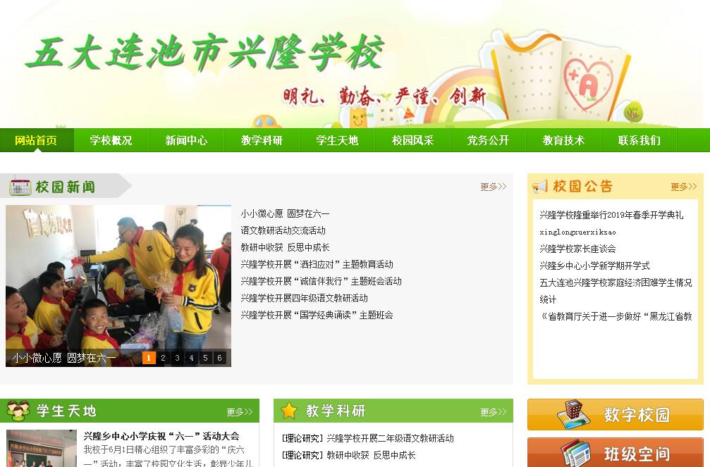 五大連池市興隆中心小學(xué)始建于1948年,是一所六年制全日制完全小學(xué)。位于五大連池市東南16公里處,興隆鄉(xiāng)政府所在地。學(xué)校占地面積21114平方米,建筑面積1060平方米,體育面積6000平方米?,F(xiàn)有在校生30人,教職工15人,其中專任教師14人,本科學(xué)歷5人,??埔陨蠈W(xué)歷9人,學(xué)歷達標(biāo)率100%,地市級骨干教師5人,市級優(yōu)秀教師10人,教壇新秀3人。近年來市委市政府共投資210多萬元,維修校舍1060平方米,建起了配有20臺液晶顯示器電腦,科學(xué)實驗室、音樂室、美術(shù)室、體育活動室、圖書室、綜合實踐活動室、衛(wèi)生室兼心理咨詢室以及多功能教室。如今,學(xué)校6個普通教室均安裝了電子白板,實現(xiàn)了“班班通”。各功能教室設(shè)備、器材齊全,滿足了現(xiàn)代教學(xué)的需要,學(xué)校秉承“以人為本,促進學(xué)生全面發(fā)展”的辦學(xué)理念,加強常規(guī)管理,突出內(nèi)涵建設(shè)。先后榮獲“教育教學(xué)先進集體、德育工作先進集體、培訓(xùn)工作先進集體、體衛(wèi)藝工作先進集體、平安校園建設(shè)先進集體”等榮譽稱號。