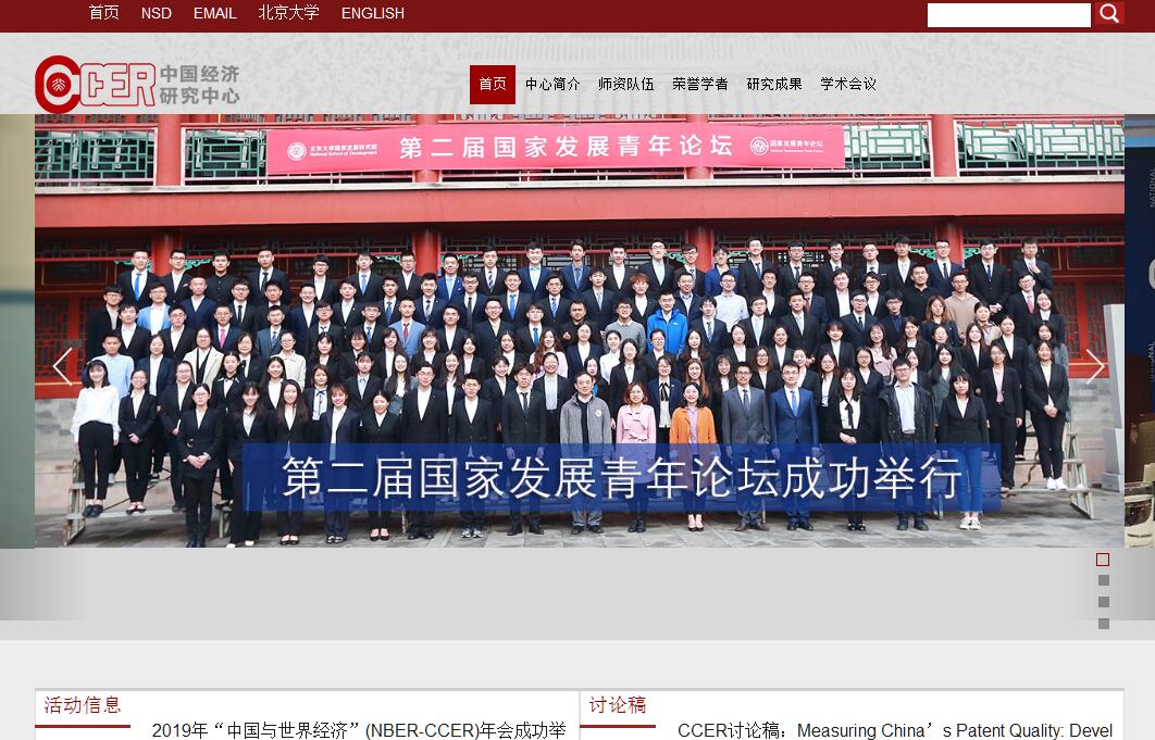北京大學(xué)中國(guó)經(jīng)濟(jì)研究中心(China Center for Economic Research,英文簡(jiǎn)稱為CCER)創(chuàng)辦于1994年,是北京大學(xué)國(guó)家發(fā)展研究院的前身,目前為國(guó)家發(fā)展研究院下屬的主要研究中心之一。中國(guó)經(jīng)濟(jì)研究中心是北京大學(xué)教學(xué)和科研體制改革的創(chuàng)舉,自成立之日起,中心為中國(guó)經(jīng)濟(jì)學(xué)的本科教學(xué)、研究生培養(yǎng)以及科學(xué)研究做出了卓越的貢獻(xiàn)。2004年,中國(guó)經(jīng)濟(jì)研究中心入選“教育部人文社會(huì)科學(xué)百所重點(diǎn)基地”。2008年改名北京大學(xué)國(guó)家發(fā)展研究院之后,中國(guó)經(jīng)濟(jì)研究中心的功能轉(zhuǎn)變?yōu)榻M織國(guó)家發(fā)展研究院的經(jīng)濟(jì)學(xué)研究,并為國(guó)內(nèi)外經(jīng)濟(jì)學(xué)界提供和交流和研究平臺(tái)。