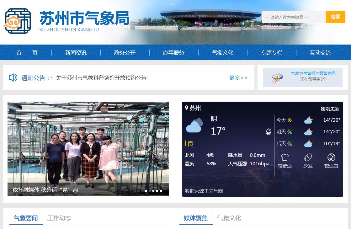 新中國成立后,蘇州第一個氣象站于1954年建成——震澤縣東洞庭山氣象站,為國家氣象發(fā)報站。1958年11月11日,蘇州專員公署發(fā)出《關于成立蘇州專區(qū)氣象臺的通知》(專水黃(58)字第311號),蘇州專區(qū)氣象臺正式成立,受蘇州專員公署領導,地點位于蘇州古城內公園路11號。至1958年底,蘇州下轄各縣都建立了氣象站,并于1959年1月1日正式開始氣象業(yè)務工作。1959年12月,成立蘇州專員公署氣象局,受蘇州專員公署、江蘇省氣象局領導。1960年6月1日,蘇州專區(qū)氣象臺改稱蘇州專區(qū)氣象服務臺,撤消蘇州專員公署氣象局。1963年1月遷至蘇州古城外相門橋東南堍,1965年1月又遷至古城婁門郊外(現:平江區(qū)三星路99號)。1971年5月1日,蘇州專區(qū)氣象服務臺改稱蘇州地區(qū)氣象臺,受蘇州軍分區(qū)和蘇州地區(qū)革命委員會雙重領導,以蘇州軍分區(qū)為主。1973年3月,受蘇州地區(qū)革命委員會領導。1980年11月26日,成立蘇州地區(qū)行署氣象局,受上級氣象主管機構和本級人民政府雙重領導,以上級氣象主管機構為主,并明確局臺合一。下轄常熟、吳縣、吳江、昆山、太倉、沙洲、無錫、江陰等8個縣級氣象站。1981年7月1日增加下轄東山氣象站。1983年3月,蘇州地區(qū)行署氣象局改稱為蘇州市氣象局,蘇州地區(qū)氣象臺改稱蘇州市氣象臺。下轄常熟、沙洲、太倉、昆山、吳縣、吳江、東山等7個縣級氣象站。1999年2月蘇州市氣象局遷至平江區(qū)莫邪路1288號(曾用名:三星路188號、氣象路108號)。2001年12月,蘇州市氣象局直屬3個事業(yè)單位:蘇州市氣象臺、蘇州市專業(yè)氣象臺、蘇州市防雷中心;下轄常熟市氣象局、張家港市氣象局、昆山市氣象局、太倉市氣象局、吳江市氣象局、蘇州市吳中區(qū)氣象局等6個縣級氣象局(站)和蘇州市吳中區(qū)東山氣象站。2004年增加下轄蘇州市相城區(qū)氣象局。2007年11月5日蘇州市氣象局遷至相城區(qū)嘉元路8號。其主要職責是:(一)制定地方氣象事業(yè)發(fā)展規(guī)劃、計劃,并負責本行政區(qū)域內氣象事業(yè)發(fā)展規(guī)劃、計劃及氣象業(yè)務建設的組織實施;負責本行政區(qū)域內重要氣象設施建設項目的審查;對本行政區(qū)域內的氣象活動進行指導、監(jiān)督和行業(yè)管理。(二)組織管理本行政區(qū)域內氣象探測資料的匯總、分發(fā);依法保護氣象探測環(huán)境;管理本行政區(qū)域內涉外氣象活動。(三)在本行政區(qū)域內組織對重大災害性天氣跨地區(qū)、跨部門的聯合監(jiān)測、預報工作,及時提出氣象災害防御措施,并對重大氣象災害作出評估,為本級人民政府組織防御氣象災害提供決策依據;管理本行政區(qū)域內公眾氣象預報、災害性天氣警報以及農業(yè)氣象預報、城市環(huán)境氣象預報、火險氣象等級預報等專業(yè)氣象預報的發(fā)布。(四)組織管理雷電災害防御工作,會同有關部門指導對可能遭受襲擊的建筑物、構筑物和其它設施安裝的雷電災害防護裝置的檢測工作。(五)制定人工影響天氣作業(yè)方案,并在本級人民政府的領導和協調下,管理、指導和組織實施人工影響天氣作業(yè)。(六)負責向本級人民政府和同級有關部門提出利用、保護氣候資源和推廣應用氣候資源區(qū)劃等成果的建議;組織對氣候資源開發(fā)利用項目進行氣候可行性論證。(七)組織開展氣象法制宣傳教育,負責監(jiān)督有關氣象法規(guī)的實施,對違反《中華人民共和國氣象法》有關規(guī)定的行為依法進行處罰,承擔有關行政復議和行政訴訟。(八)統(tǒng)一領導和管理本行政區(qū)域內氣象部門的計劃財務、機構編制、人事勞動、科研和培訓及業(yè)務建設等工作;會同市人民政府對本市氣象機構實施以部門為主的雙重管理;協助地方黨委和人民政府做好當地氣象部門的精神文明建設和思想政治工作。(九)承擔江蘇省氣象局和蘇州市人民政府交辦的其它事項。