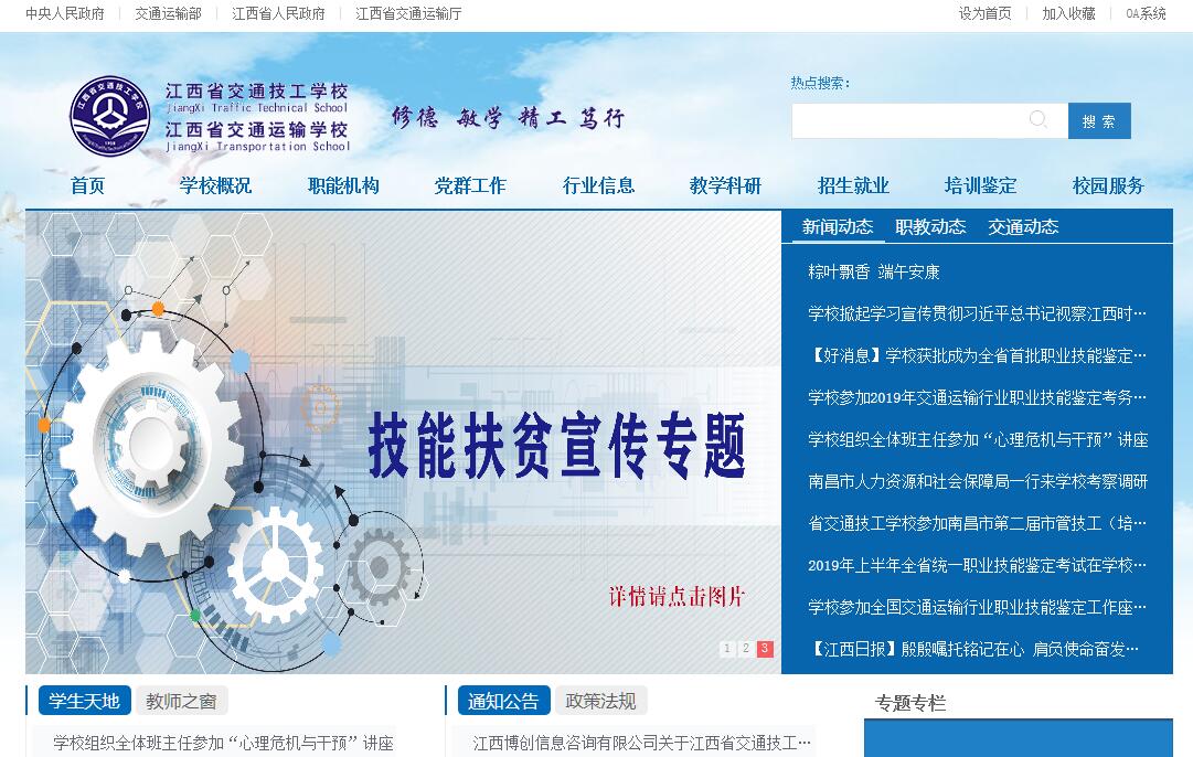 江西省交通技工學(xué)校、江西省交通運(yùn)輸學(xué)校是經(jīng)省人民政府批準(zhǔn),隸屬于省交通運(yùn)輸廳,實(shí)行“兩塊牌子一套人馬”,集中職教育、技能培訓(xùn)、職業(yè)技能鑒定為一體,致力于培養(yǎng)交通類技能型人才的全日制公辦、綜合型技工學(xué)校和中專學(xué)校。學(xué)校地處南昌市新建區(qū)西山鎮(zhèn),占地面積288畝,建筑面積3.9萬平方米,實(shí)習(xí)實(shí)訓(xùn)場地1.8萬平方米。學(xué)校環(huán)境幽雅,交通便利,教學(xué)、辦公、生活配套設(shè)施齊備,擁有多媒體教室、微機(jī)房,設(shè)有汽車維修類、汽車營銷類、現(xiàn)代物流類實(shí)訓(xùn)場地14個(gè),電子商務(wù)創(chuàng)業(yè)孵化基地1個(gè),能滿足學(xué)生專業(yè)技能培養(yǎng)的需求。學(xué)校堅(jiān)持學(xué)歷教育與職業(yè)培訓(xùn)并舉的辦學(xué)模式?,F(xiàn)開設(shè)汽車維修與檢測、汽車駕駛、汽車營銷、汽車裝飾與美容、交通客運(yùn)服務(wù)、現(xiàn)代物流、電子商務(wù)、財(cái)會(huì)電算化、高速公路收費(fèi)與監(jiān)控、工程造價(jià)等10余個(gè)專業(yè),面向全省招收初中以上學(xué)歷的學(xué)生。學(xué)校與省內(nèi)外院校合作辦學(xué),與江西交通職業(yè)技術(shù)學(xué)院開展中高職對接、與浙江交通技師學(xué)院合作培養(yǎng)高級工和技師人才、與江西交通干部學(xué)院開展遠(yuǎn)程教育合作,打通學(xué)生晉升通道。學(xué)校被交通主管部門、人力資源和社會(huì)保障部門認(rèn)定為國家職業(yè)技能鑒定所、交通運(yùn)輸行業(yè)特有工種職業(yè)技能鑒定所、交通運(yùn)輸企業(yè)安全生產(chǎn)標(biāo)準(zhǔn)化考評機(jī)構(gòu)、道路運(yùn)輸從業(yè)人員從業(yè)資格培訓(xùn)中心和考試中心等,為行業(yè)和社會(huì)提供專業(yè)技術(shù)人員和從業(yè)人員培訓(xùn)。近3年來,共培訓(xùn)汽車駕駛教練員、高速公路收費(fèi)員和物流從業(yè)人員等2萬余人。立足交通辦教育、融入市場求發(fā)展,學(xué)校以“辦好人民滿意職業(yè)教育”為己任,堅(jiān)持“產(chǎn)教融合、質(zhì)量立校、特色辦學(xué)、創(chuàng)新發(fā)展”的辦學(xué)理念,走以提高職業(yè)教育質(zhì)量為核心的內(nèi)涵式發(fā)展道路。學(xué)校先后與江西省高速公路投資集團(tuán)、遠(yuǎn)成物流集團(tuán)、義烏不二網(wǎng)絡(luò)科技有限公司、新奇特車業(yè)服務(wù)有限公司等多家企業(yè)達(dá)成校企合作,成立“江西省公路學(xué)會(huì)交通運(yùn)輸職業(yè)教育專業(yè)委員會(huì)”,獲批南昌市高技能人才公共實(shí)訓(xùn)基地,連續(xù)多年被評為南昌市高技能人才培養(yǎng)示范基地和江西汽車流通行業(yè)“產(chǎn)教融合十佳中職示范院?!?。促進(jìn)交通運(yùn)輸職業(yè)技能培訓(xùn)教育發(fā)展?!?/p>