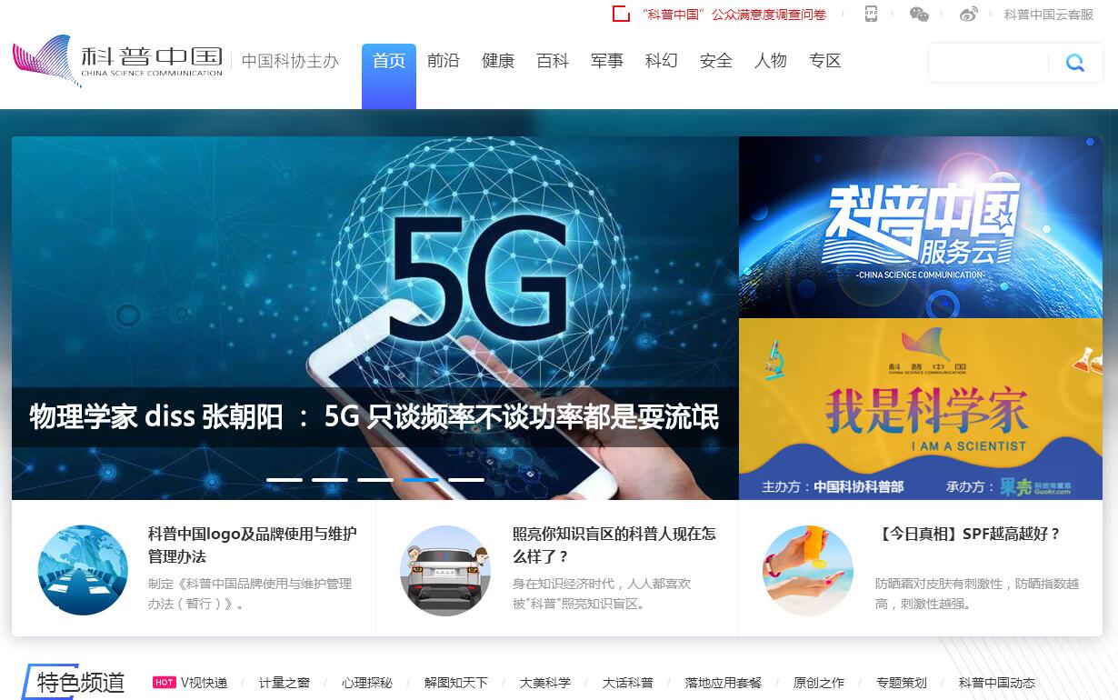 | 網(wǎng)站簡介: 科普中國網(wǎng)隸屬于中國科學技術(shù)出版社有限公司,基于科普中國服務(wù)云公眾入口、具有個性化定制和自動推送服務(wù)的門戶網(wǎng)站??破罩袊W(wǎng)以“眾創(chuàng)、嚴謹、共享”為宗旨,以“讓科技知識在網(wǎng)上和生活中流行”為理念,旨在向全社會提供科學、權(quán)威、準確的科普信息內(nèi)容和相關(guān)資訊。網(wǎng)站內(nèi)容分為前沿科技、健康生活、科普樂園、V視快遞、實用技術(shù)、玩轉(zhuǎn)科學等24個頻道。網(wǎng)站匯聚優(yōu)質(zhì)內(nèi)容,策劃專項專題;實時新聞導入,科學解讀熱點。 |
