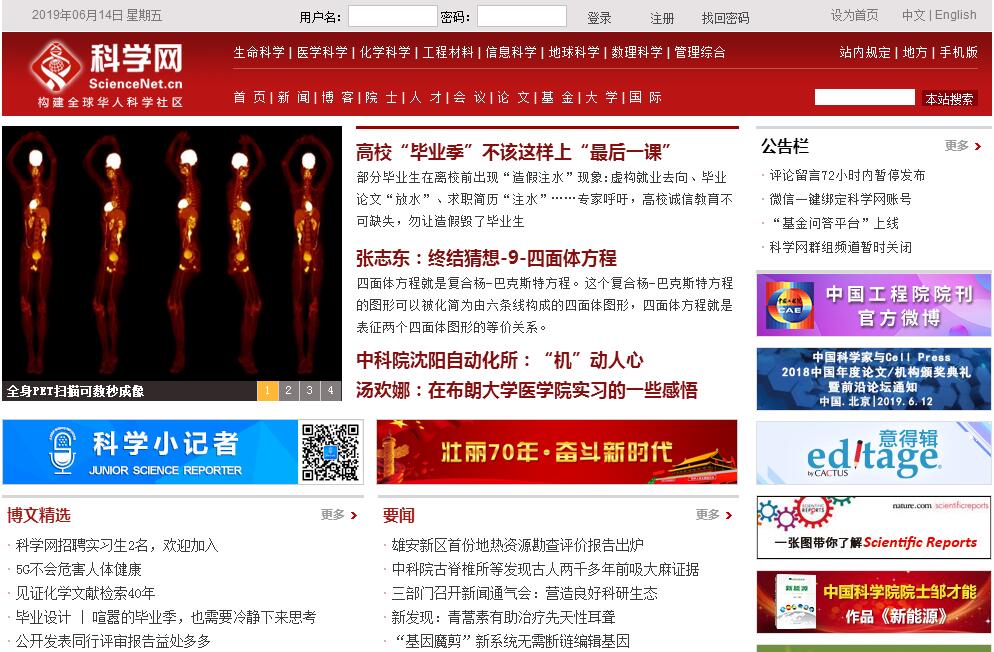 科學(xué)網(wǎng)由中國科學(xué)院、中國工程院、國家自然基金委、中國科學(xué)技術(shù)協(xié)會主管,由具有六十年媒體經(jīng)驗的中國科學(xué)報社主辦,具有深厚的媒體資本及科教界口碑。作為全球最大的中文科學(xué)社區(qū),科學(xué)網(wǎng)致力于全方位服務(wù)華人科學(xué)與高等教育界,以網(wǎng)絡(luò)社區(qū)為基礎(chǔ)構(gòu)建起面向全球華人科學(xué)家的網(wǎng)絡(luò)新媒體,促進科技創(chuàng)新和學(xué)術(shù)交流。除了為廣大科教人群提供快捷權(quán)威的科學(xué)新聞報道和豐富的實用資訊外,我們致力于打造一個以個人用戶中心為基礎(chǔ)的虛擬科教社區(qū)。二十一世紀(jì)是互聯(lián)網(wǎng)的世紀(jì)。因其海量信息、多媒體表現(xiàn)形式、跨越時空限制和即時互動的媒體特色,網(wǎng)絡(luò)媒體代表著世界媒體發(fā)展的未來。科學(xué)網(wǎng)充分發(fā)揮互聯(lián)網(wǎng)優(yōu)勢,經(jīng)過十年的迅猛發(fā)展,已經(jīng)成為全球最大的中文科教類新聞資訊集散中心,而且擁有全球最大的中文科教虛擬社區(qū)。近百萬海內(nèi)外科技界專家正在使用科學(xué)網(wǎng)的博客、論壇、圈子、圖片等服務(wù)。
