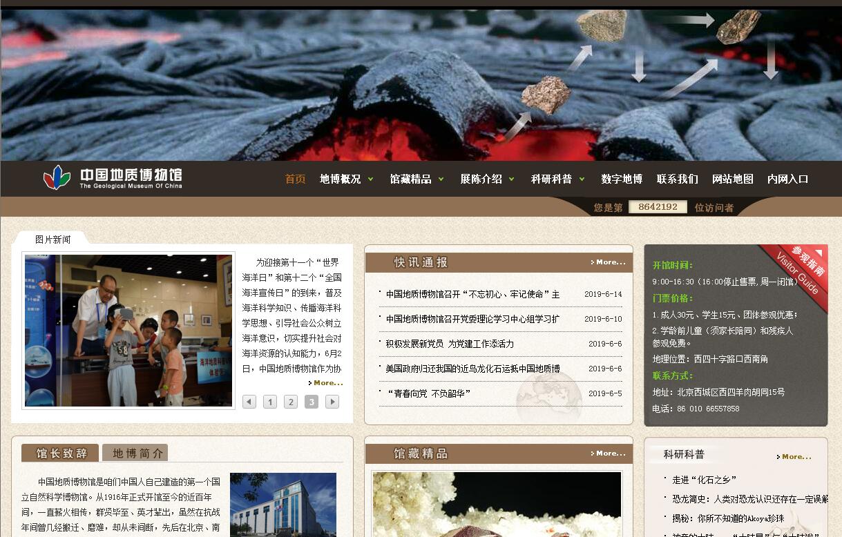 中國地質(zhì)博物館創(chuàng)建于1916年,在與中國現(xiàn)代科學(xué)同步發(fā)展的歷程中,積淀了豐厚的自然精華和無形資產(chǎn),以典藏系統(tǒng)、成果豐碩、陳列精美稱雄于亞洲同類博物館,并在世界范圍內(nèi)享有盛譽(yù)。中國地質(zhì)博物館收藏地質(zhì)標(biāo)本20余萬件,涵蓋地學(xué)各個(gè)領(lǐng)域。其中有蜚聲海內(nèi)外的巨型山東龍、中華龍鳥等恐龍系列化石,北京人、元謀人、山頂洞人等著名古人類化石,以及大量集科學(xué)價(jià)值與觀賞價(jià)值于一身的魚類、鳥類、昆蟲等珍貴史前生物化石;有世界最大的“水晶王”、巨型螢石方解石晶簇標(biāo)本、精美的藍(lán)銅礦、辰砂、雄黃、雌黃、白鎢礦、輝銻礦等中國特色礦物標(biāo)本,以及種類繁多的寶石、玉石等一批國寶級(jí)珍品。中國地質(zhì)博物館在開展藏品科學(xué)研究的同時(shí),長期從事地層古生物學(xué)、礦物巖石學(xué)、寶石學(xué)和博物館學(xué)的研究并取得累累碩果,特別是在早期脊椎動(dòng)物學(xué)、昆蟲學(xué)以及遼西熱河生物群等研究領(lǐng)域所取得的成果受到國內(nèi)外科學(xué)界的廣泛關(guān)注;以系統(tǒng)精美的寶石陳列,獨(dú)到的寶石研究成果,持續(xù)的社會(huì)推廣活動(dòng),帶動(dòng)和引導(dǎo)了當(dāng)代中國寶石科學(xué)研究、知識(shí)普及和市場消費(fèi)。中國地質(zhì)博物館常年開放獨(dú)具特色的陳列展覽。按照地球圈層結(jié)構(gòu)布局的基本陳列,不僅展示了數(shù)以萬計(jì)的礦物、巖石、寶石、化石精品,陳列內(nèi)容更加關(guān)注人類的生存環(huán)境和生存質(zhì)量;而且大量采用數(shù)字化、仿生、虛擬現(xiàn)實(shí)等技術(shù),讓觀眾在濃郁的科學(xué)氛圍中,通過親眼目睹、親手操作和親身體驗(yàn),輕松步入精彩紛呈的地學(xué)空間。中國地質(zhì)博物館長期開展豐富多彩的社會(huì)教育活動(dòng)。創(chuàng)刊于1981年的《地球》是中國唯一的地學(xué)科普雜志,一年一度的全國青少年地學(xué)夏令營已成為社會(huì)教育活動(dòng)的重要品牌,科普講座、科普巡展、科普咨詢等各種地學(xué)科普活動(dòng)連綿不絕,使中國地質(zhì)博物館的社會(huì)影響力不斷增強(qiáng)。目前,中國地質(zhì)博物館正以昂揚(yáng)的精神風(fēng)貌,繼往開來,精心打造美好未來。